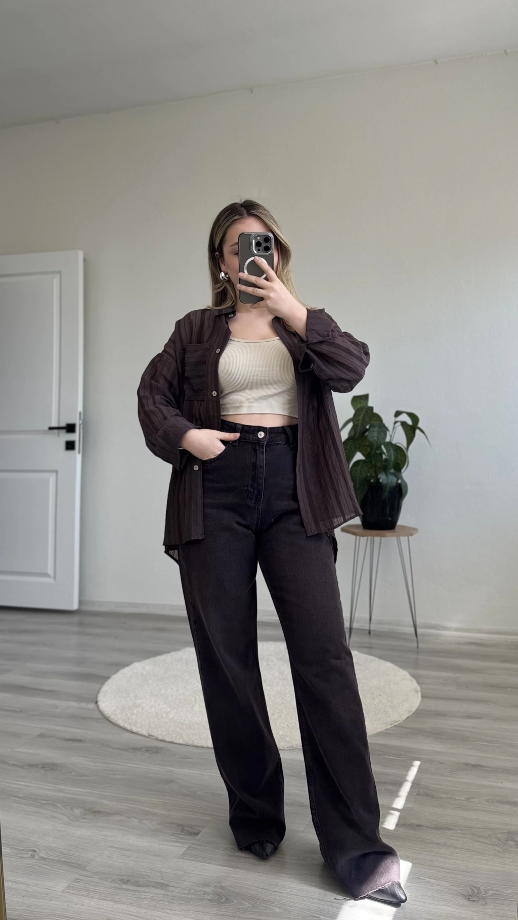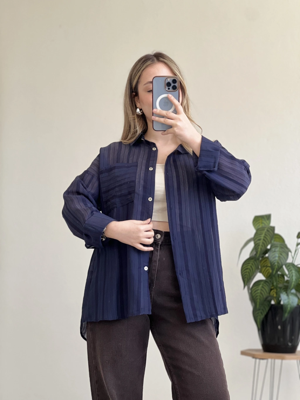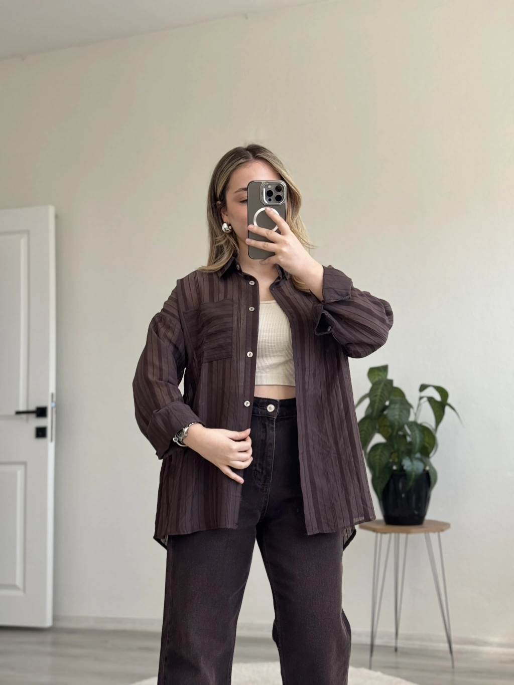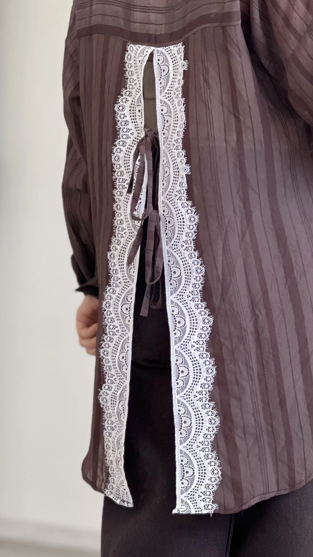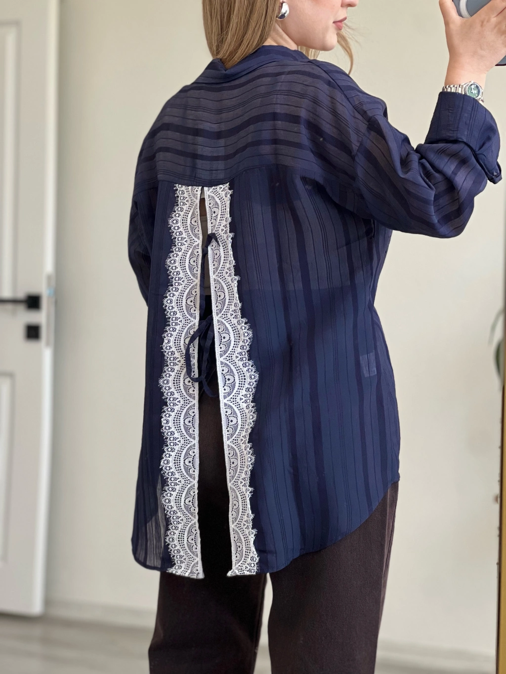 ARKASI DANTEL DETAYLI TRANSPARAN GÖMLEK