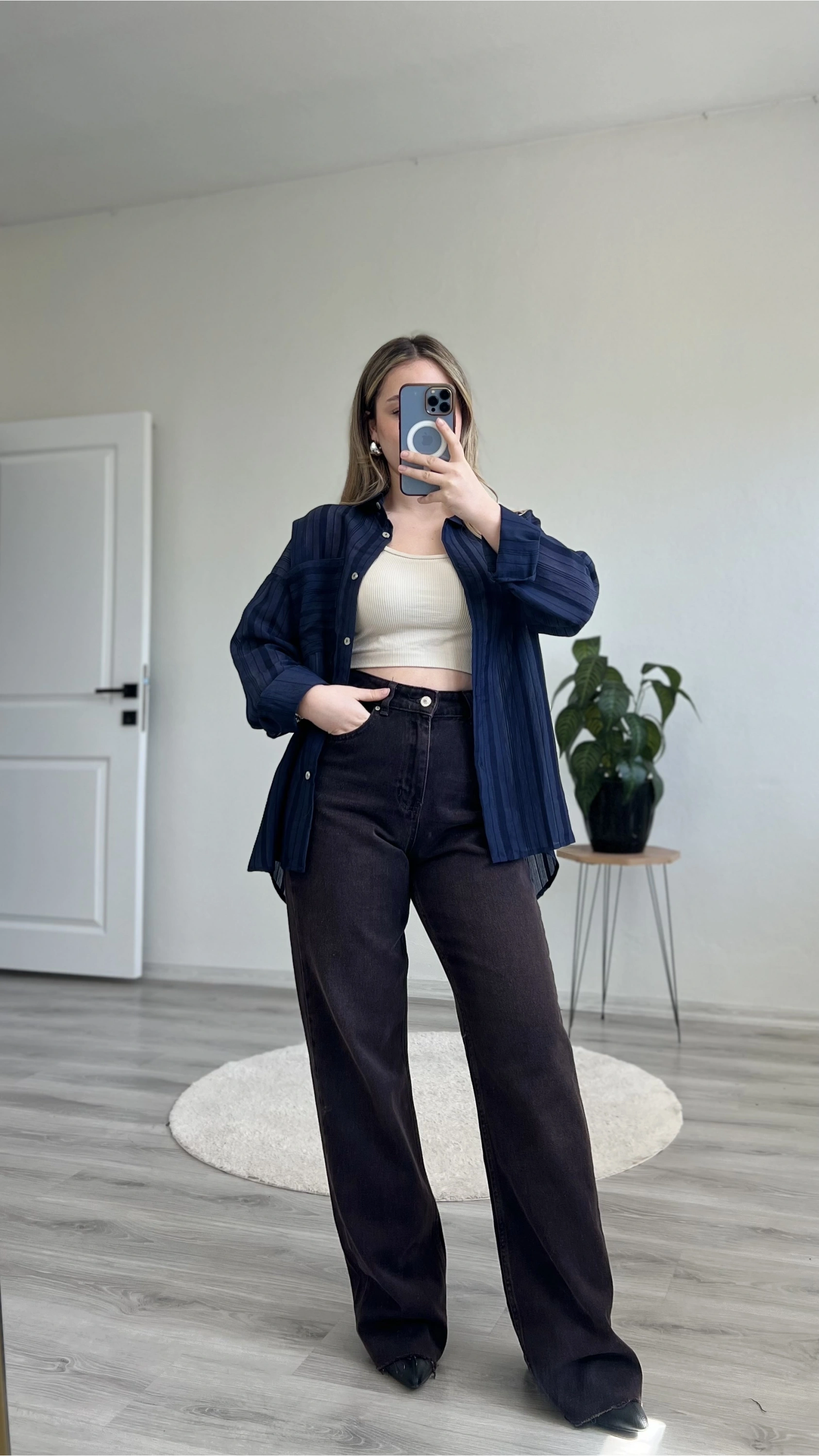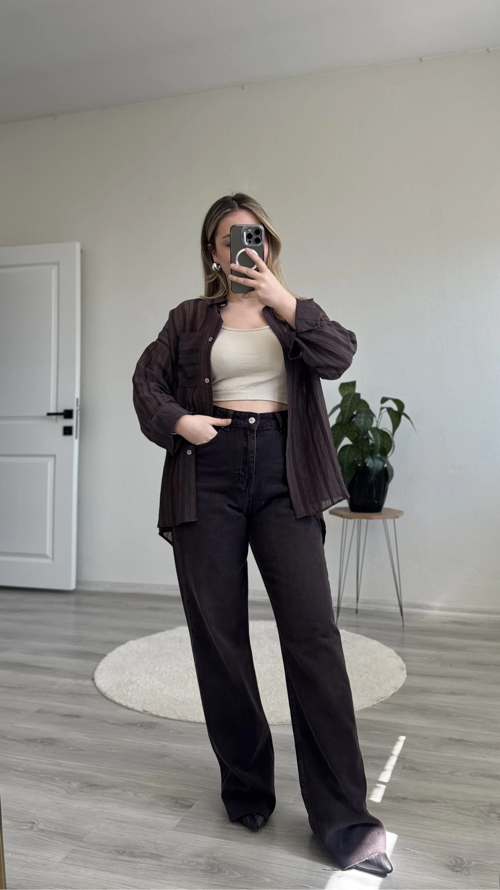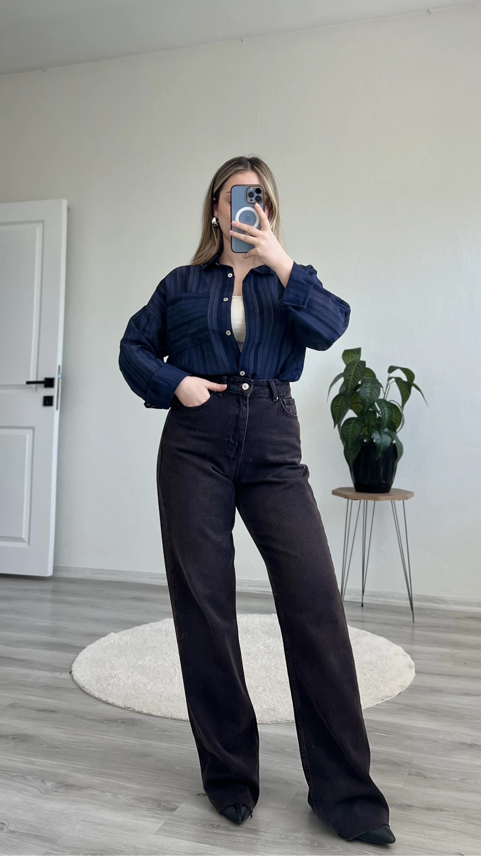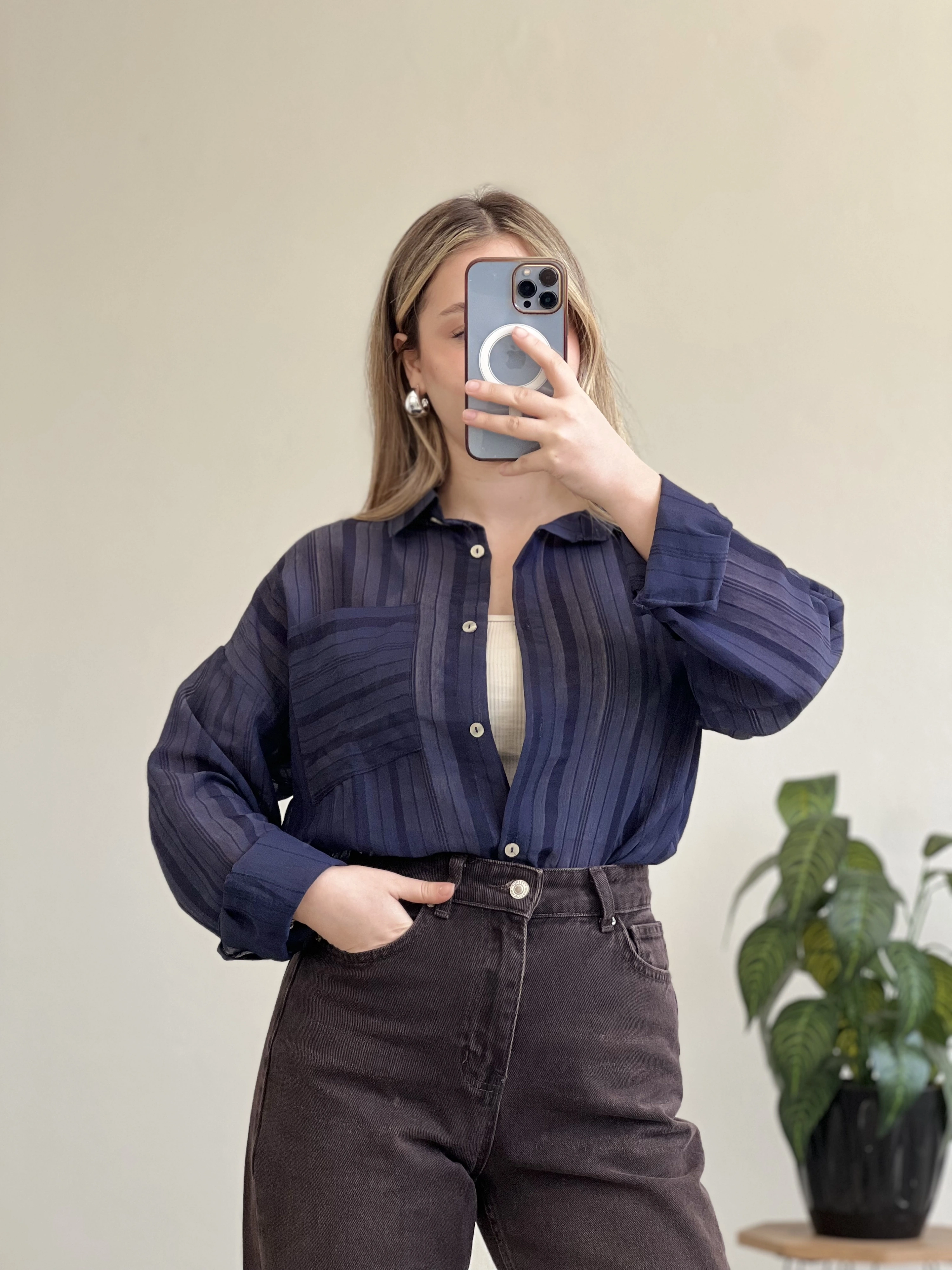 • ARKASI DANTEL DETAYLI TRANSPARAN GÖMLEK