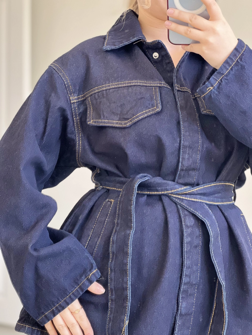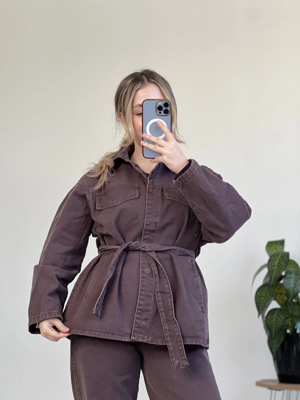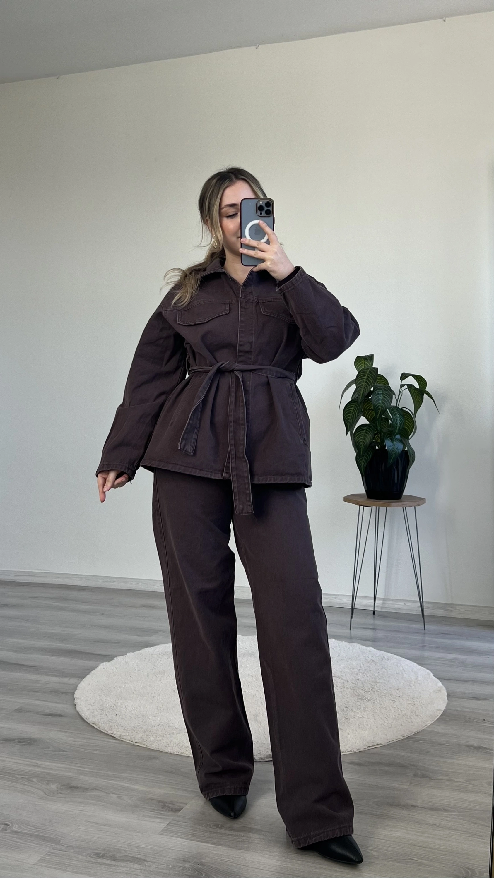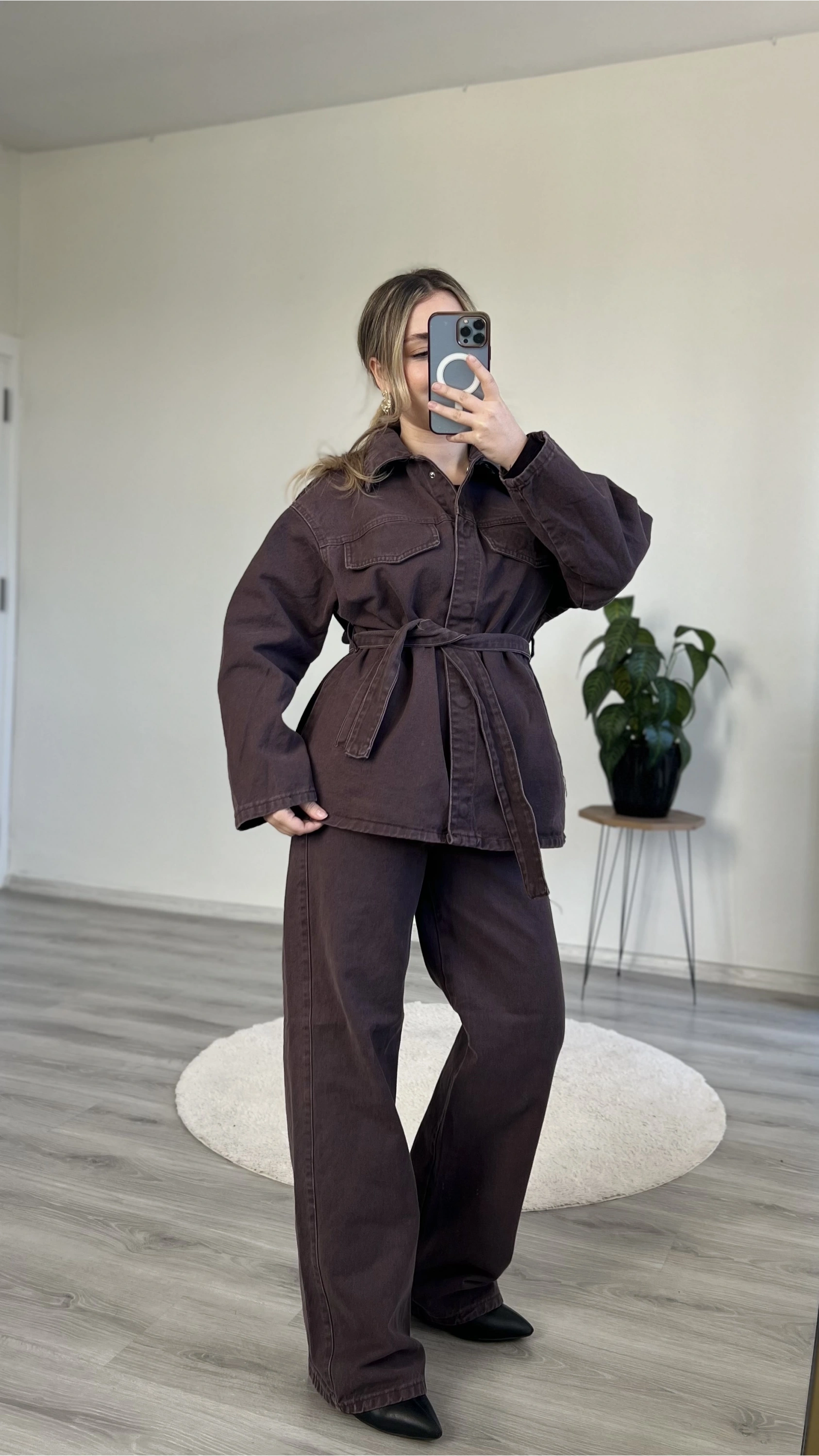 Modern ve iddialı bir görünüm arayanlar için tasarlanan bel bağlamalı kot takım, hem rahat hem güçlü bir siluet sunar.