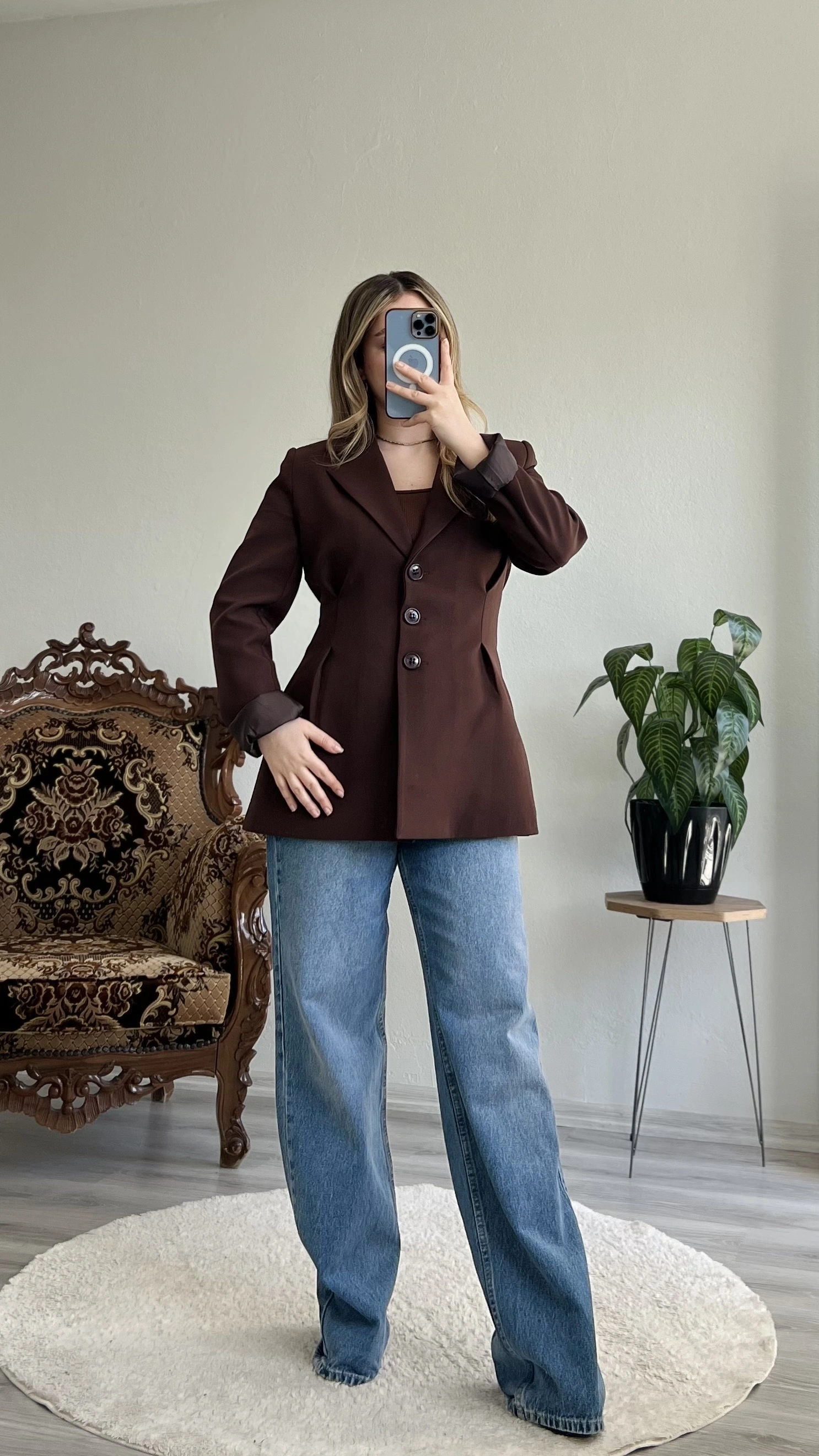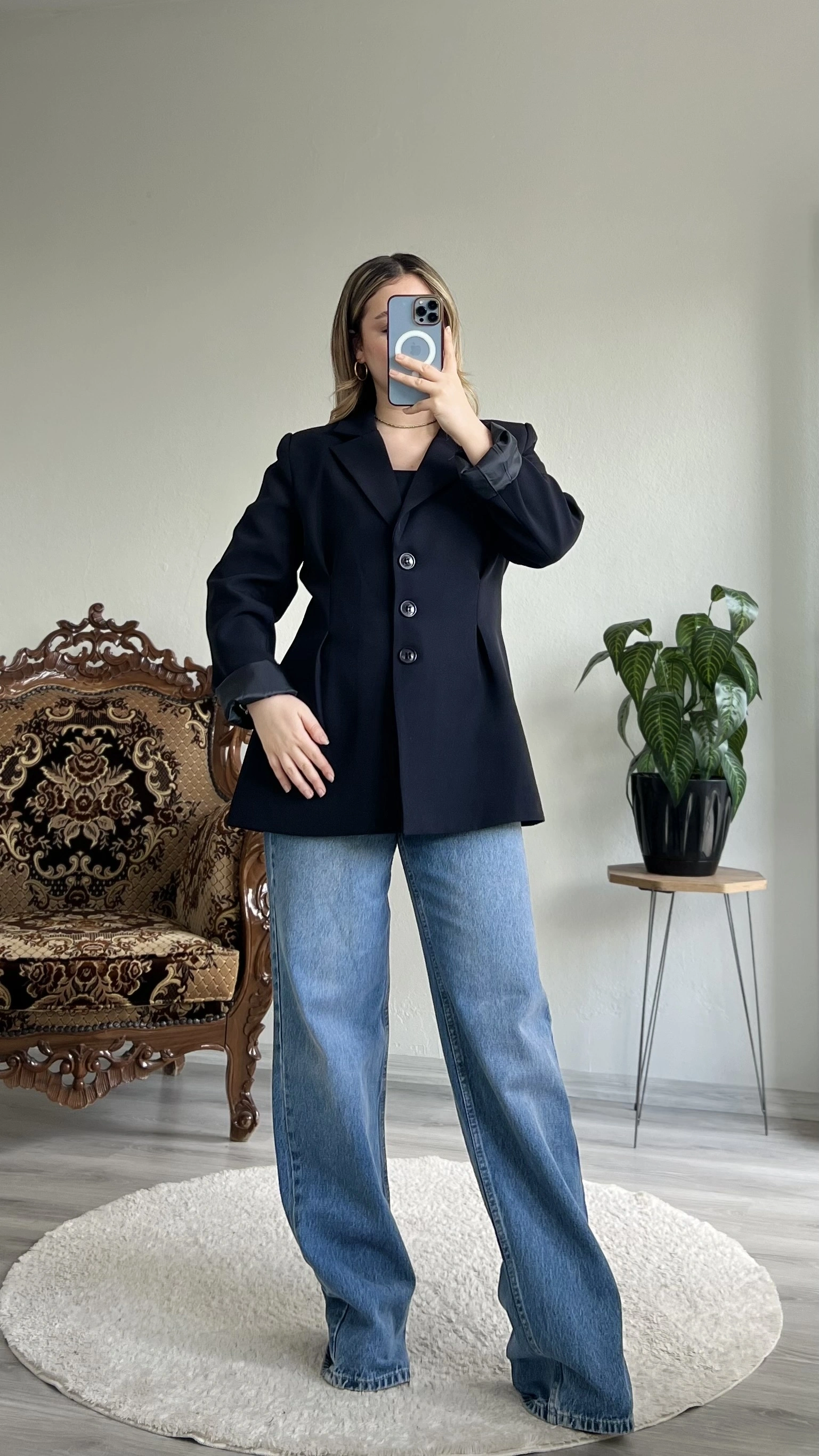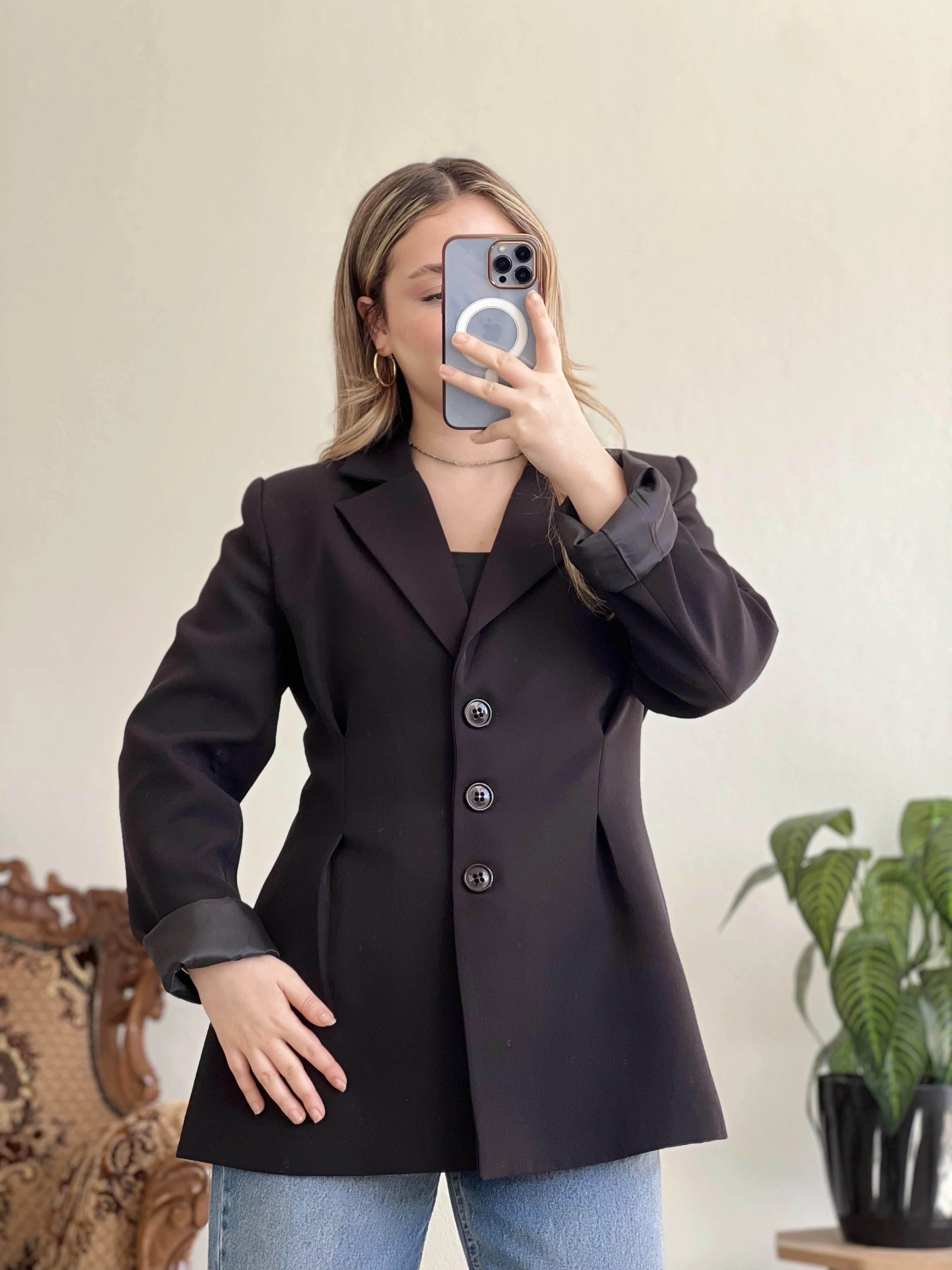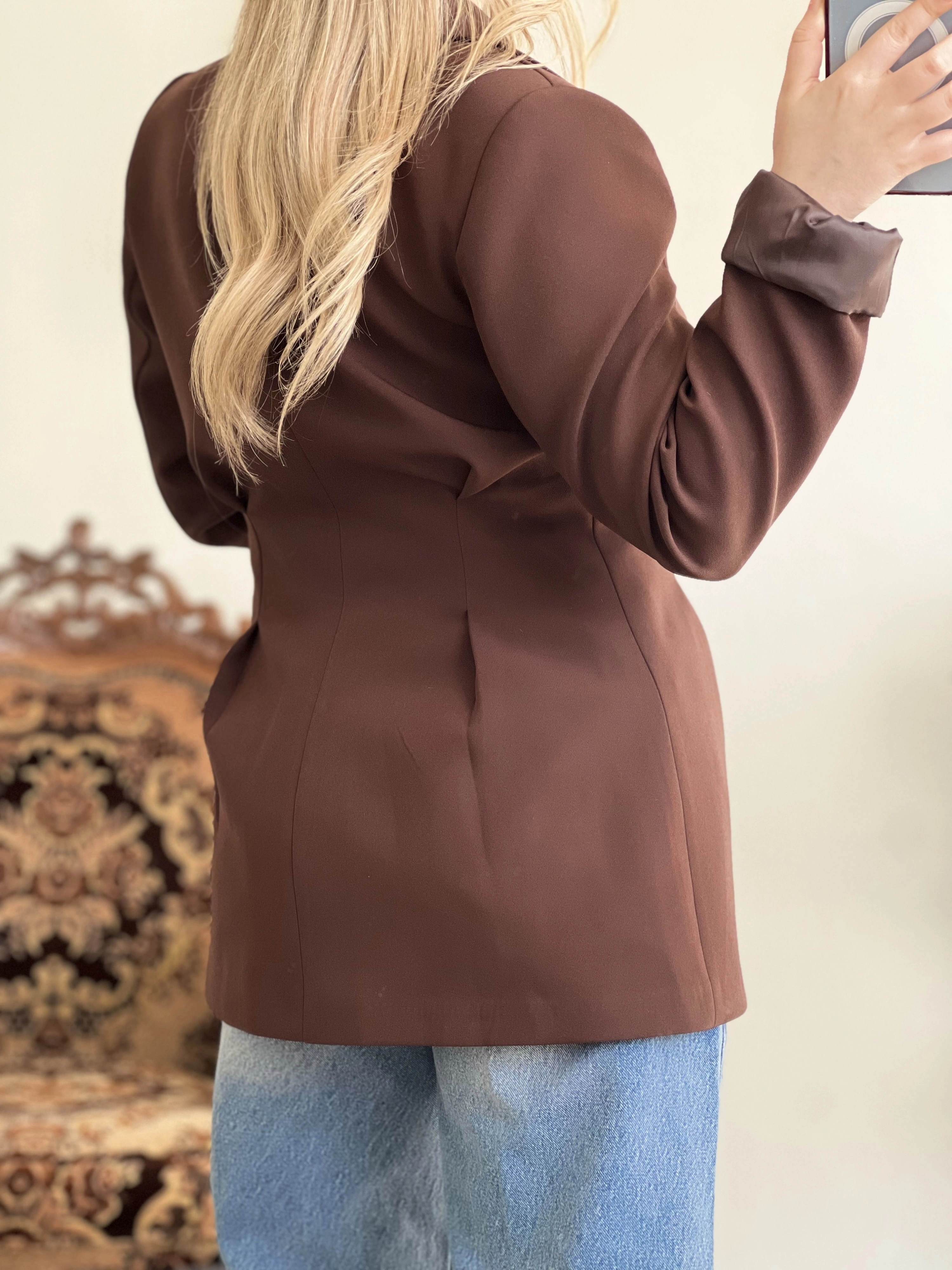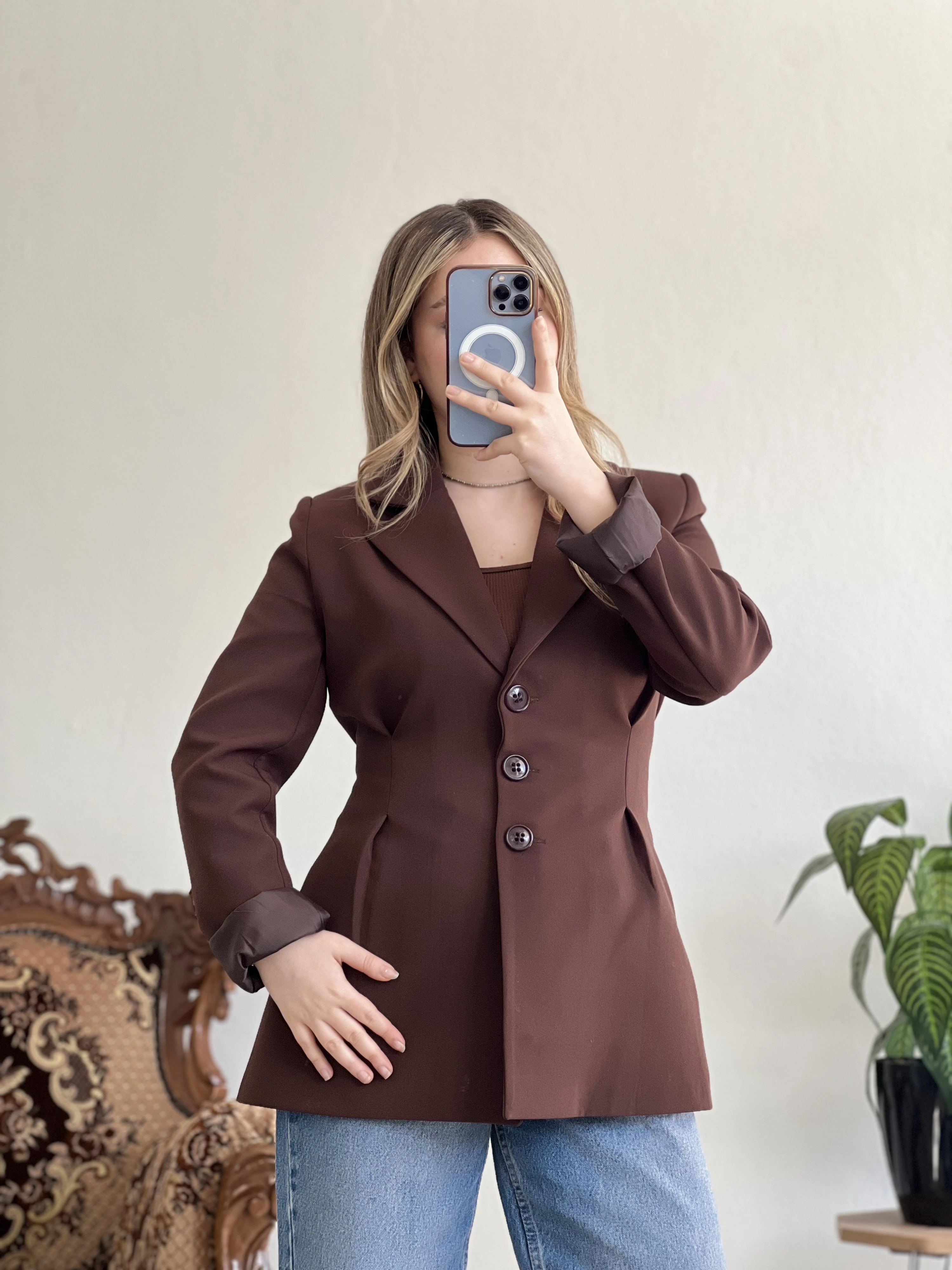 • ÇİFT PENSLİ BELDEN OTURTMALI BLAZER CEKET