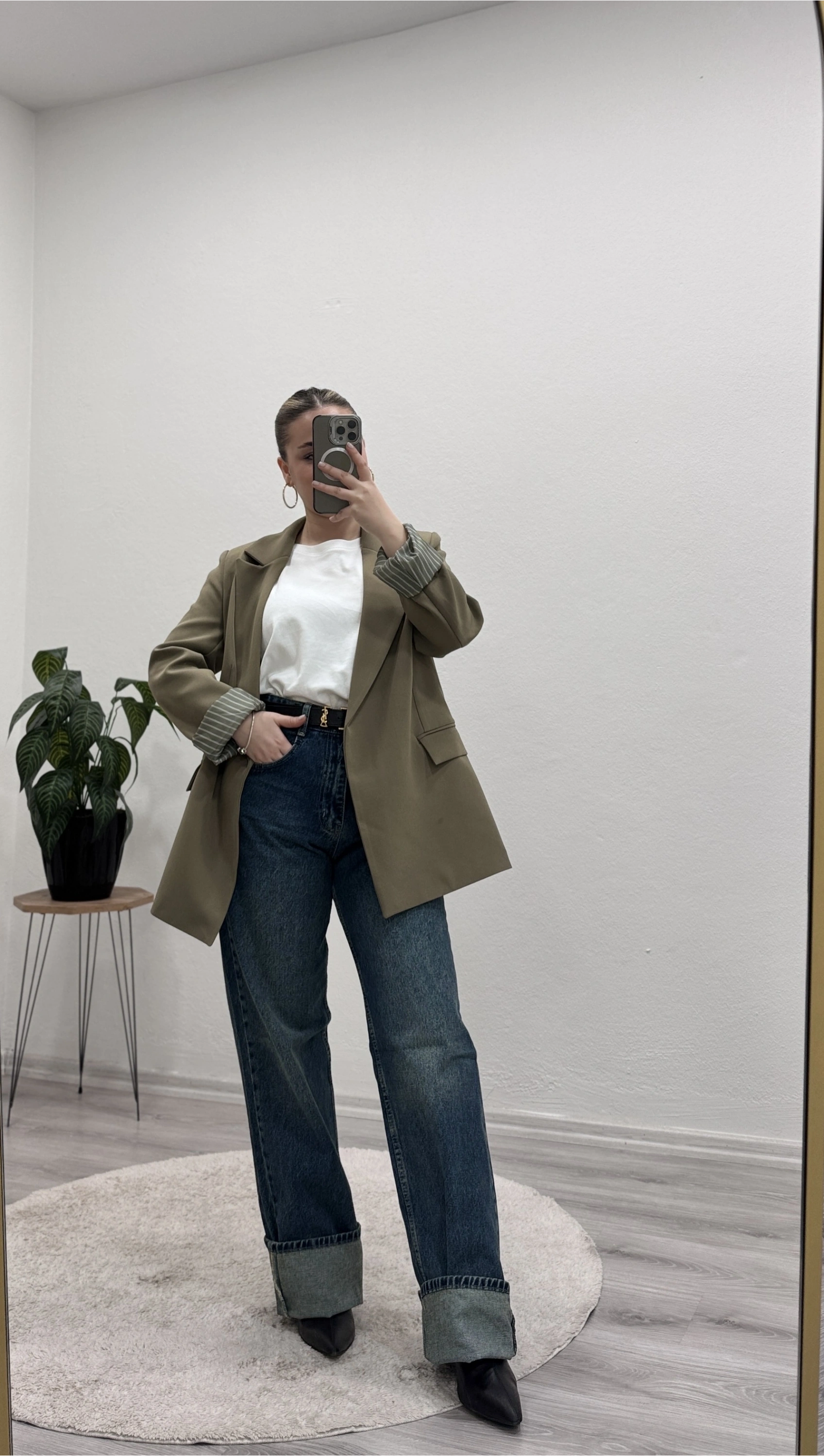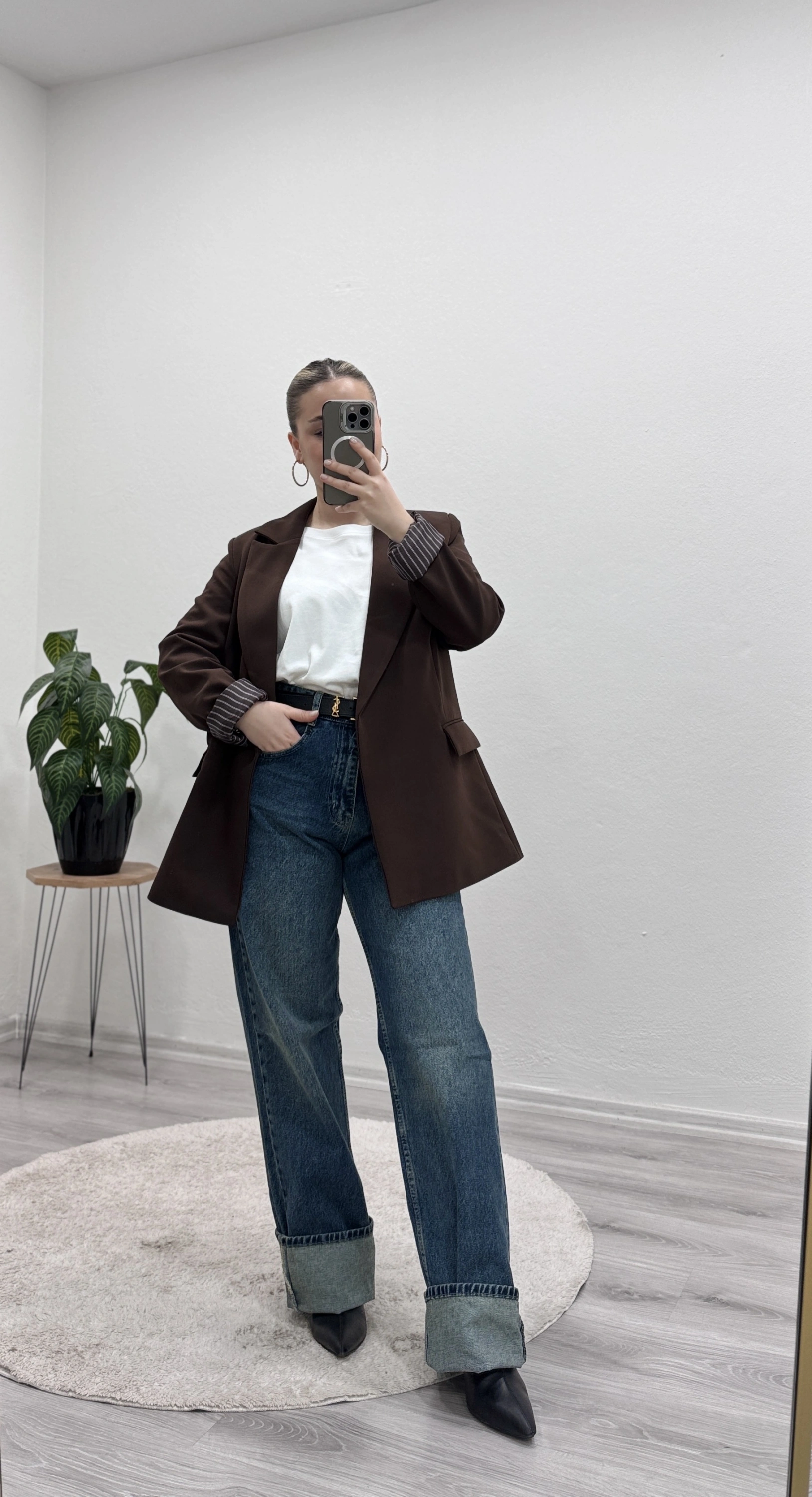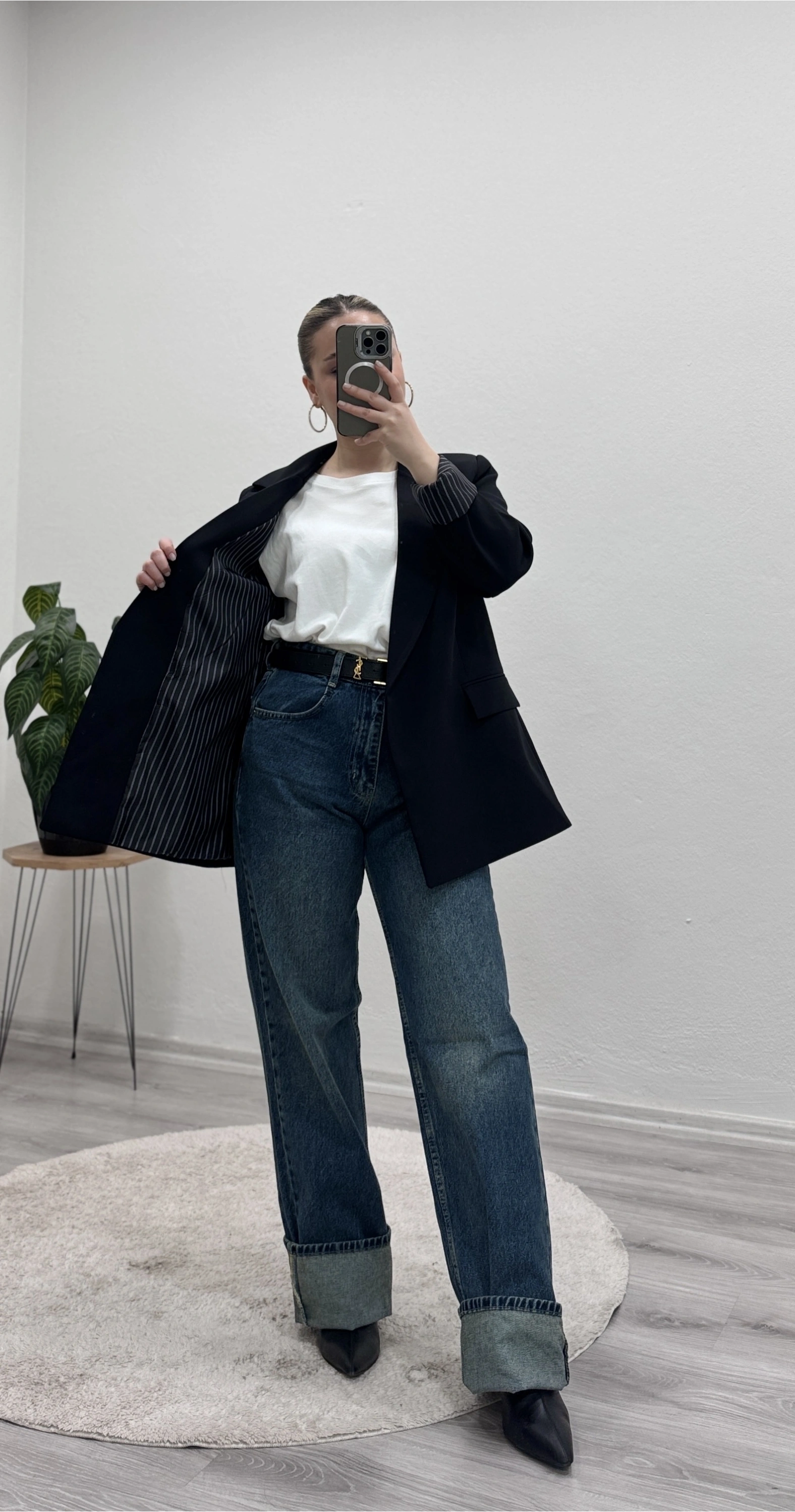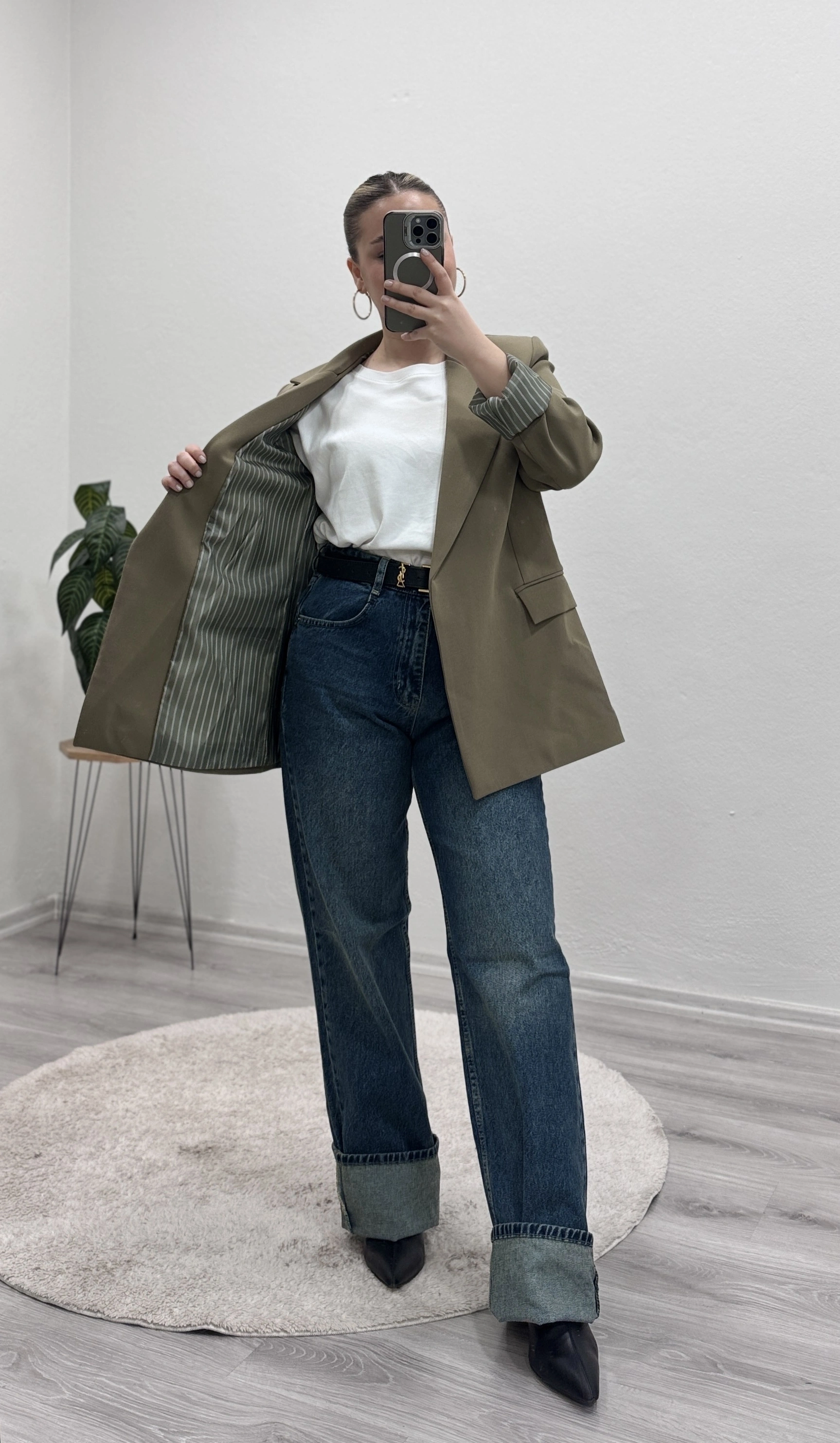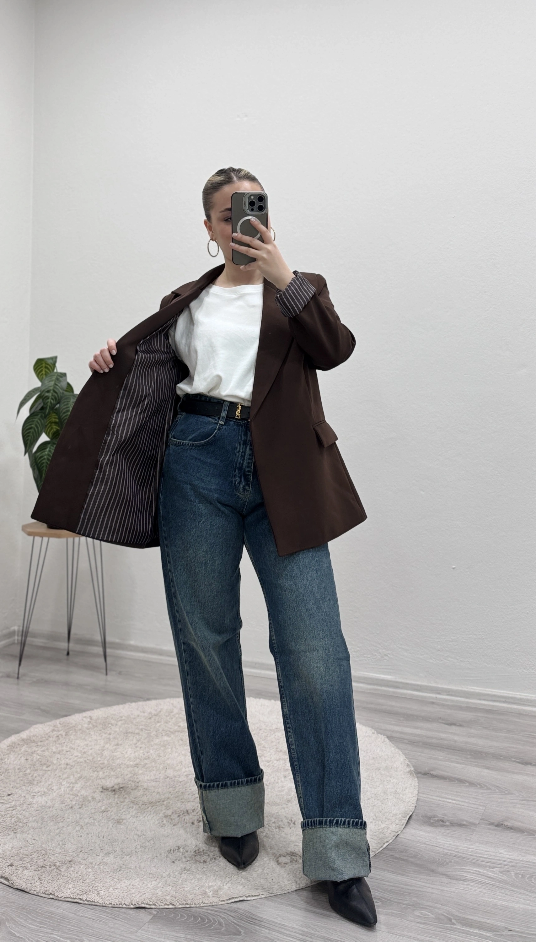 İç astarı çizgili blazer ceket, modern ve şık görünümüyle kombinlerinize güçlü bir dokunuş katıyor.