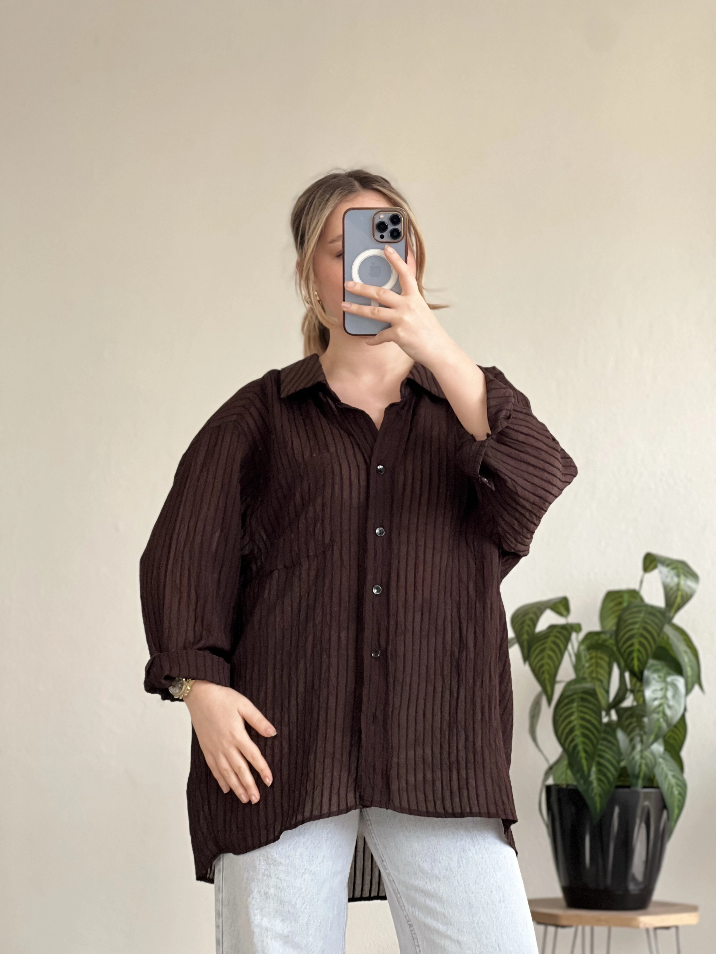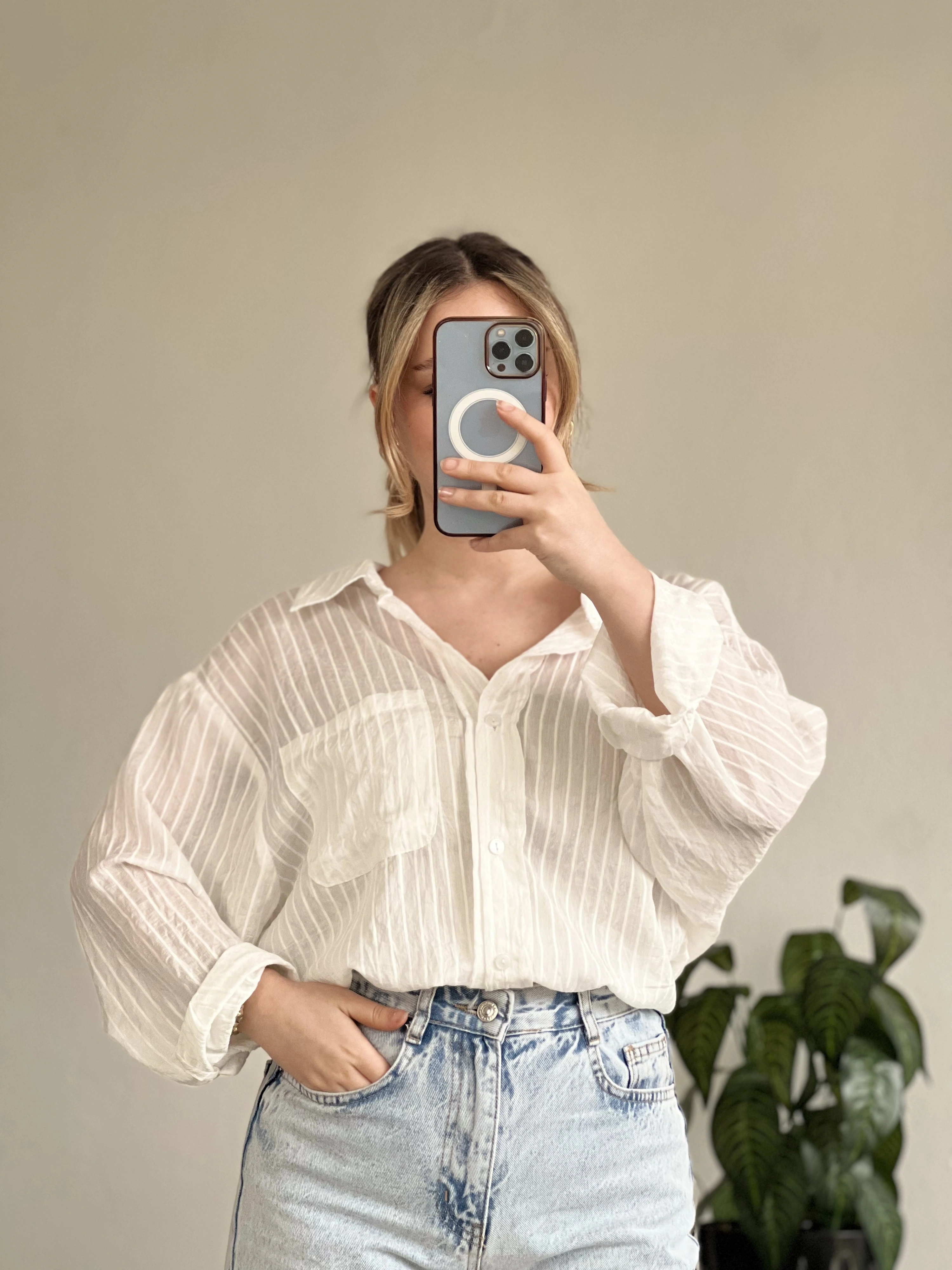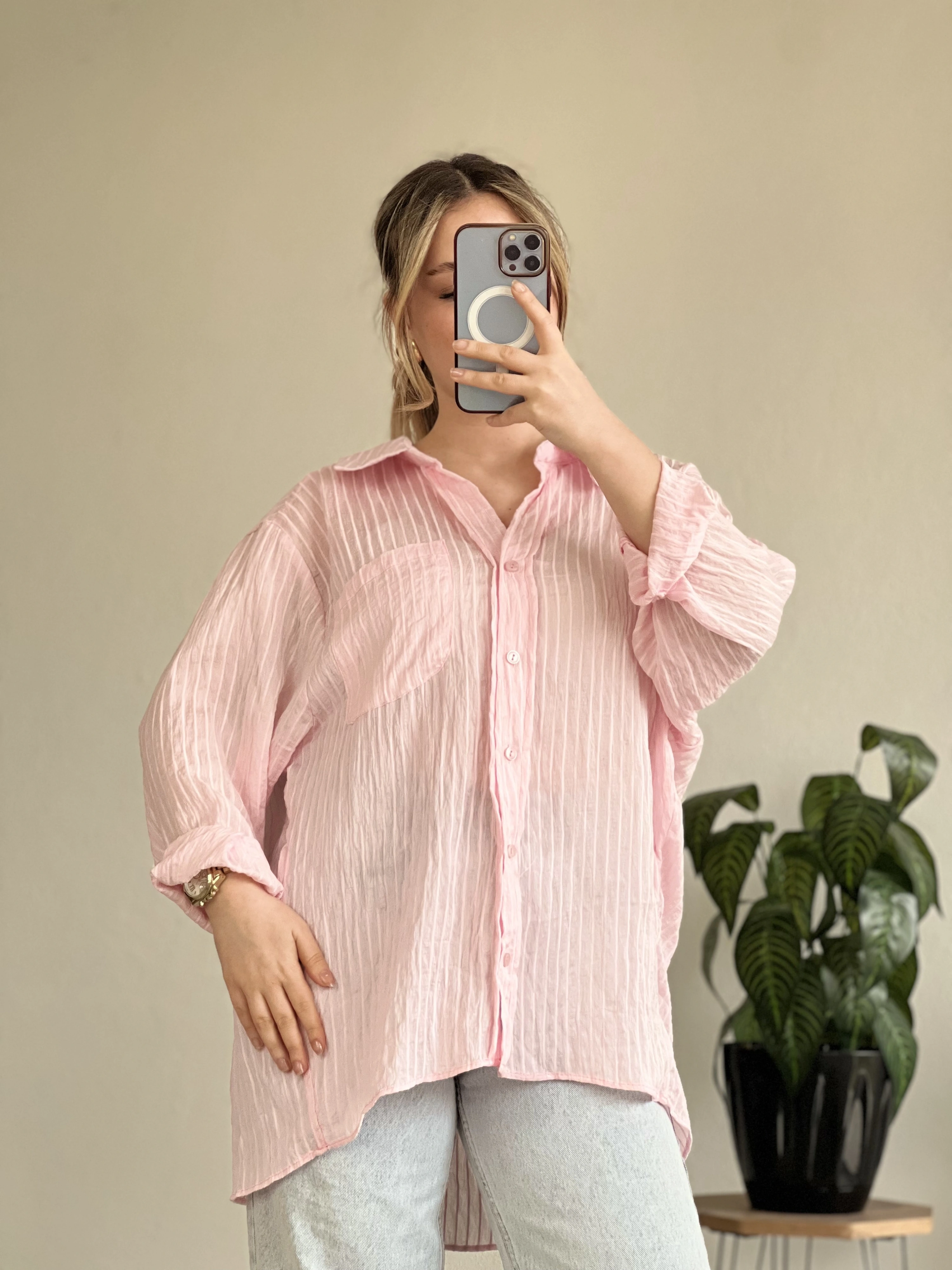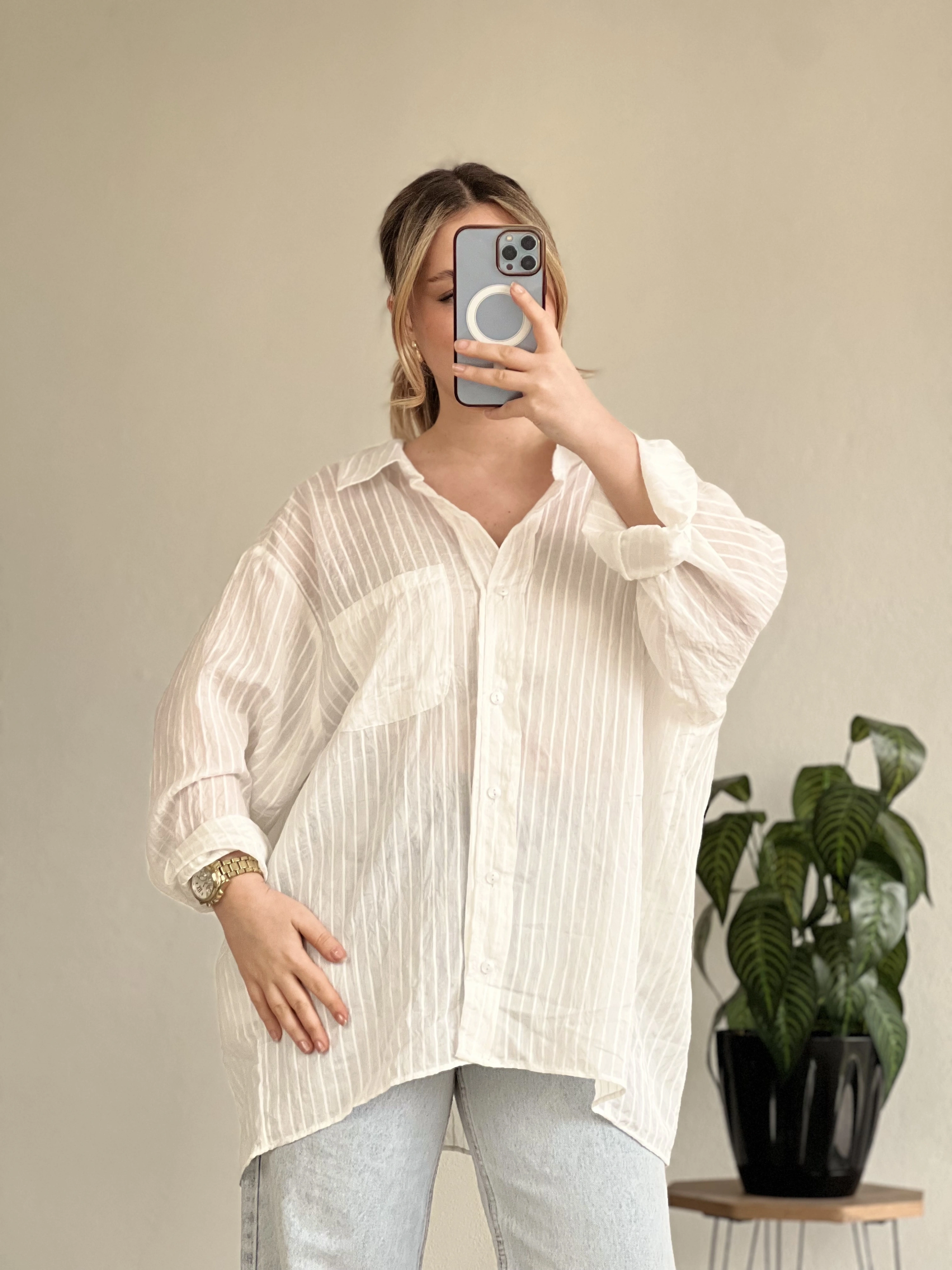 • ÇİZGİLİ TRANSPARAN GENİŞ KESİM GÖMLEK