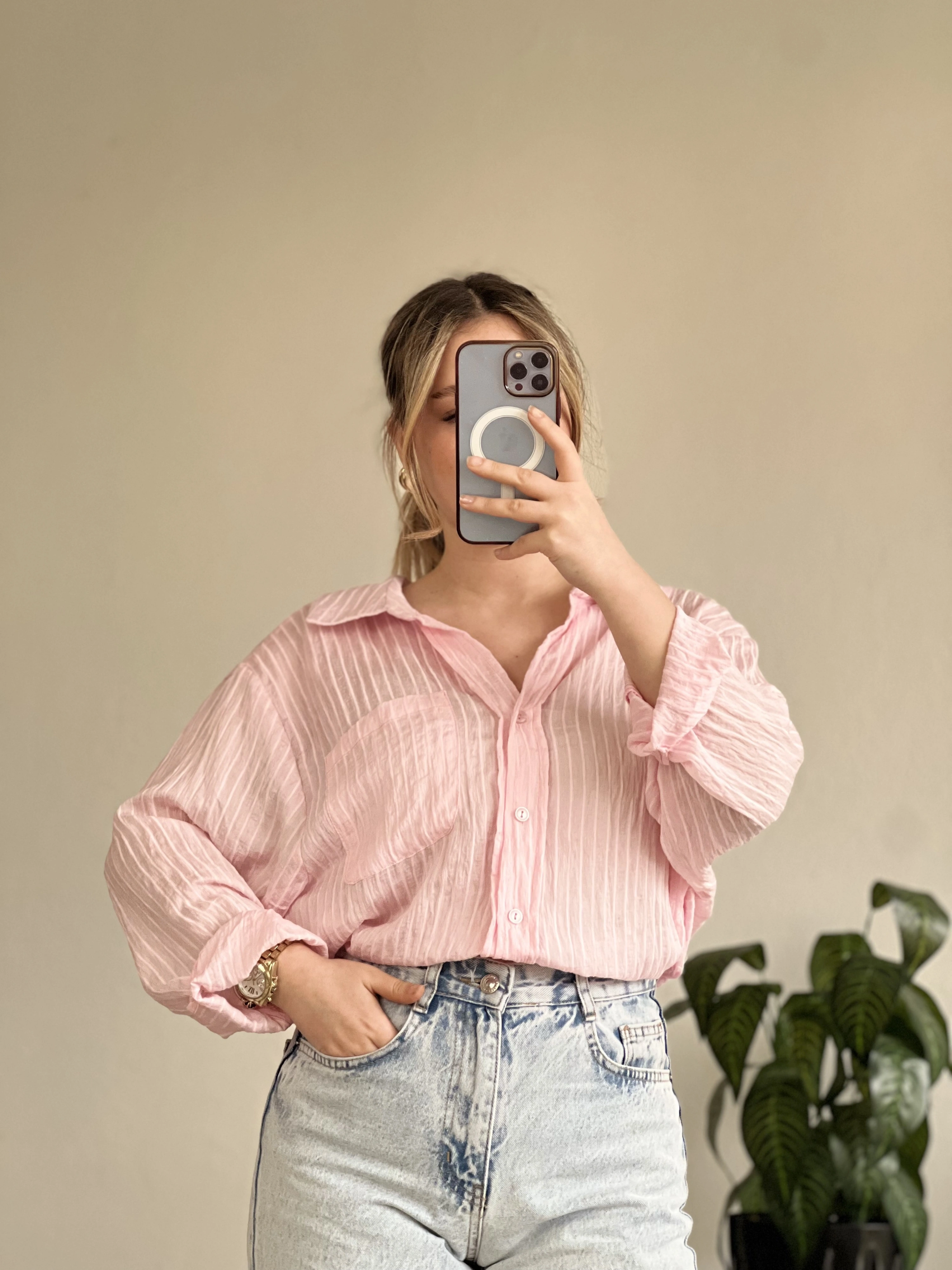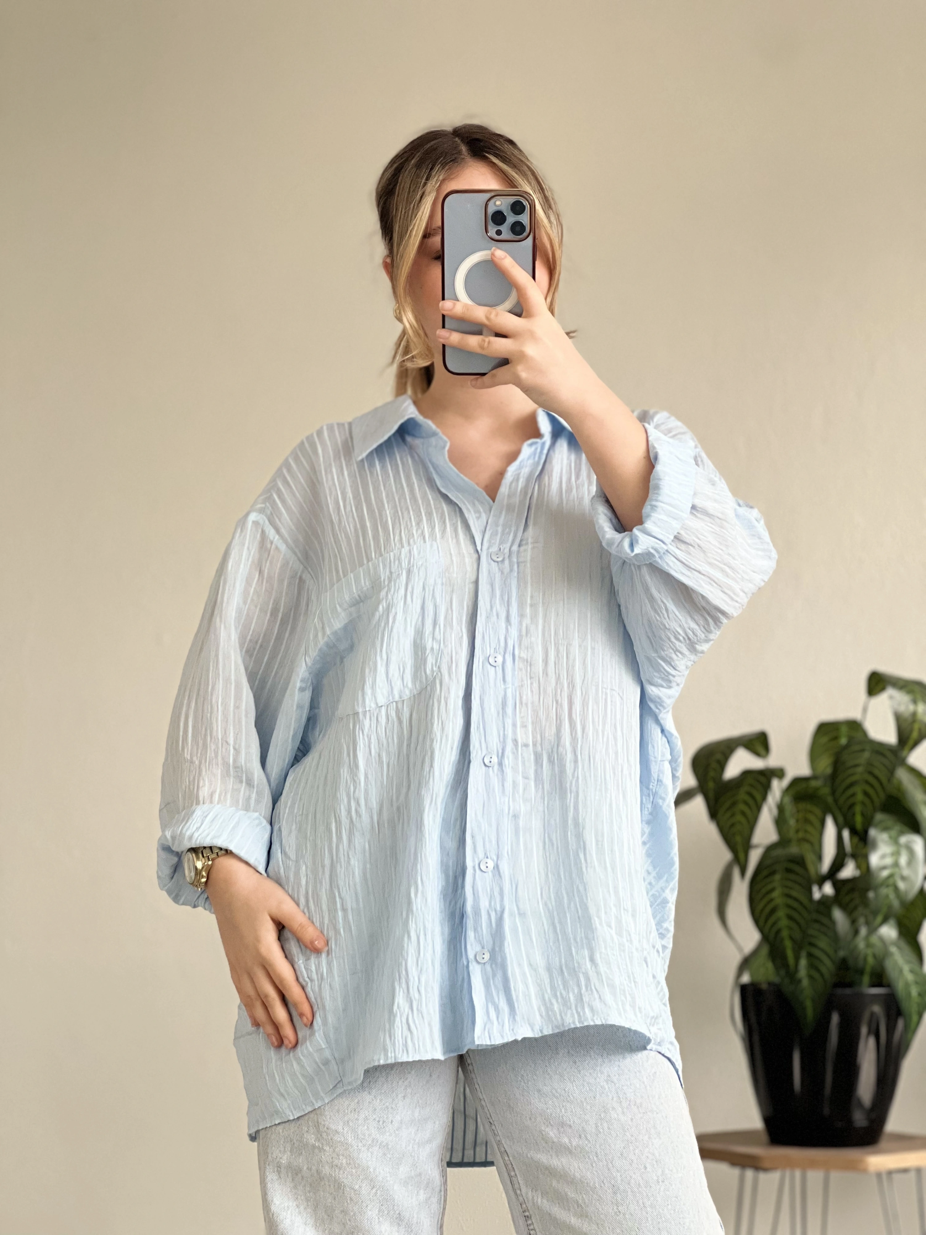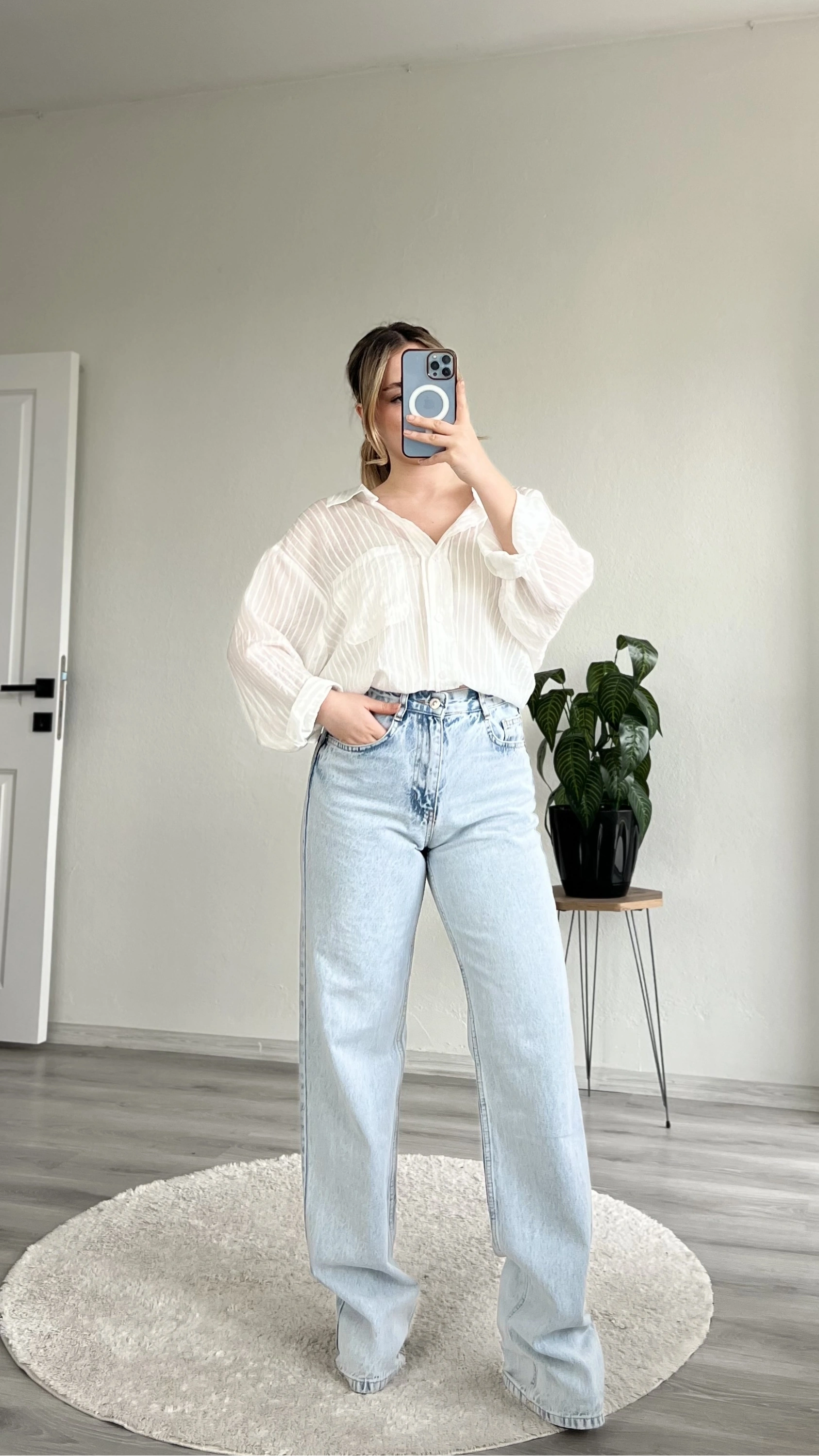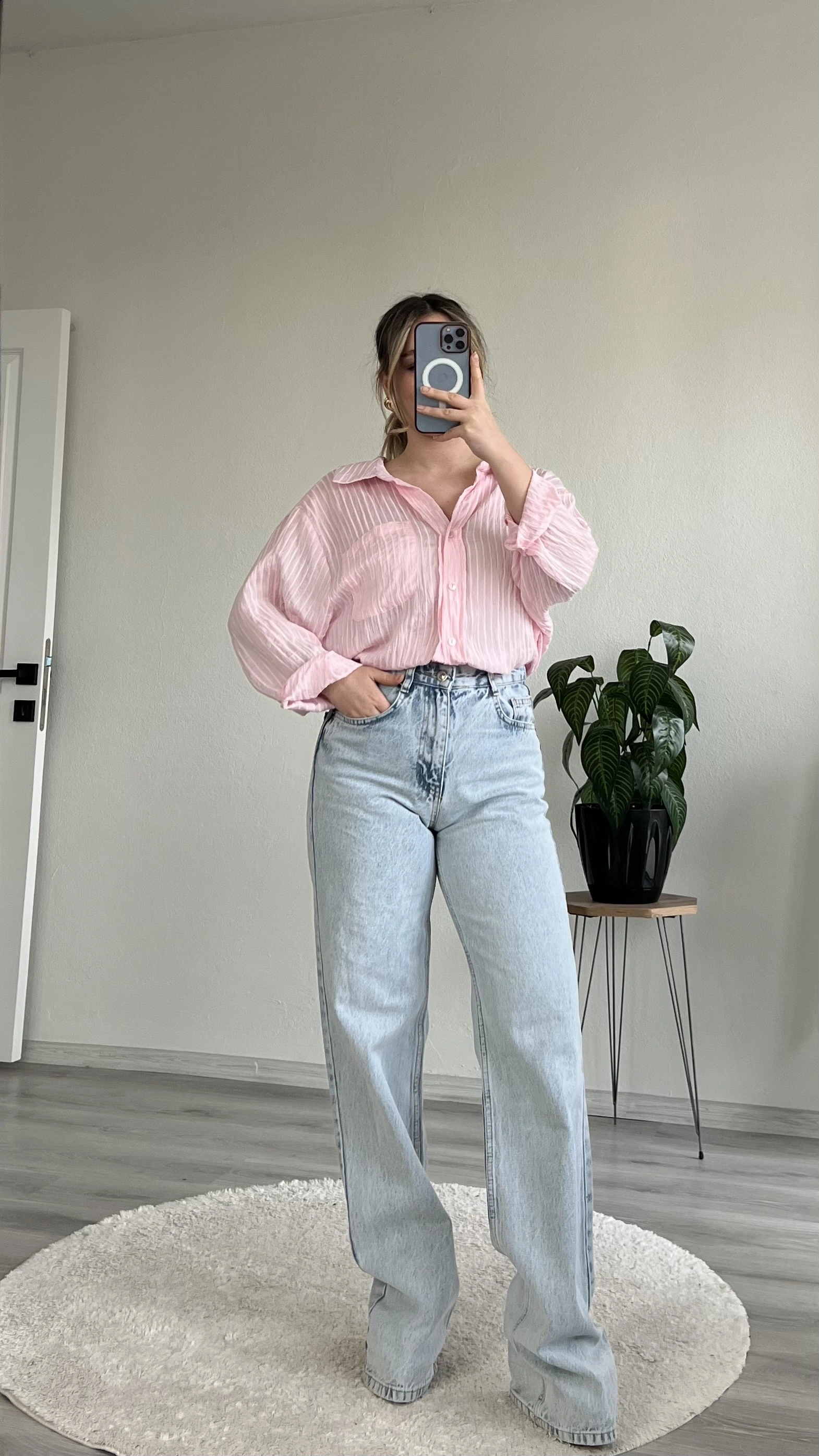 • ÇİZGİLİ TRANSPARAN GENİŞ KESİM GÖMLEK