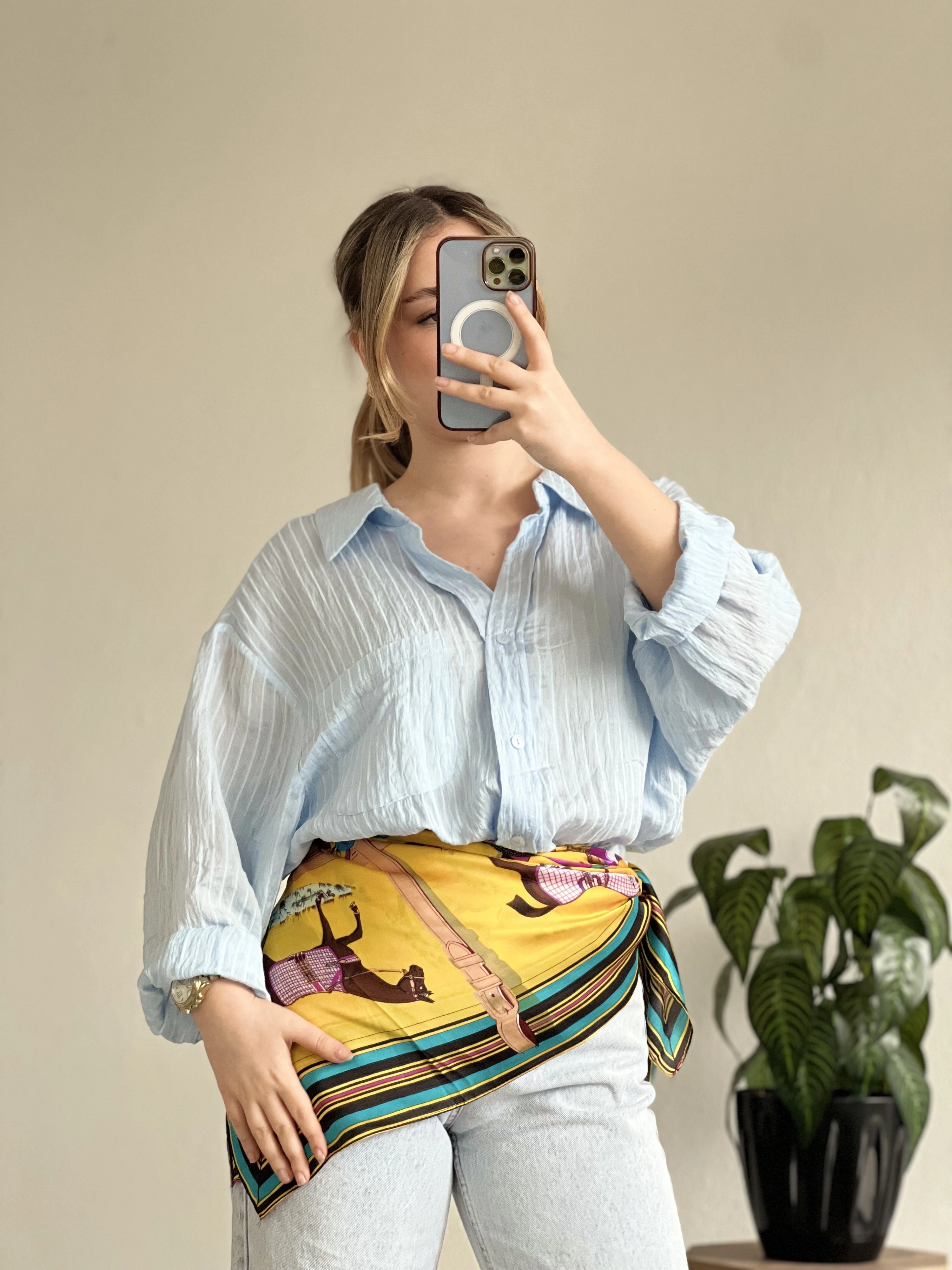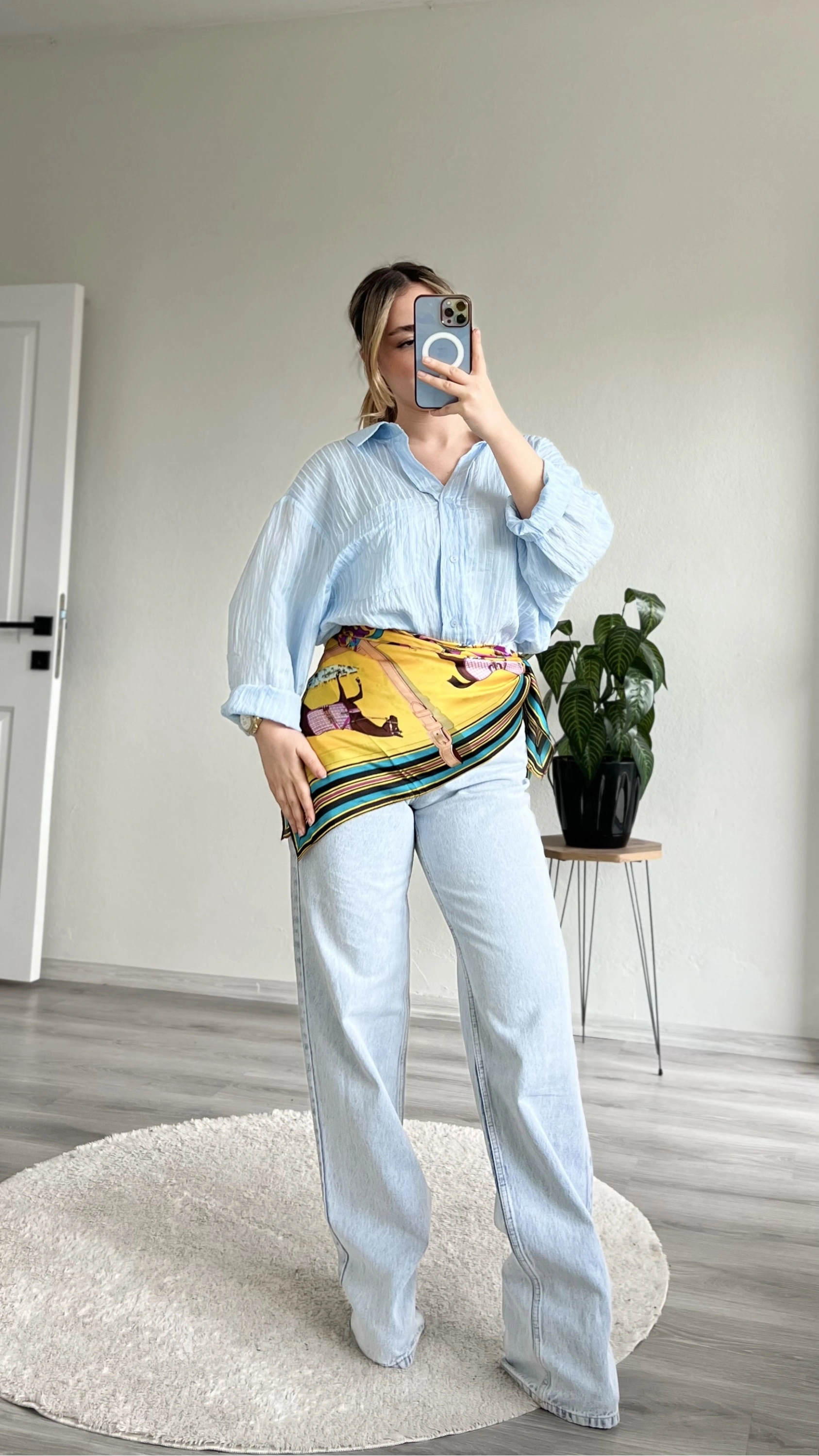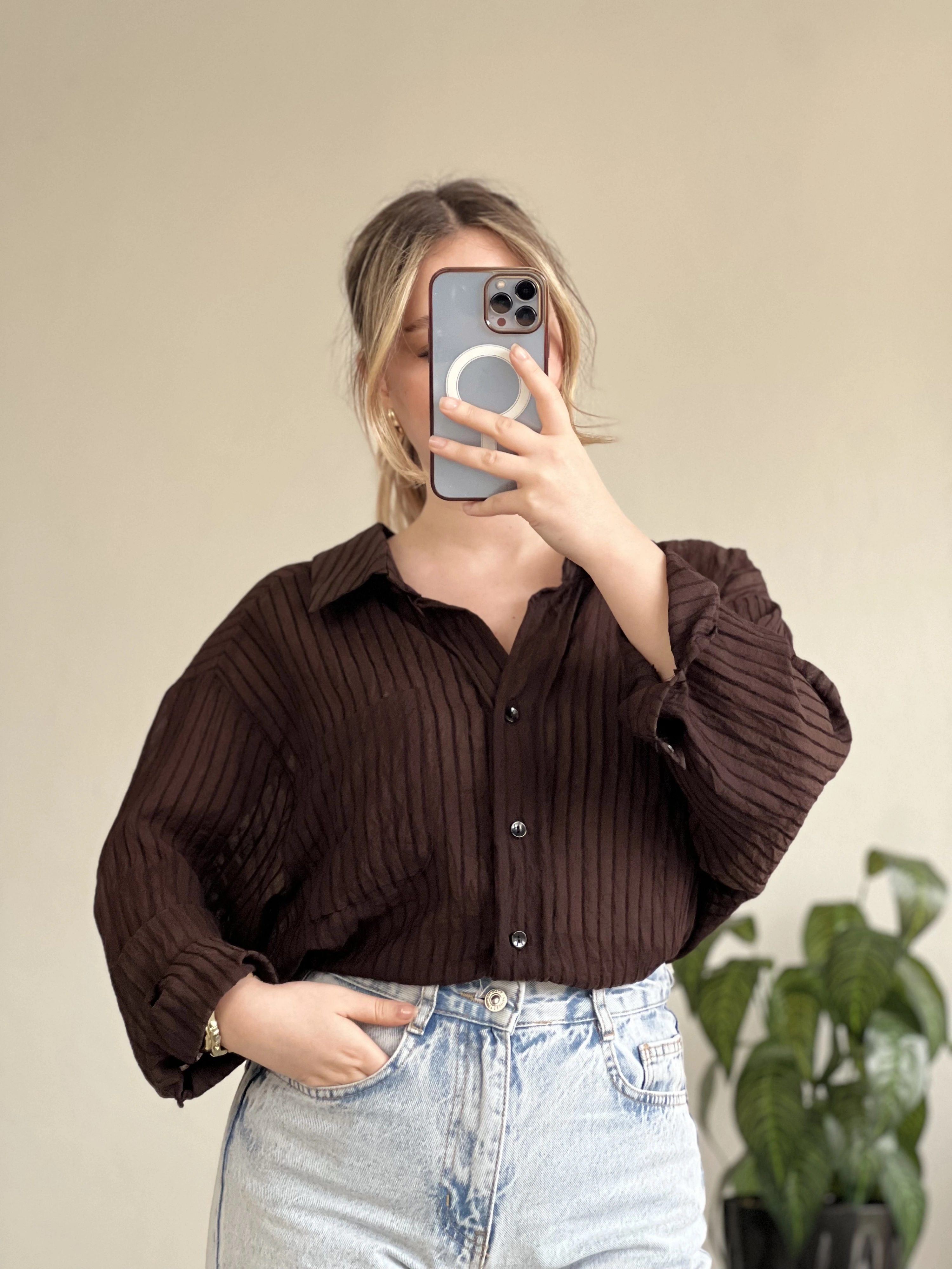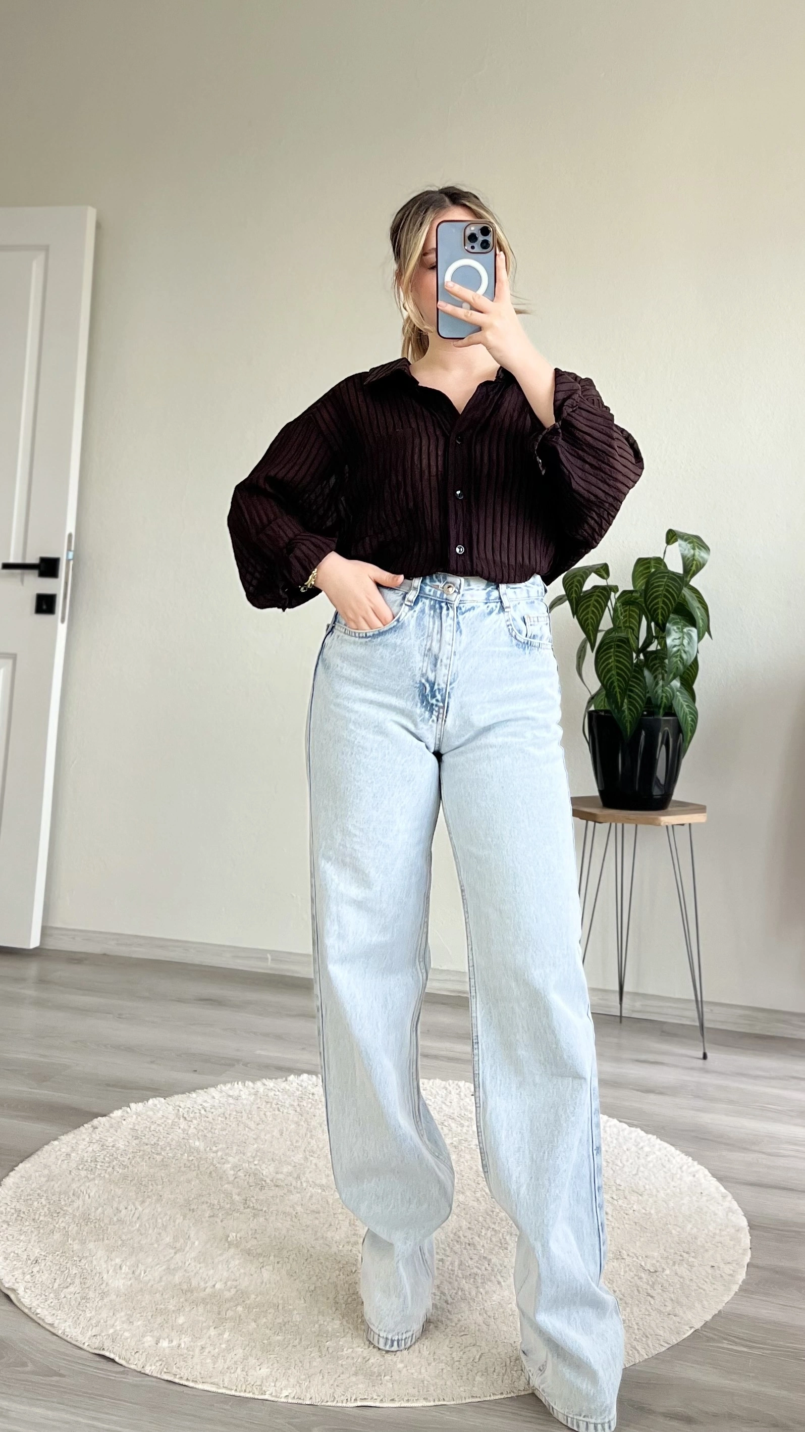 • ÇİZGİLİ TRANSPARAN GENİŞ KESİM GÖMLEK