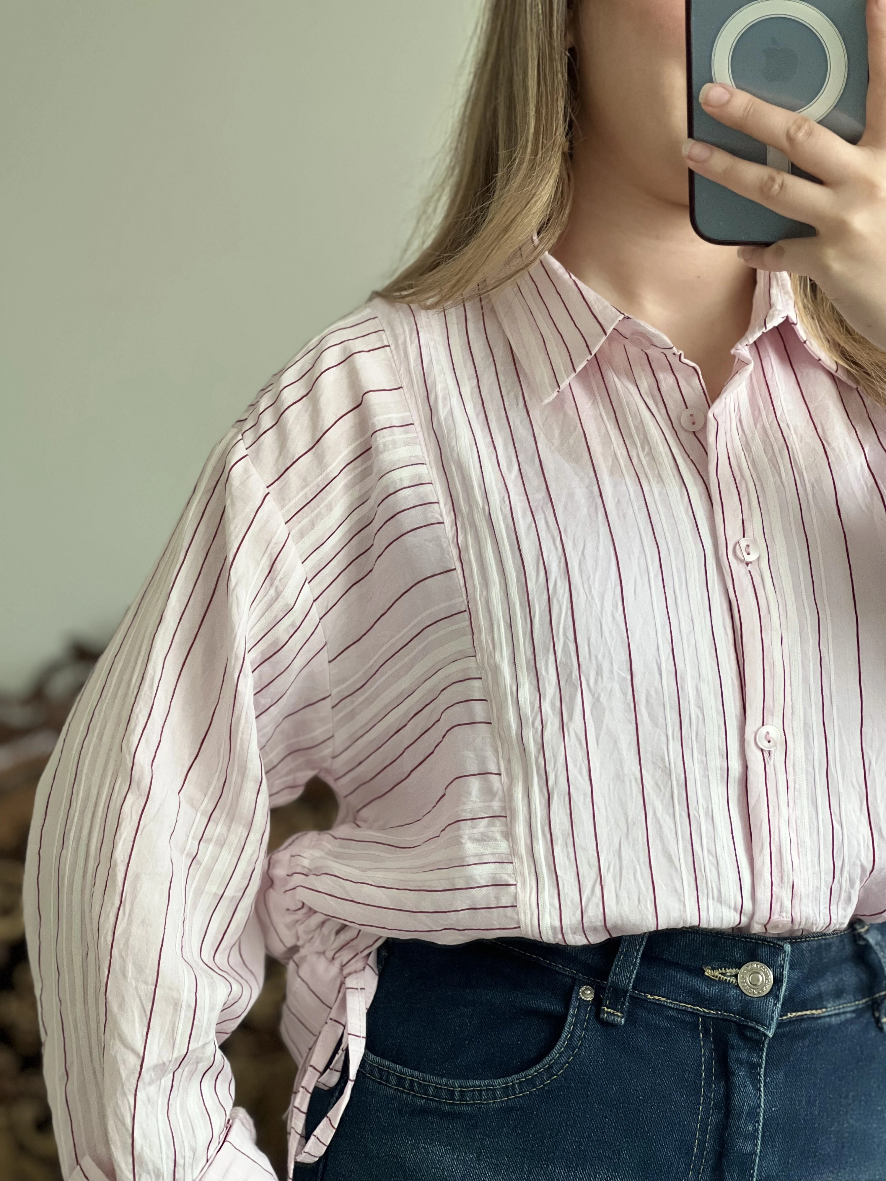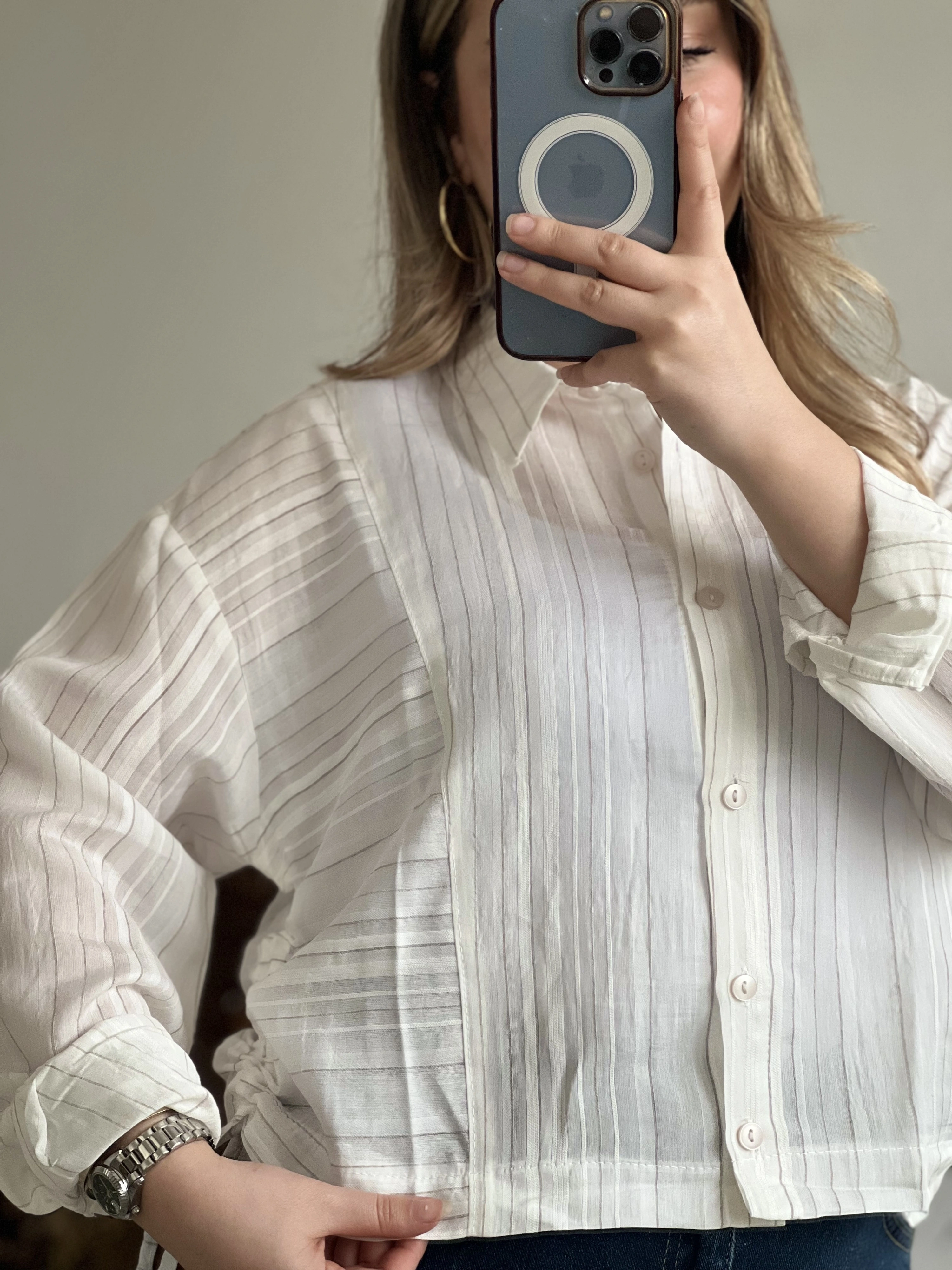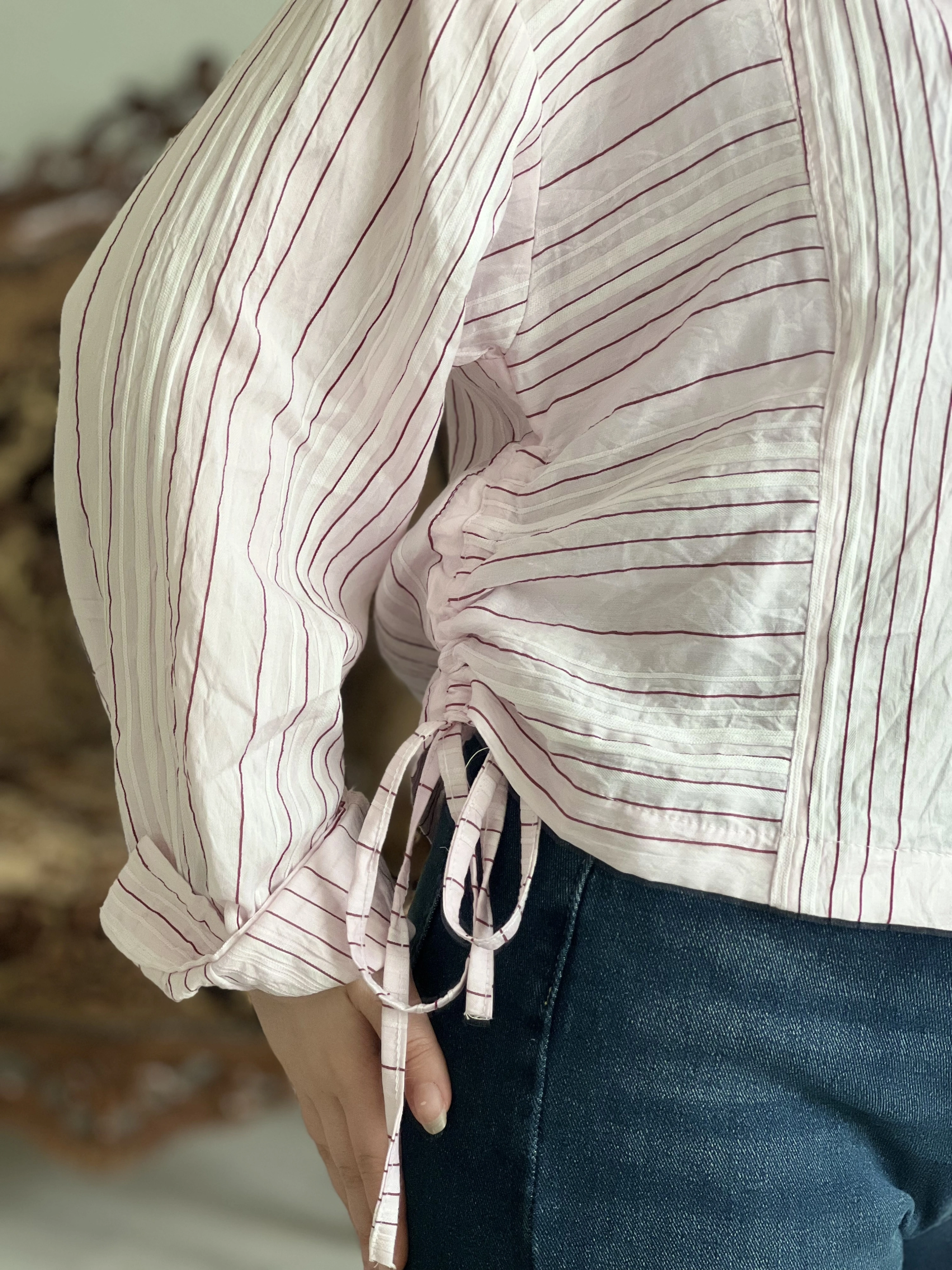 ÇİZGİLİ YANDAN BÜZGÜLÜ GÖMLEK