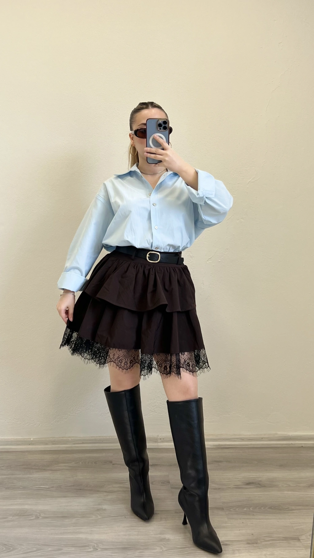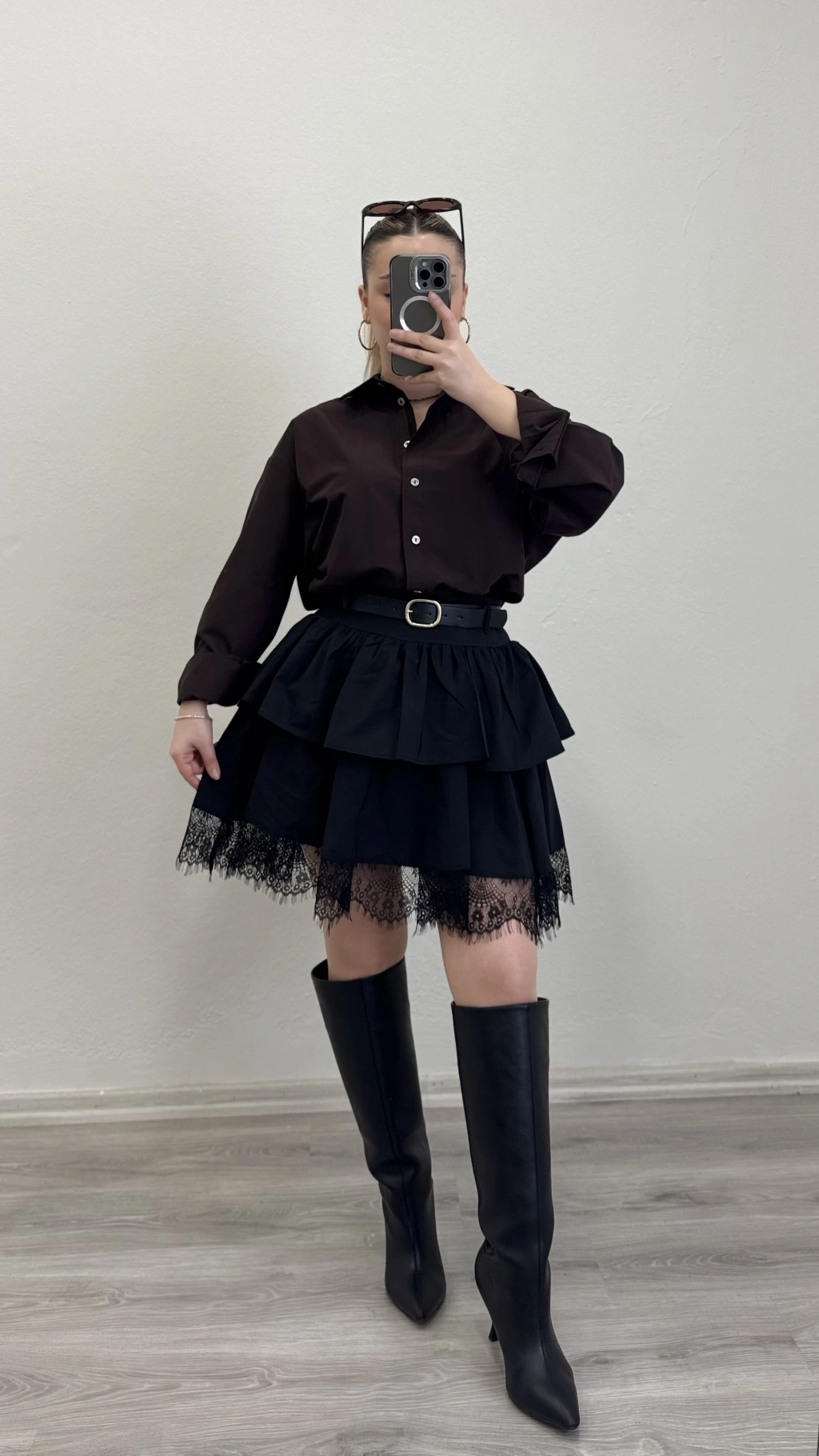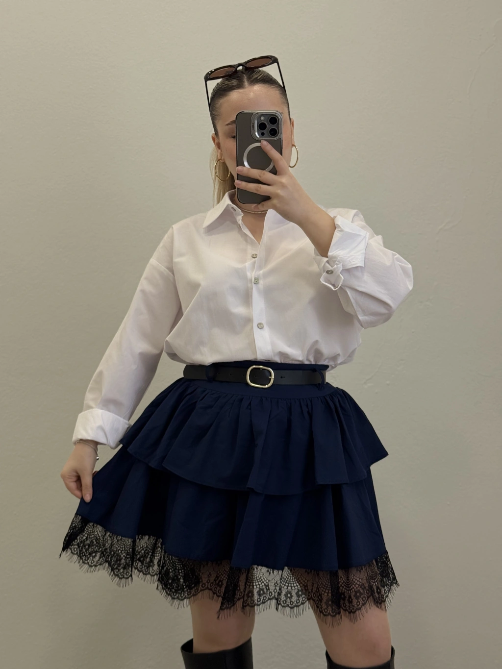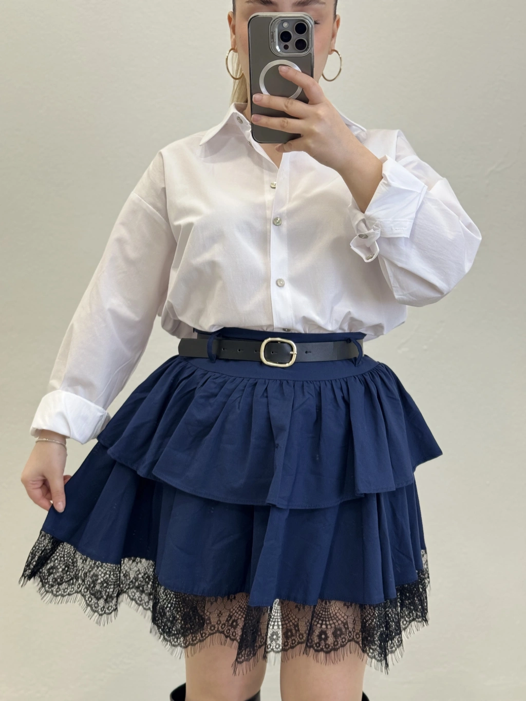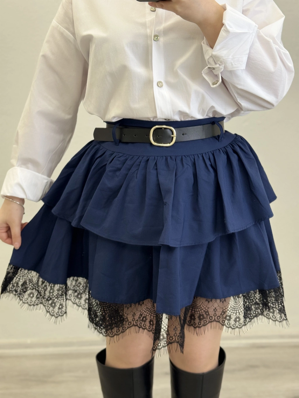 DANTEL DETAY KEMERLİ ETEK