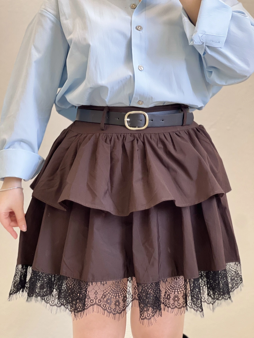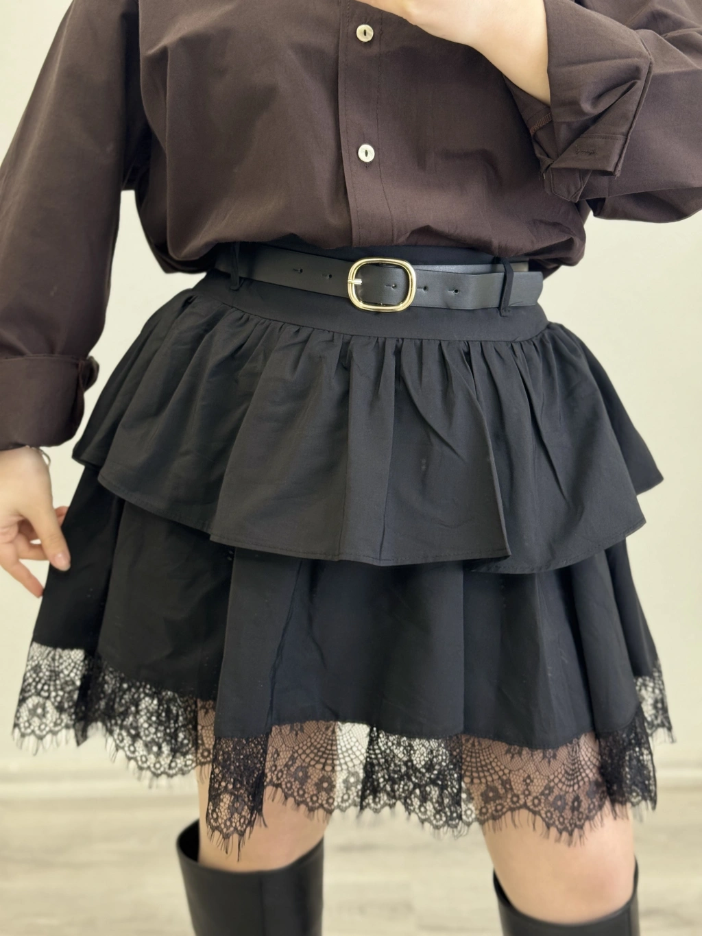 DANTEL DETAY İÇİ ŞORTLU KEMERLİ ETEK