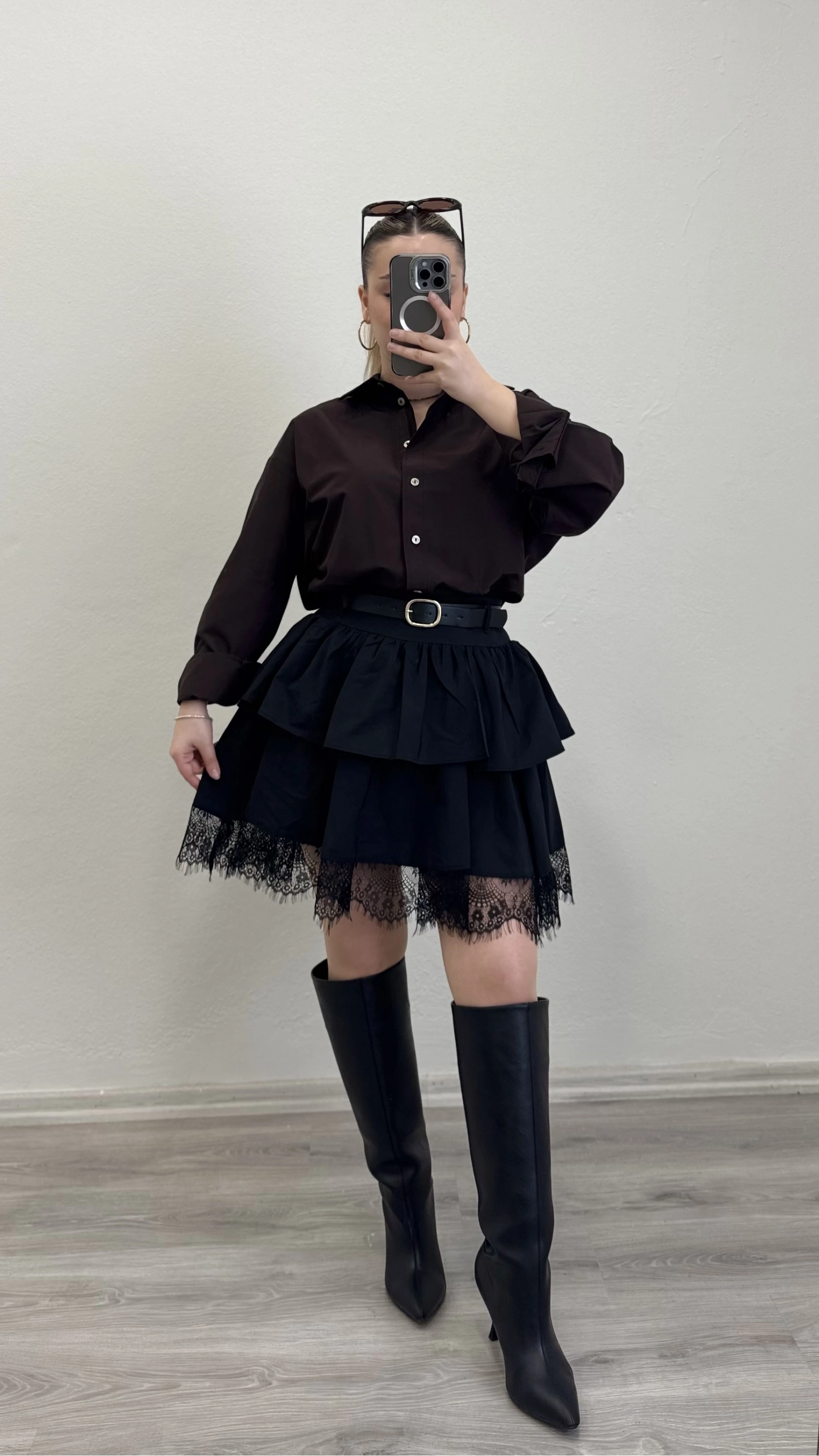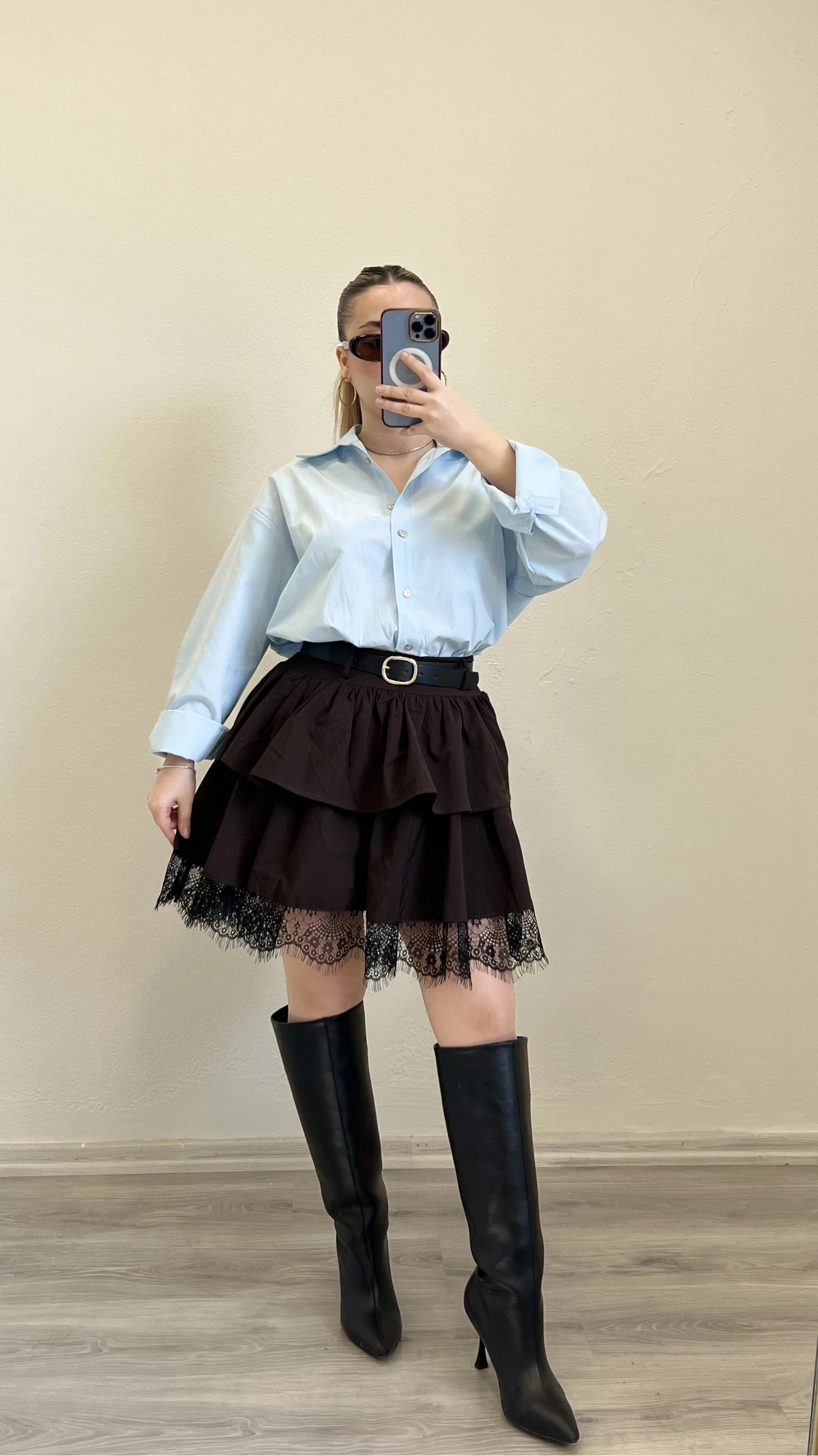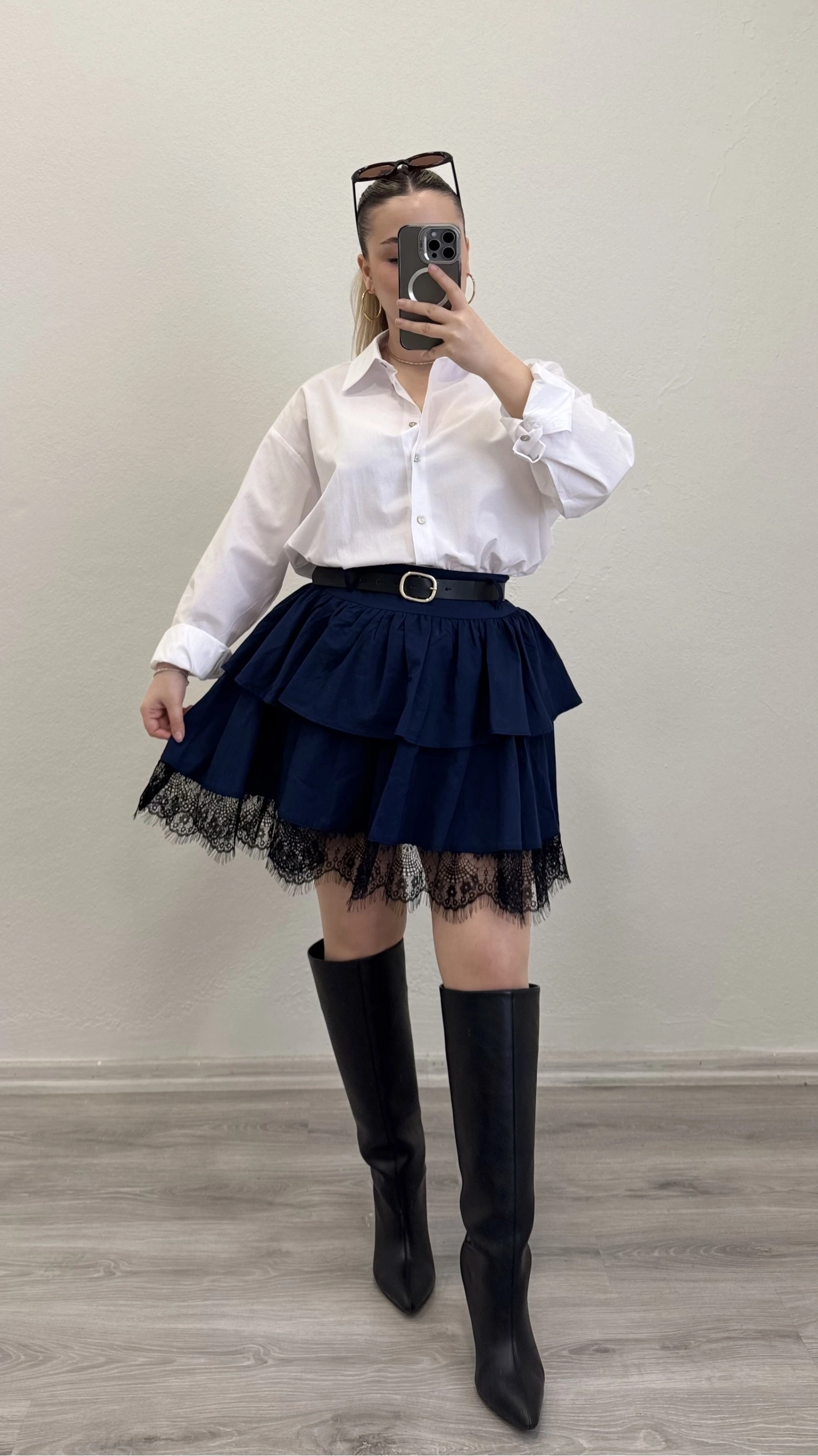 • DANTEL DETAY İÇİ ŞORTLU KEMERLİ ETEK