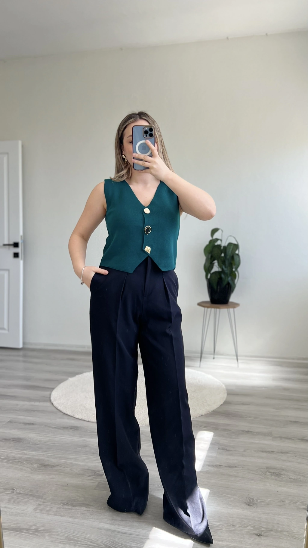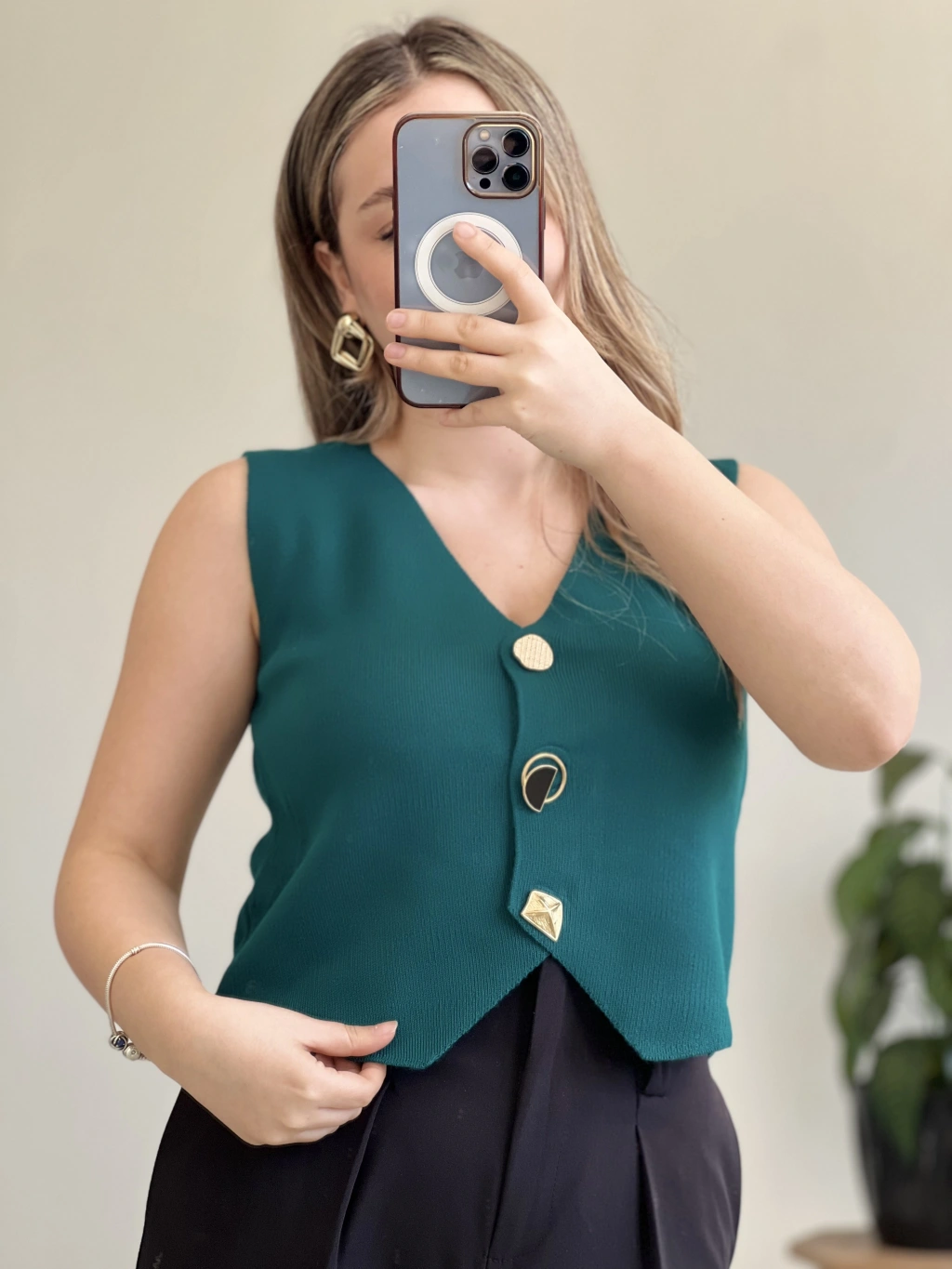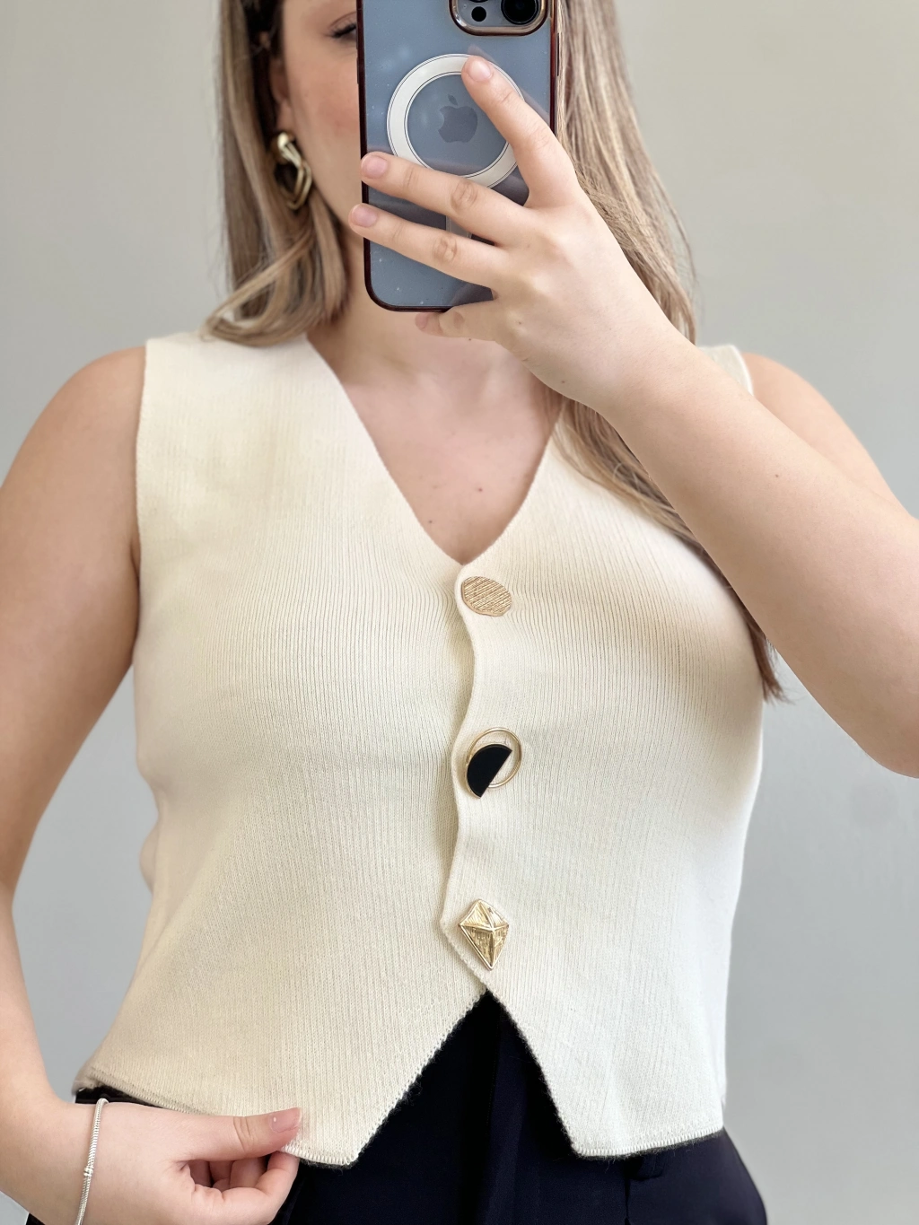GOLD DÜĞMELİ ÇELİK ÖRME YELEK
