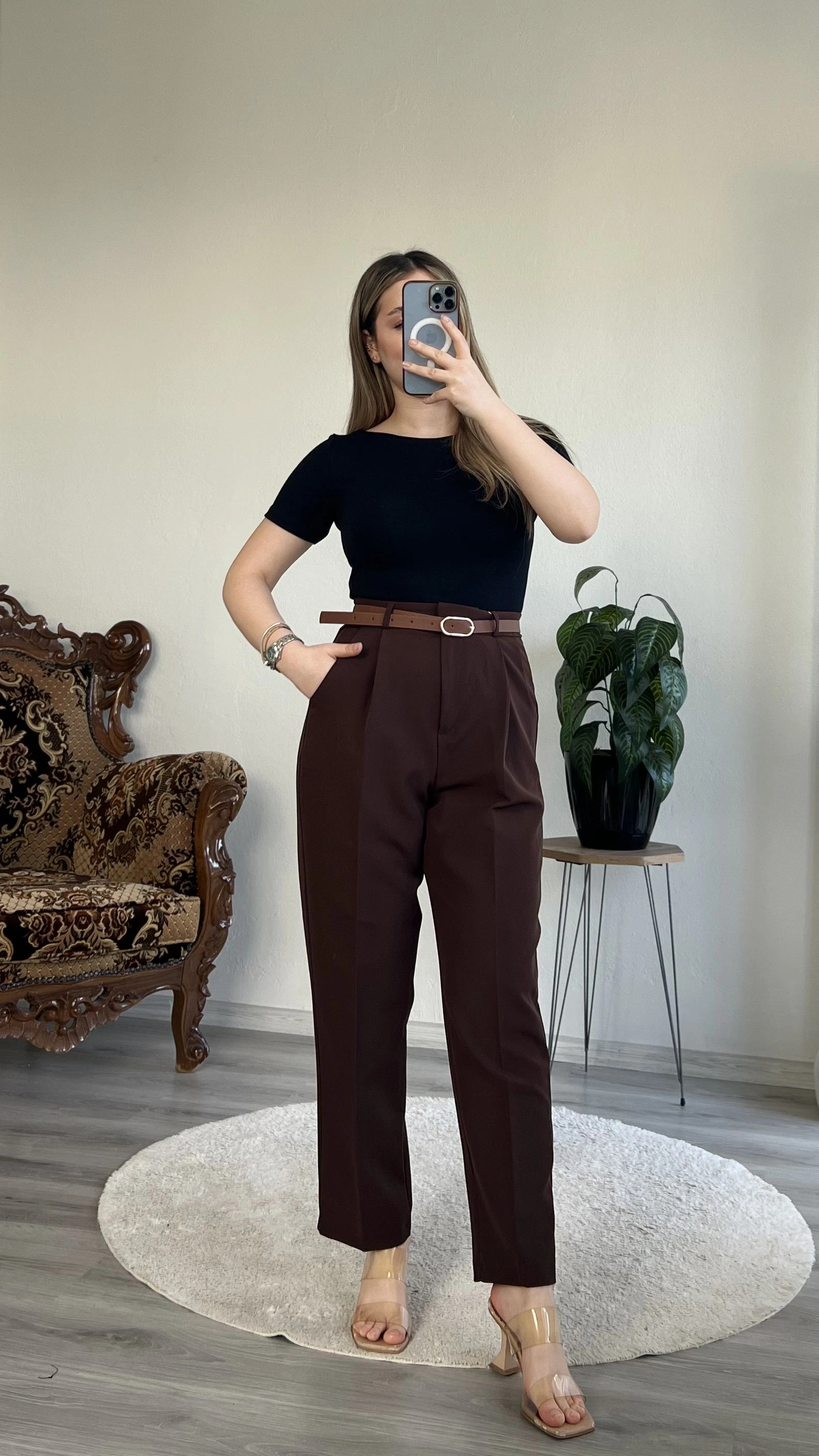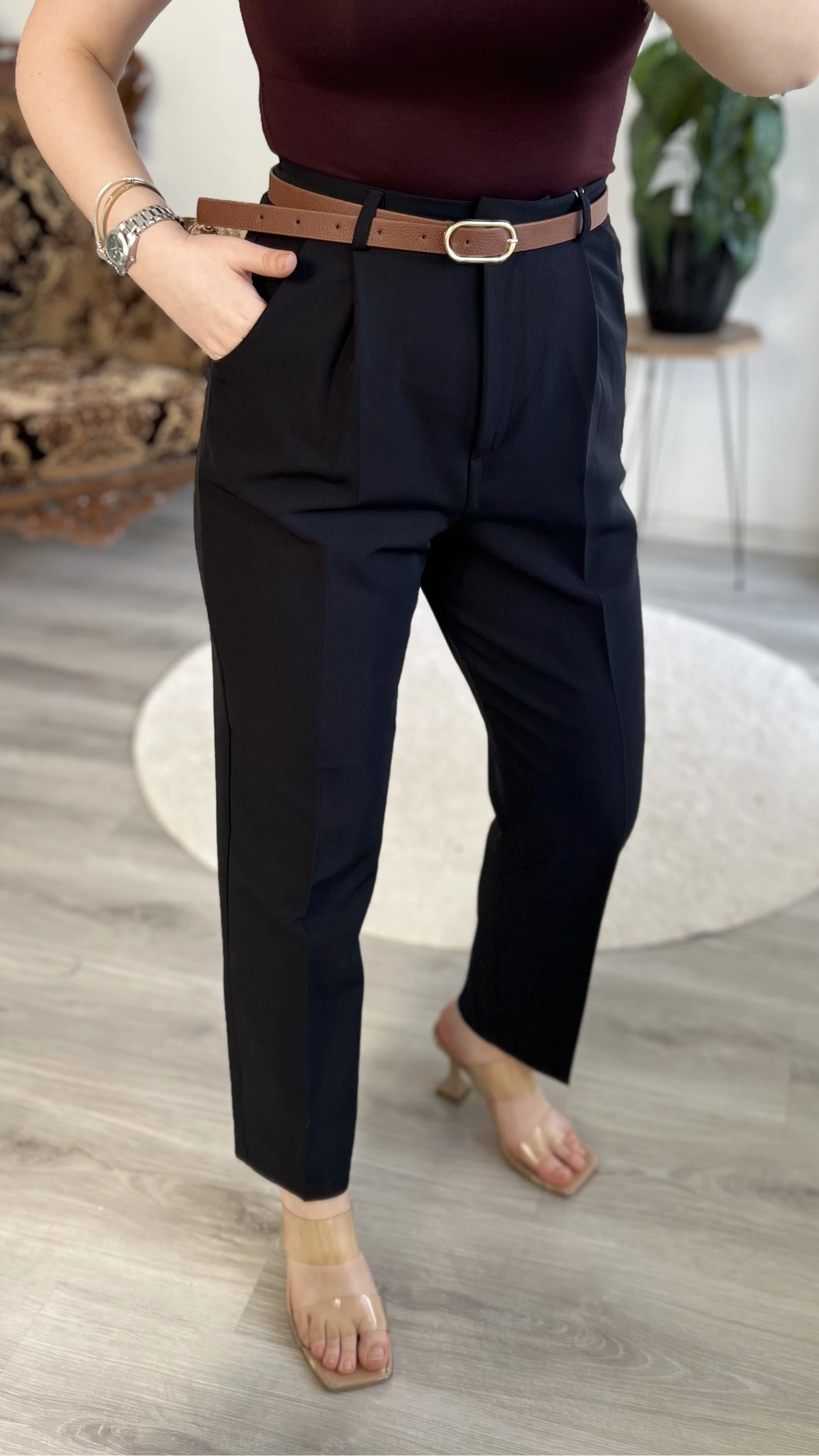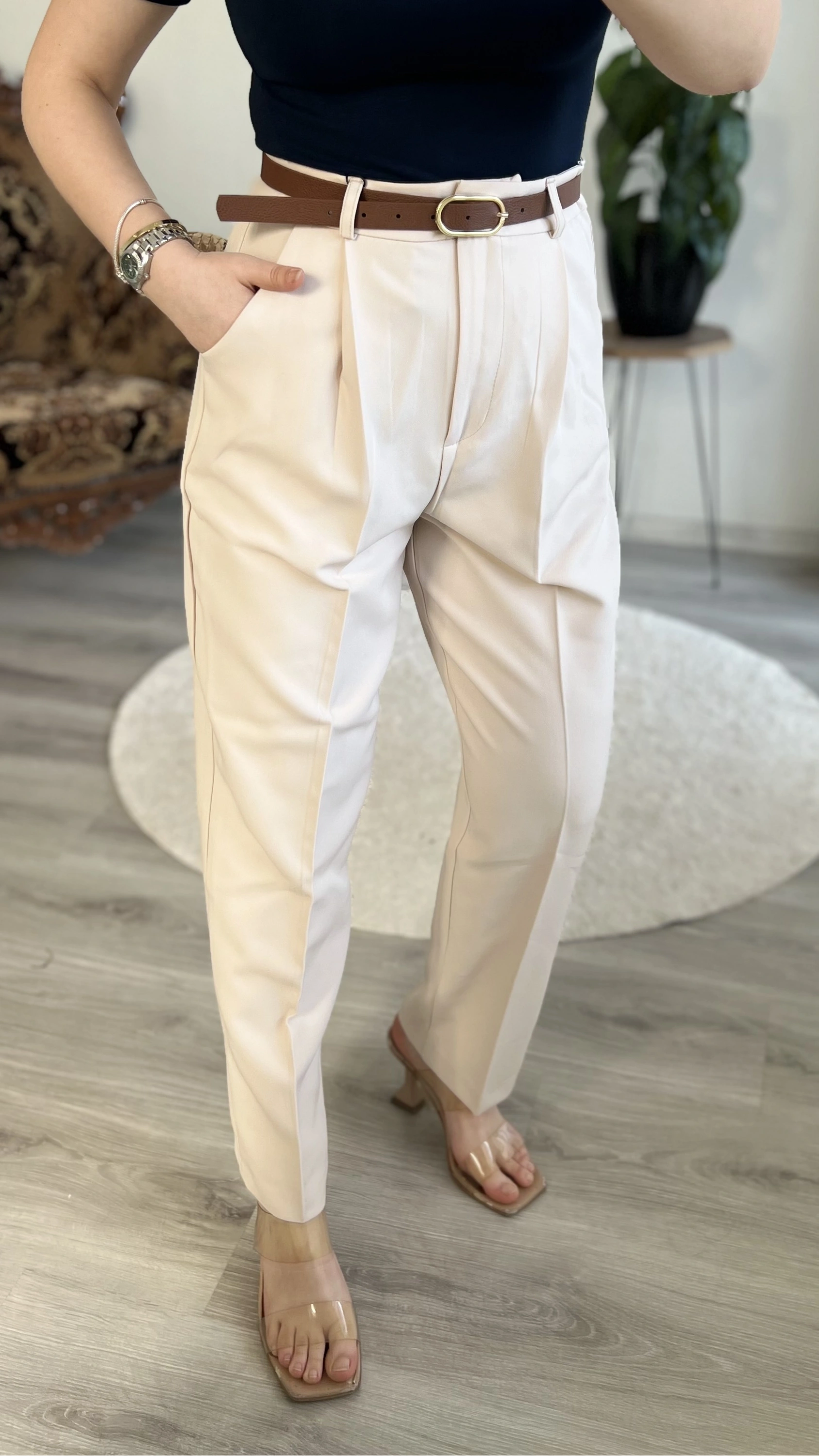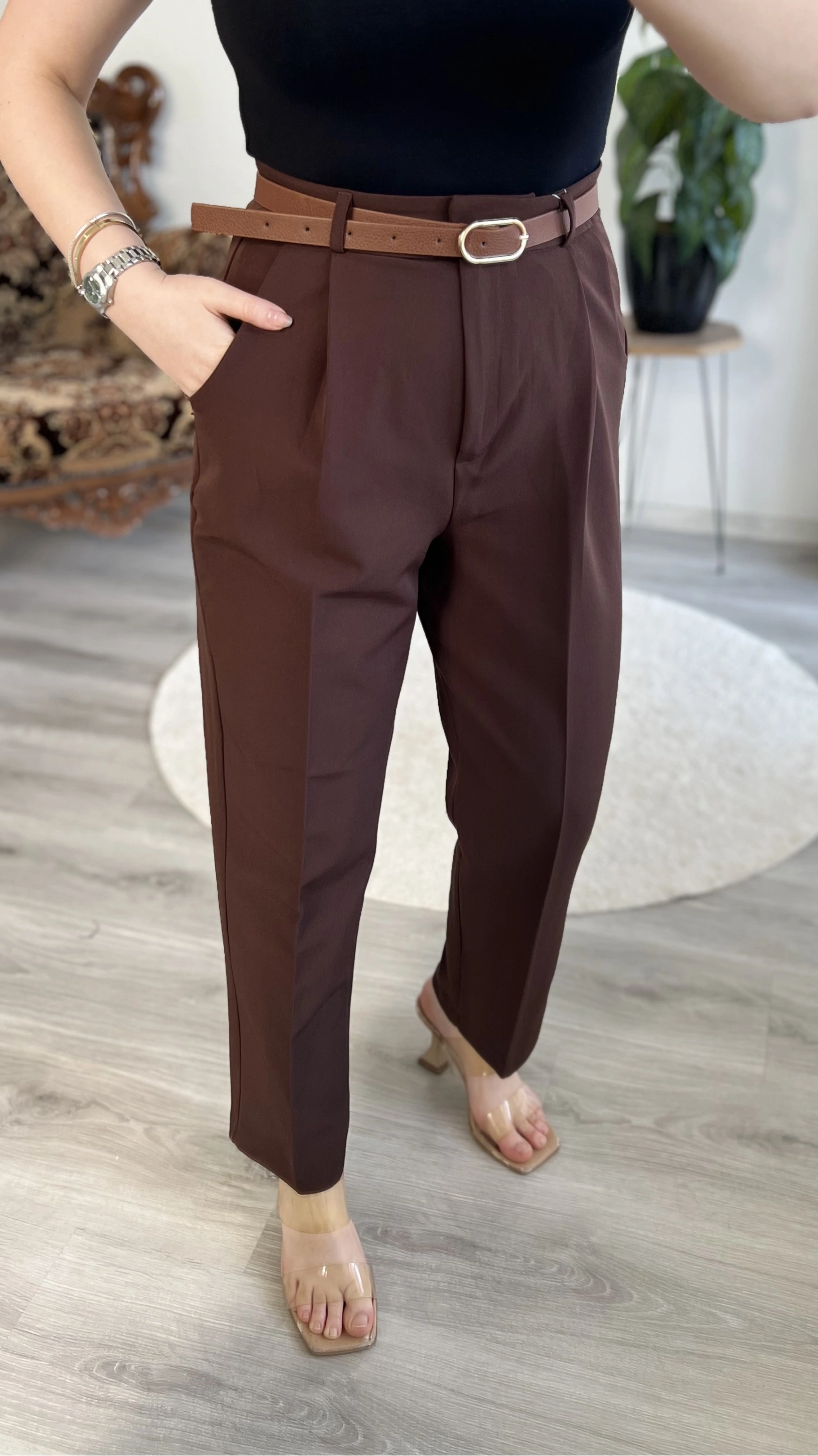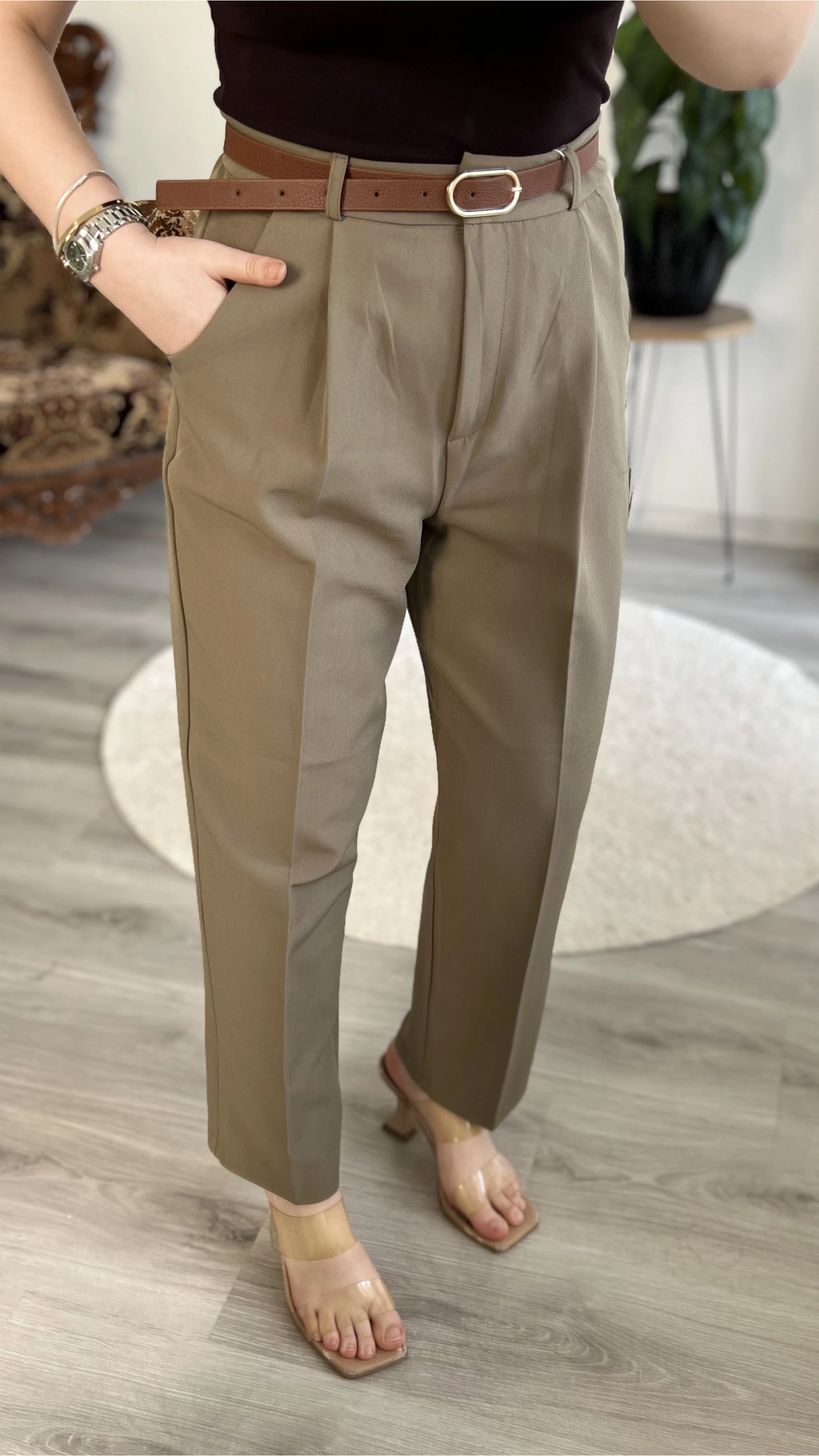 KEMERLİ CEP KAPAKLI PANTOLON