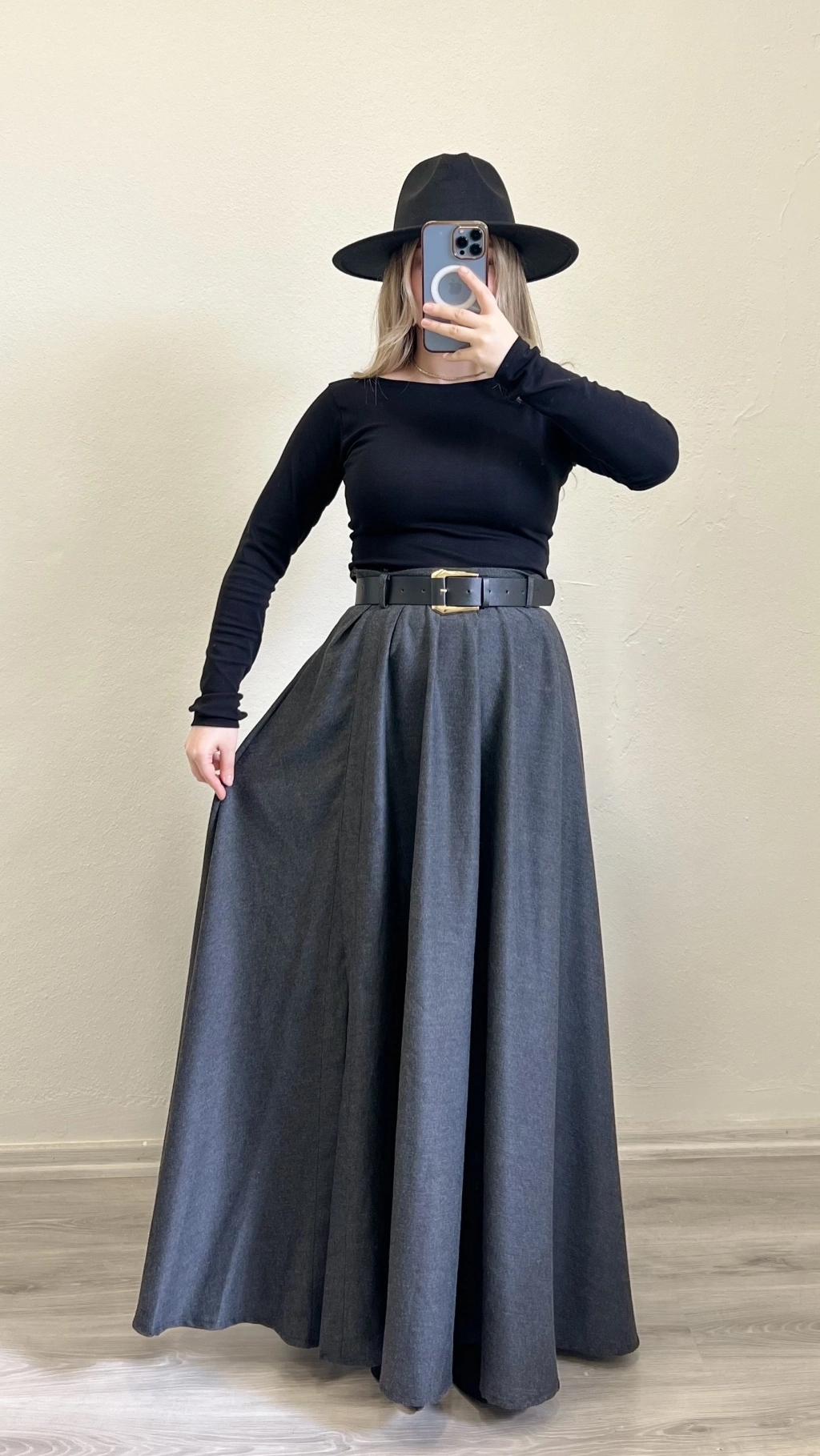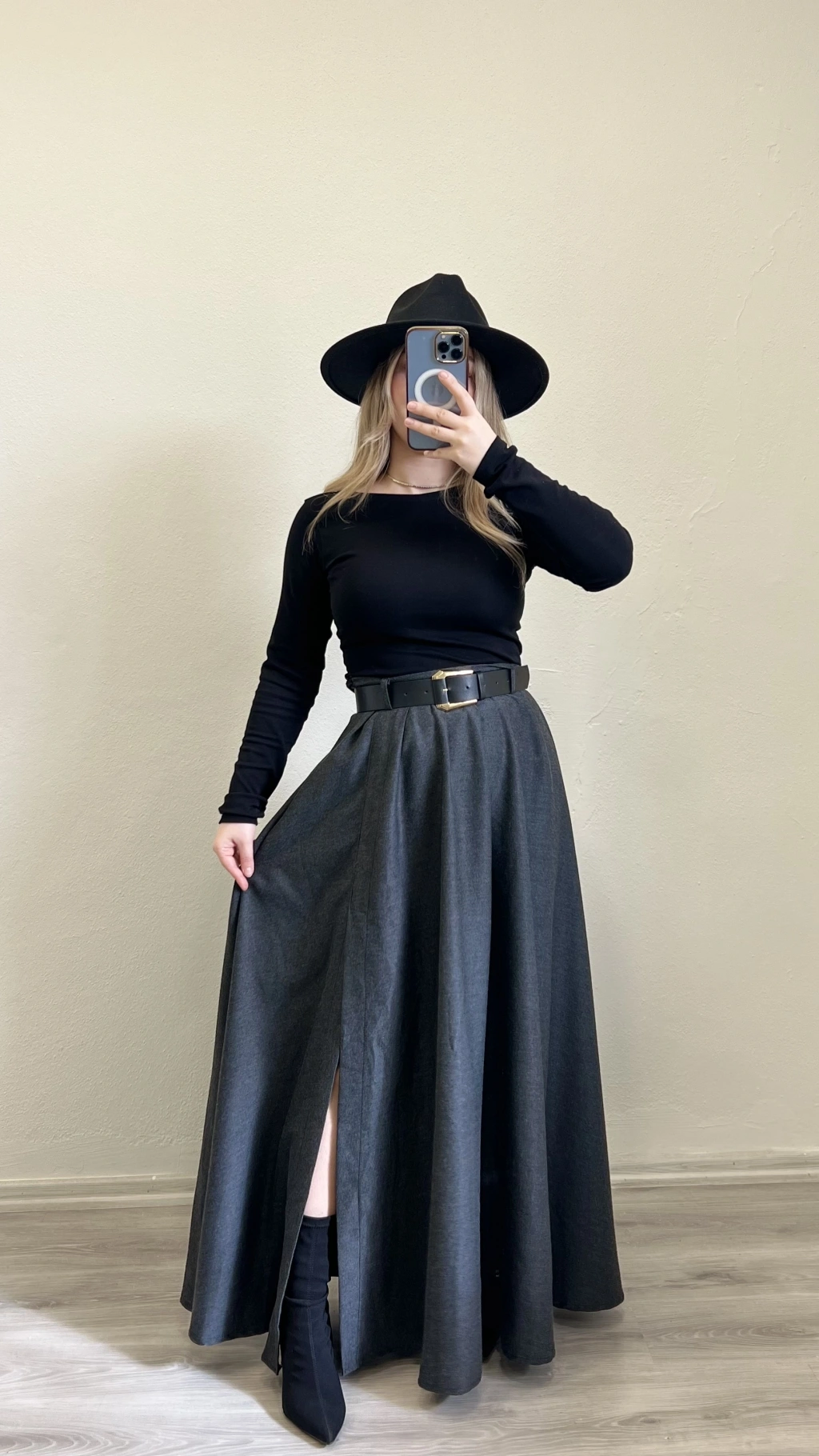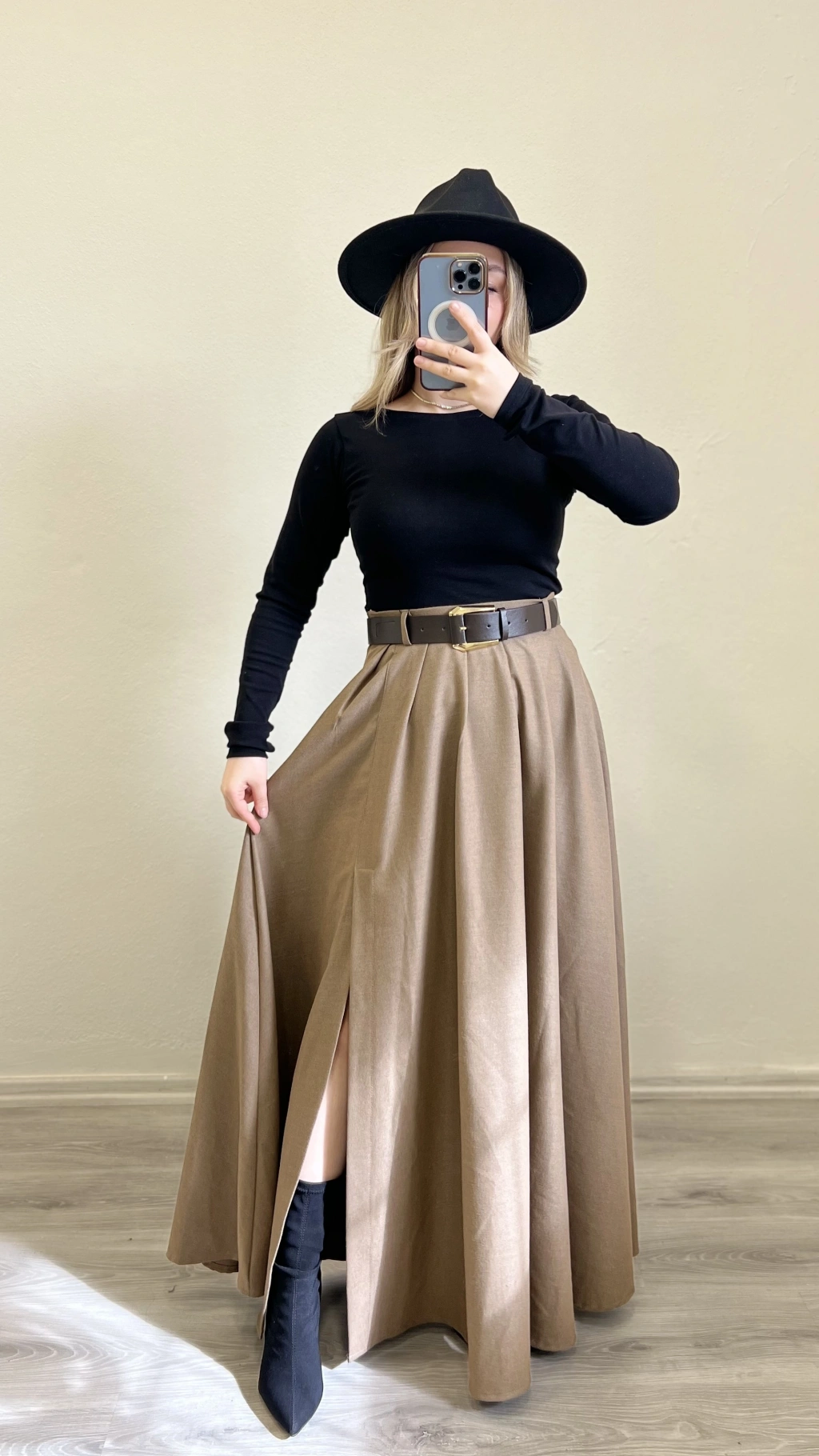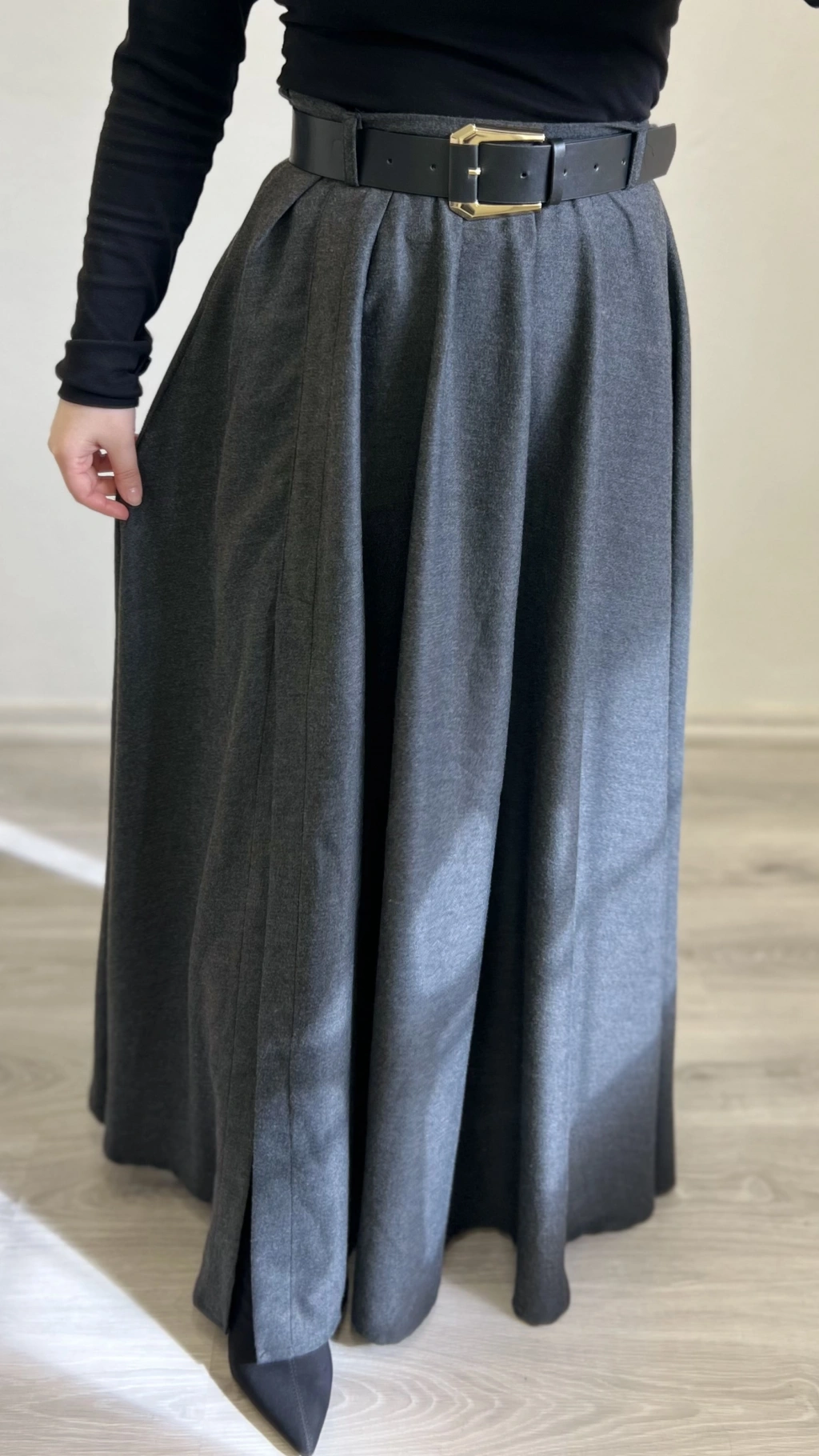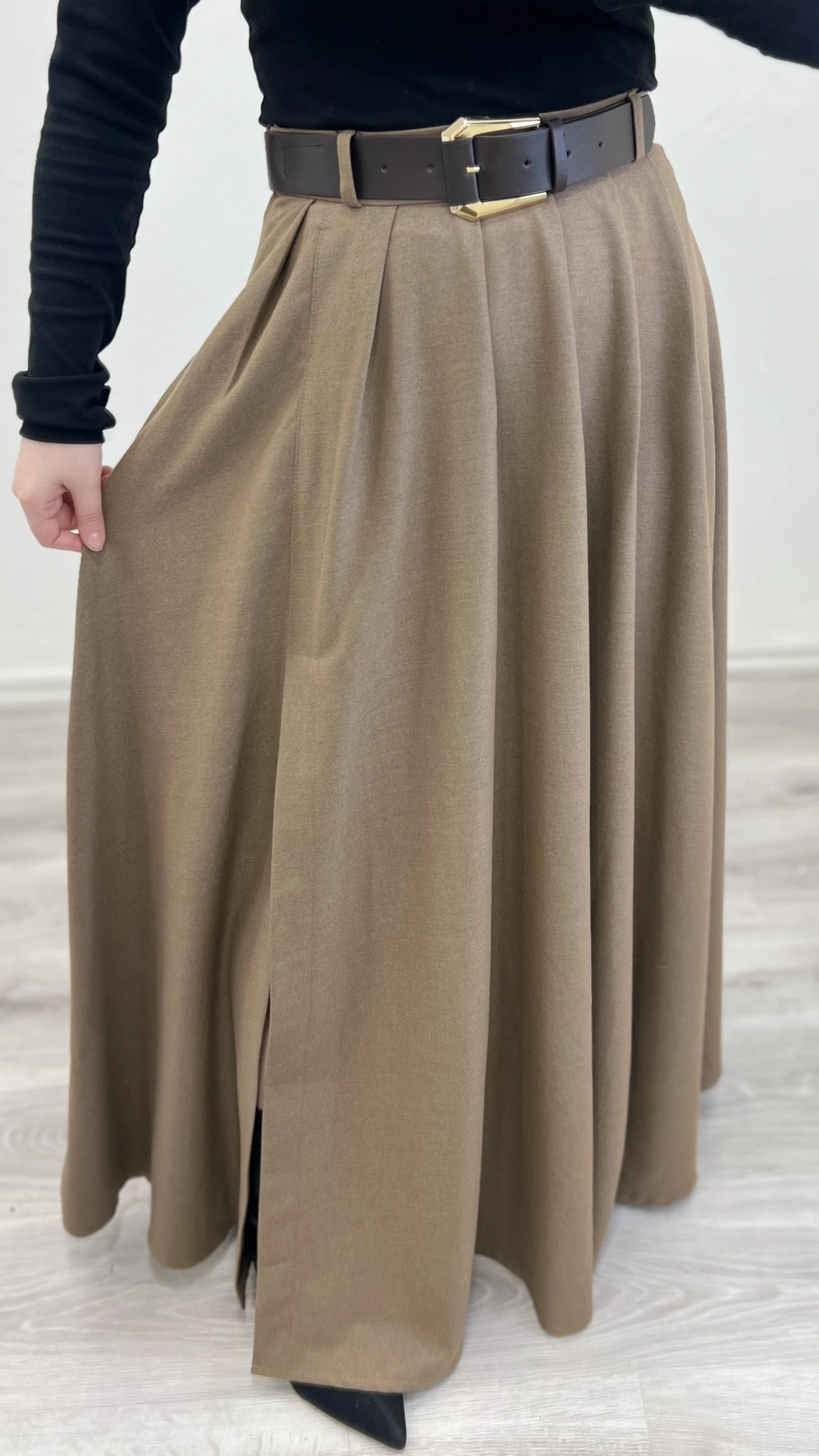 KEMERLİ YIRTMAÇ DETAYLI UZUN ETEK