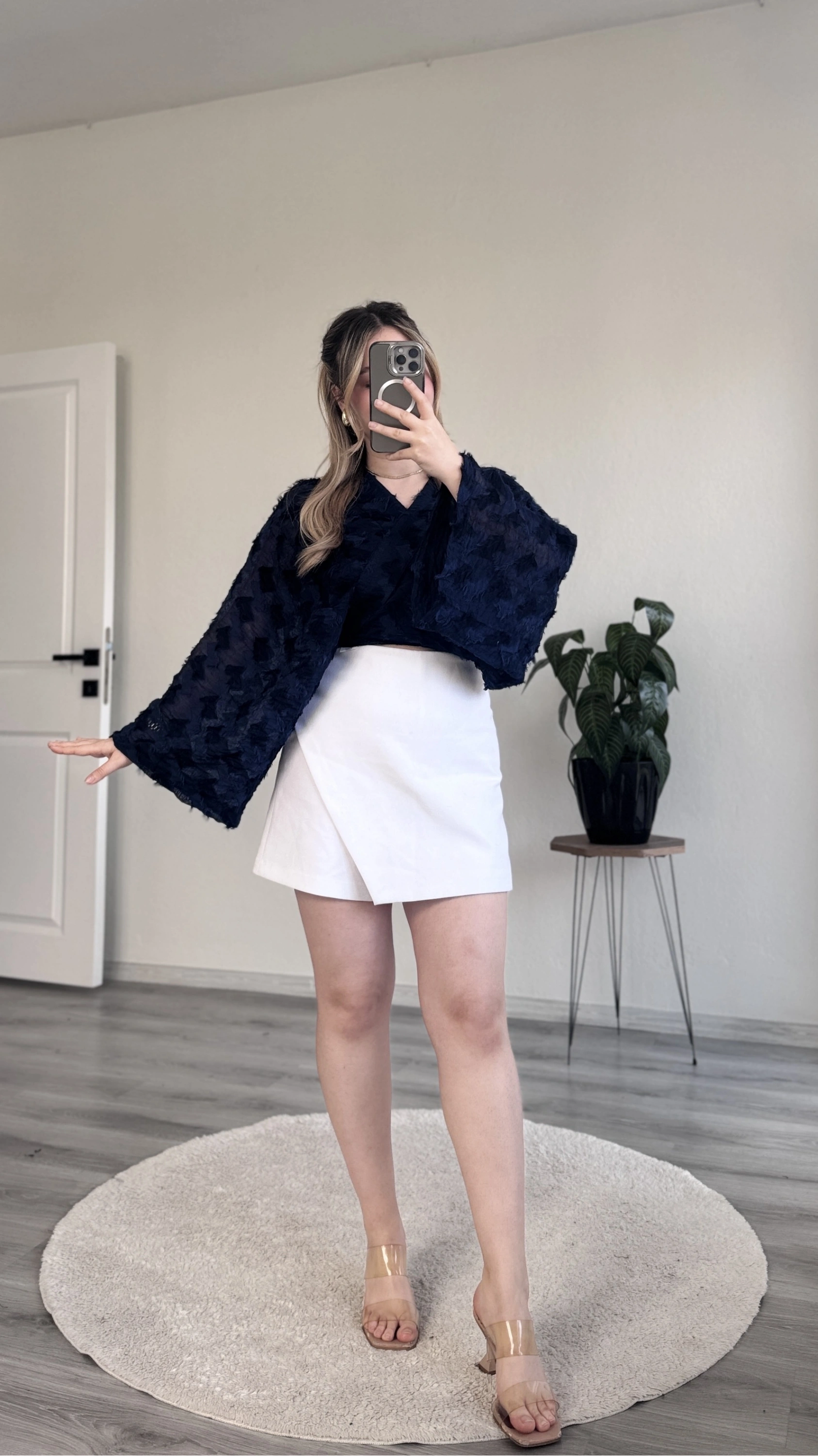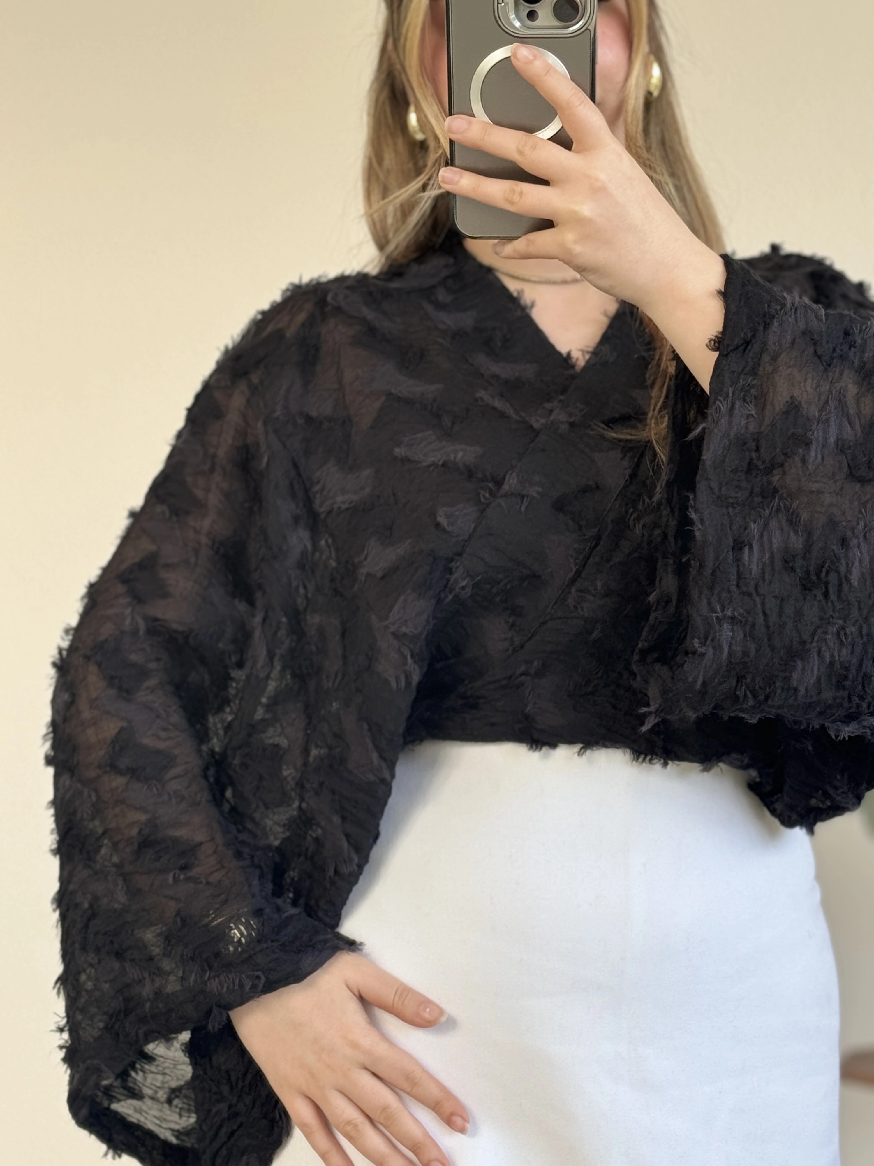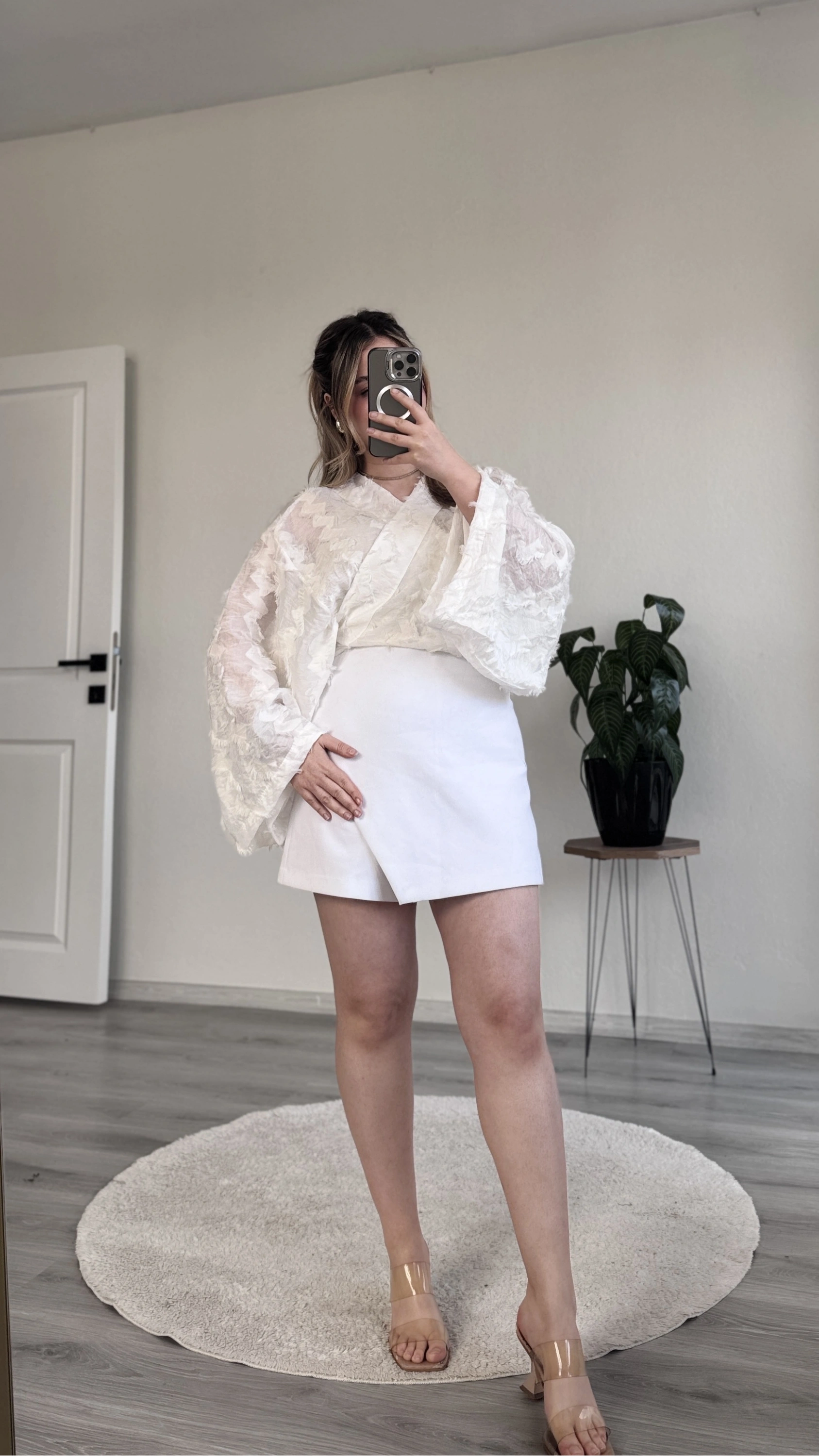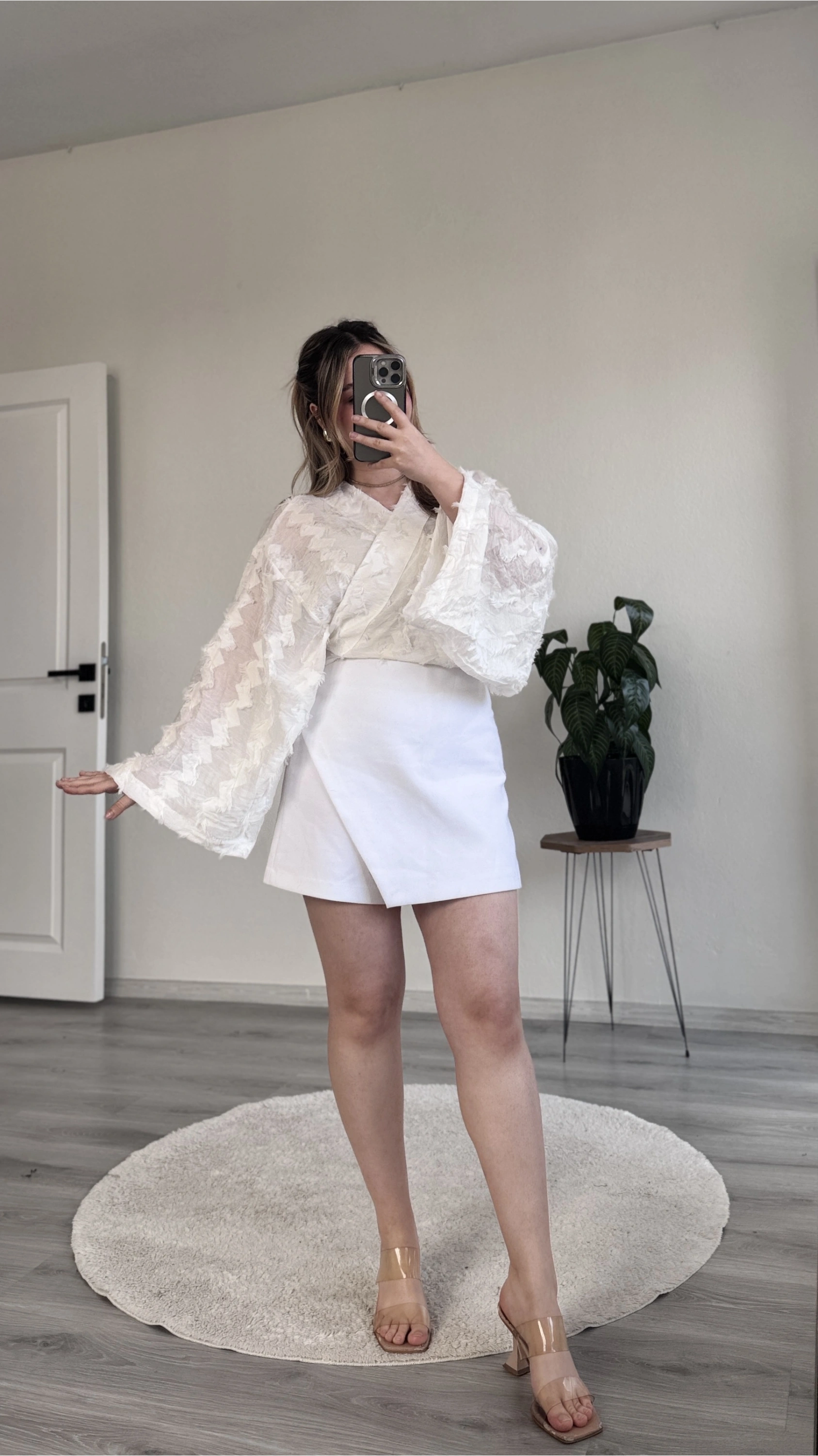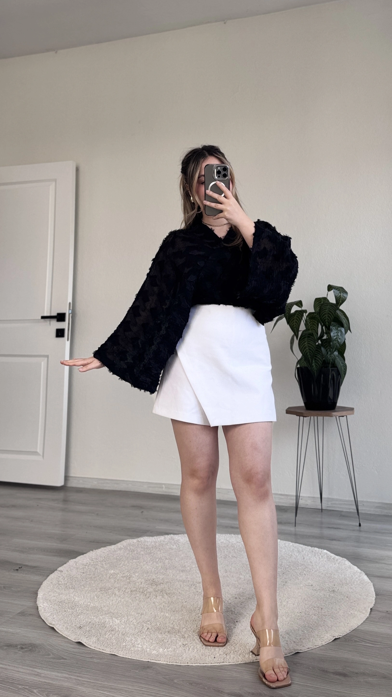 PUANTİYELİ OMUZDAN BAĞLAMALI BLUZ