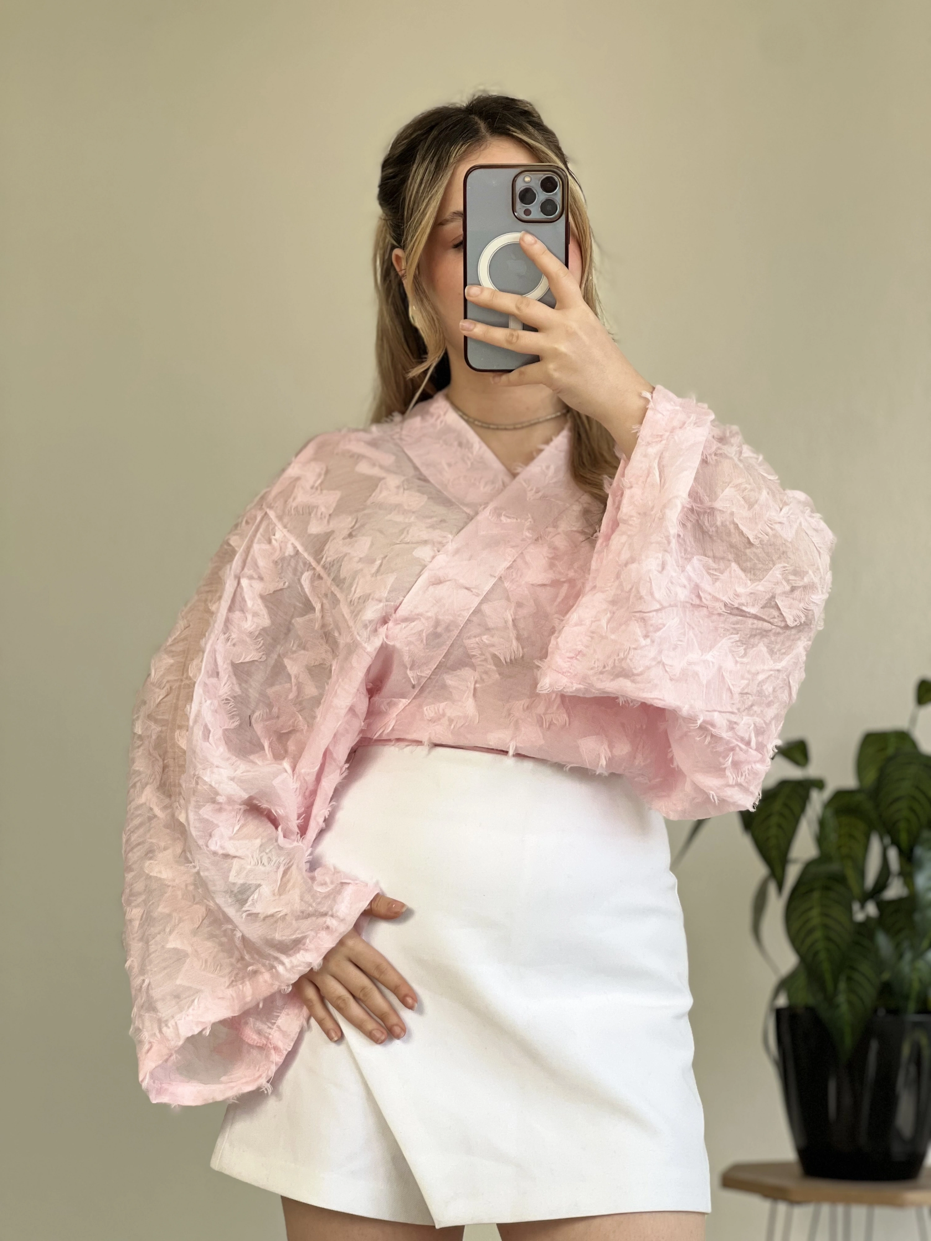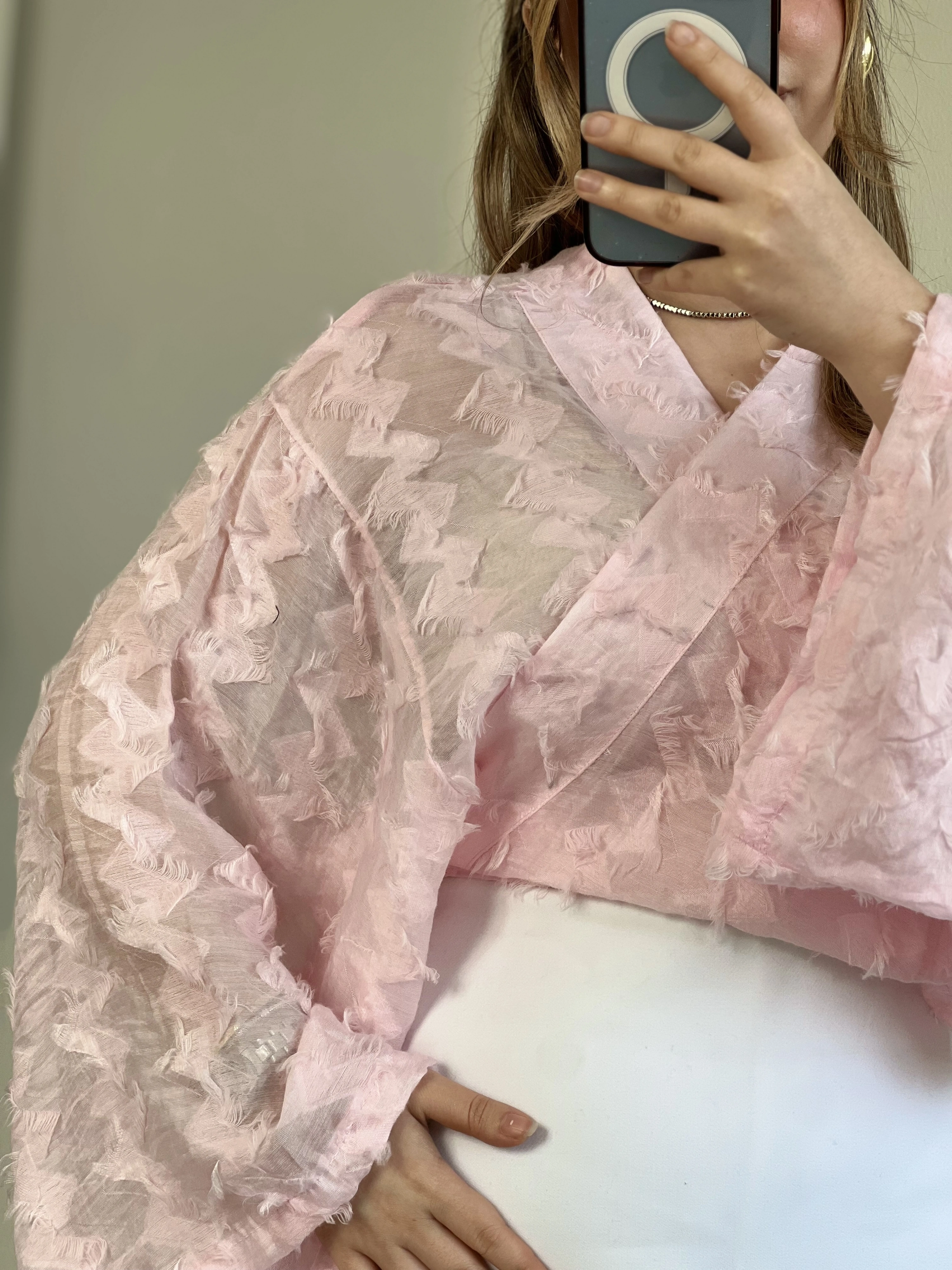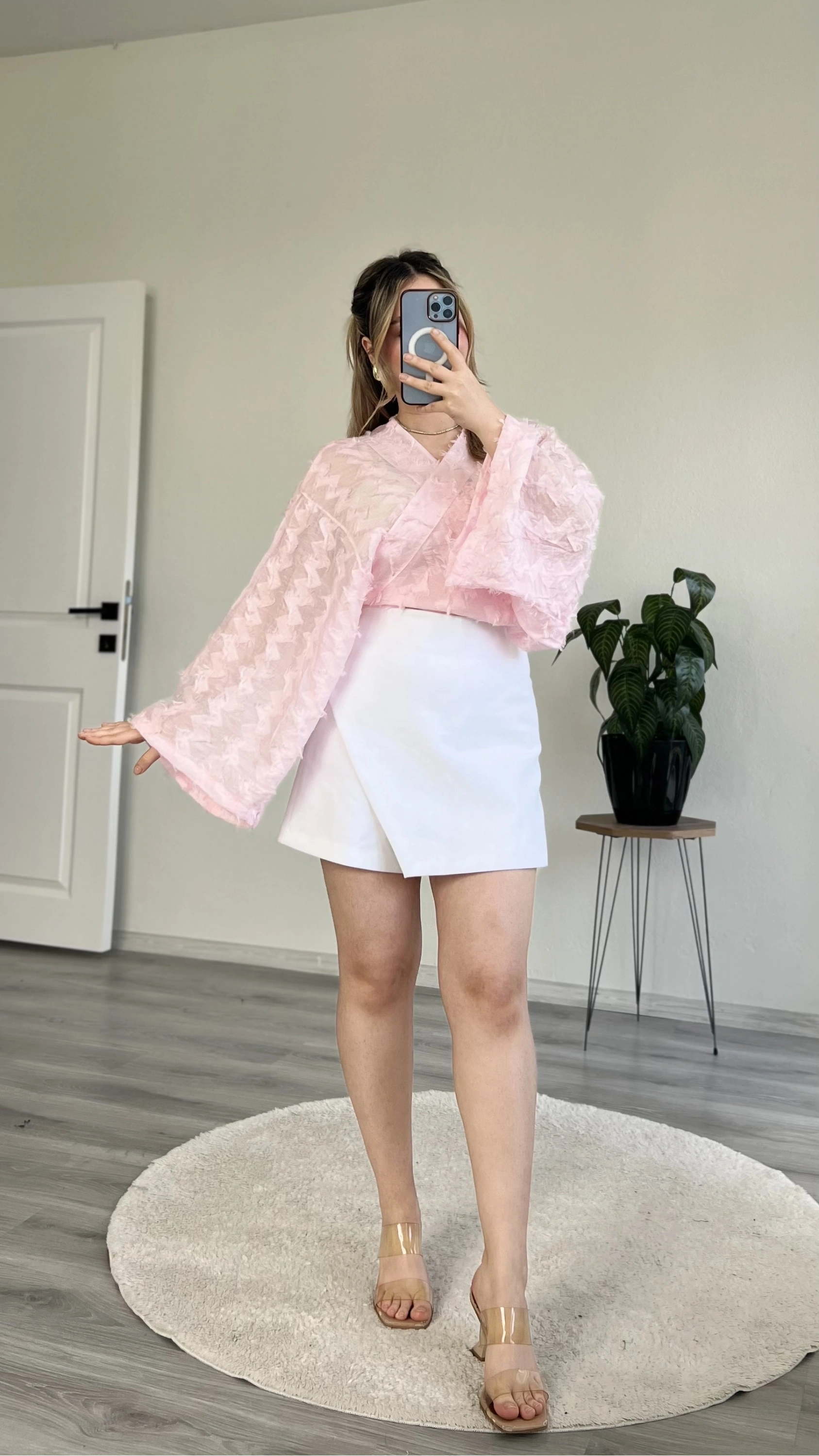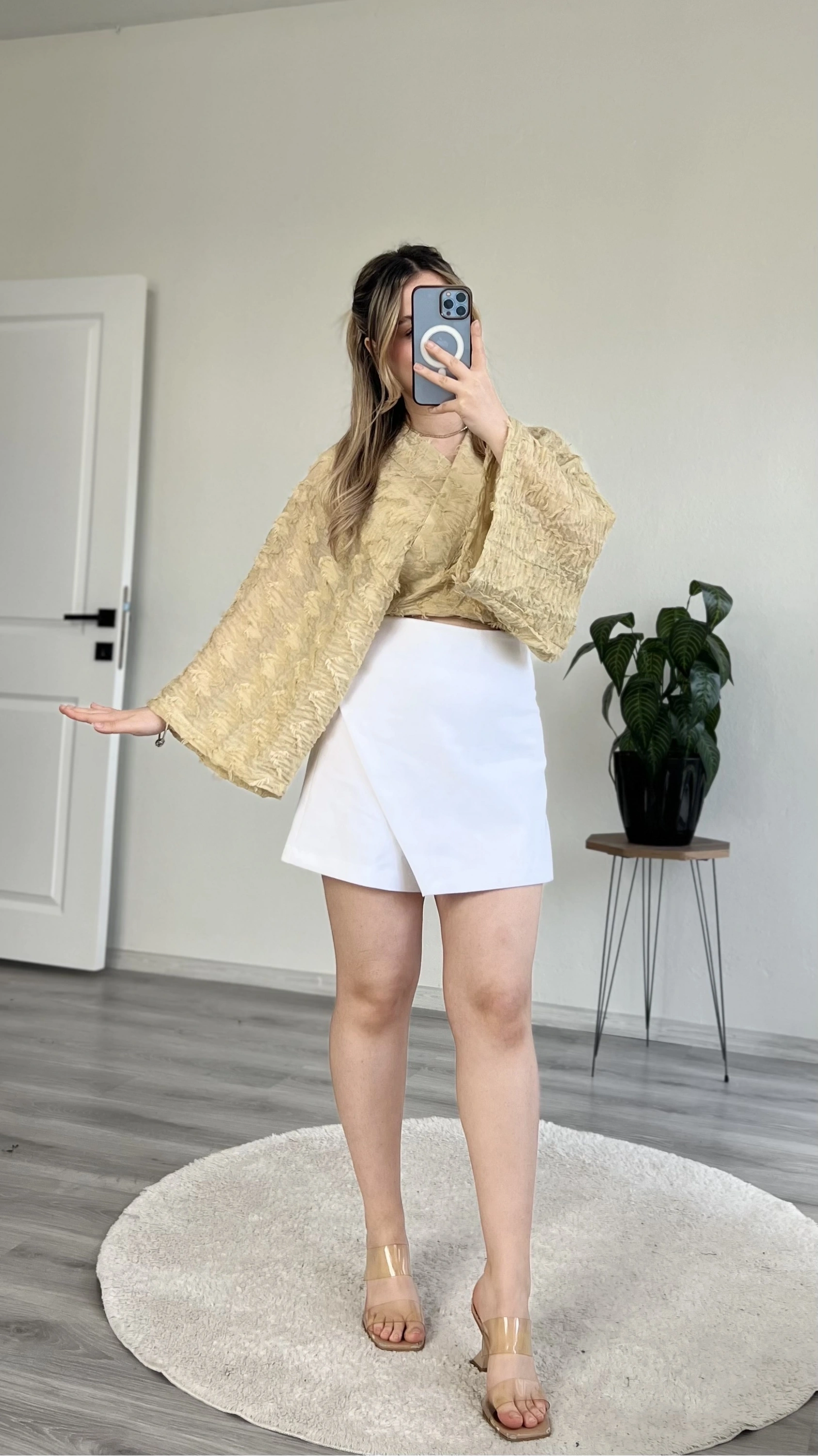 BELDEN BAĞLAMALI KUMAŞI KENDİNDEN DESENLİ KİMONO