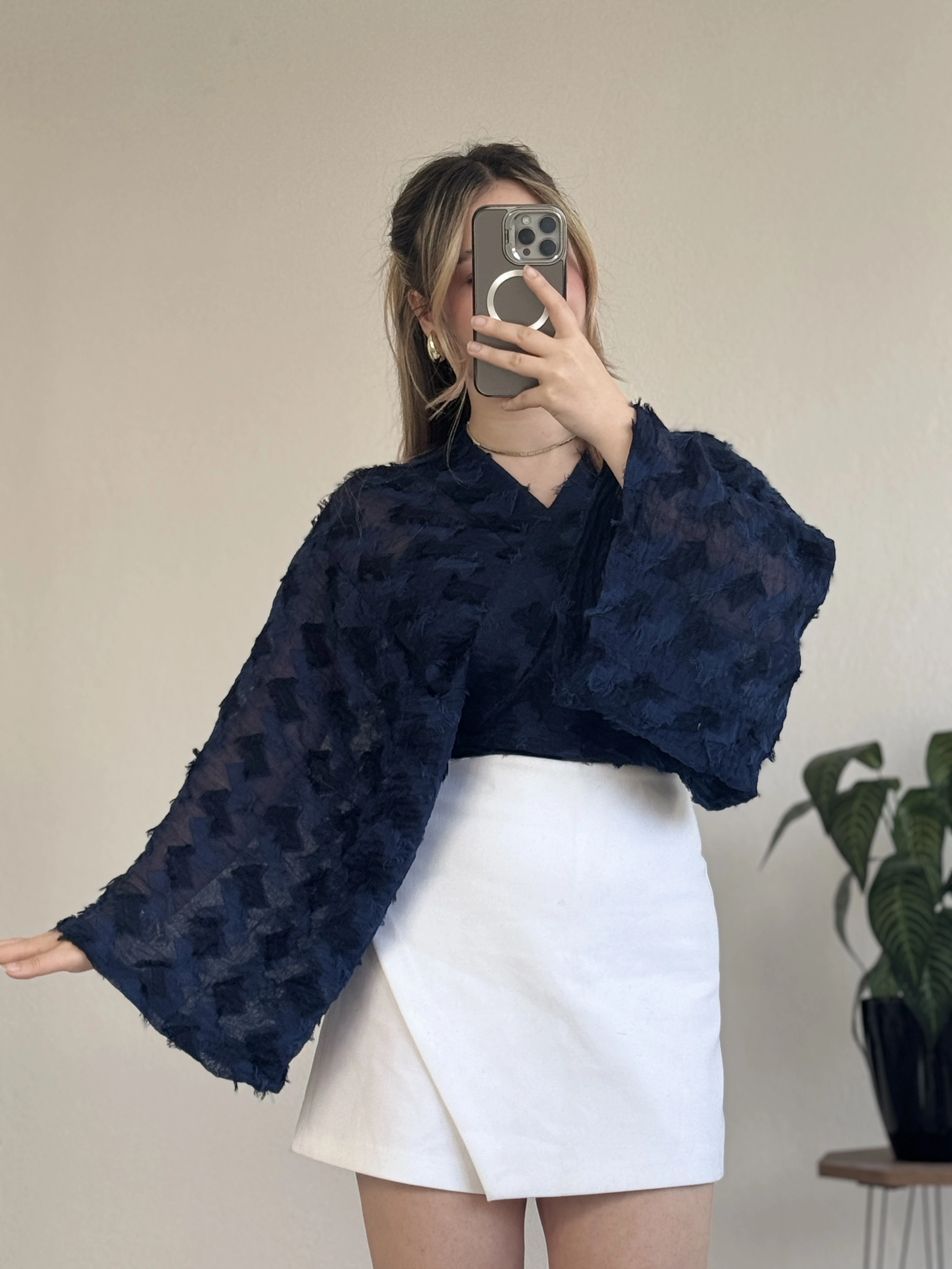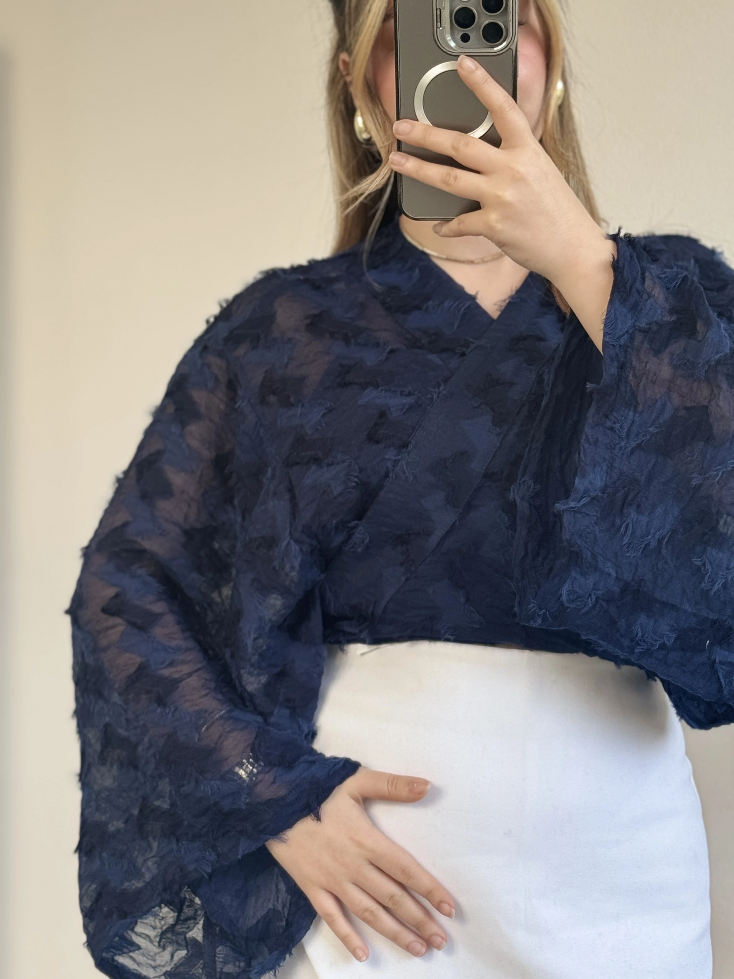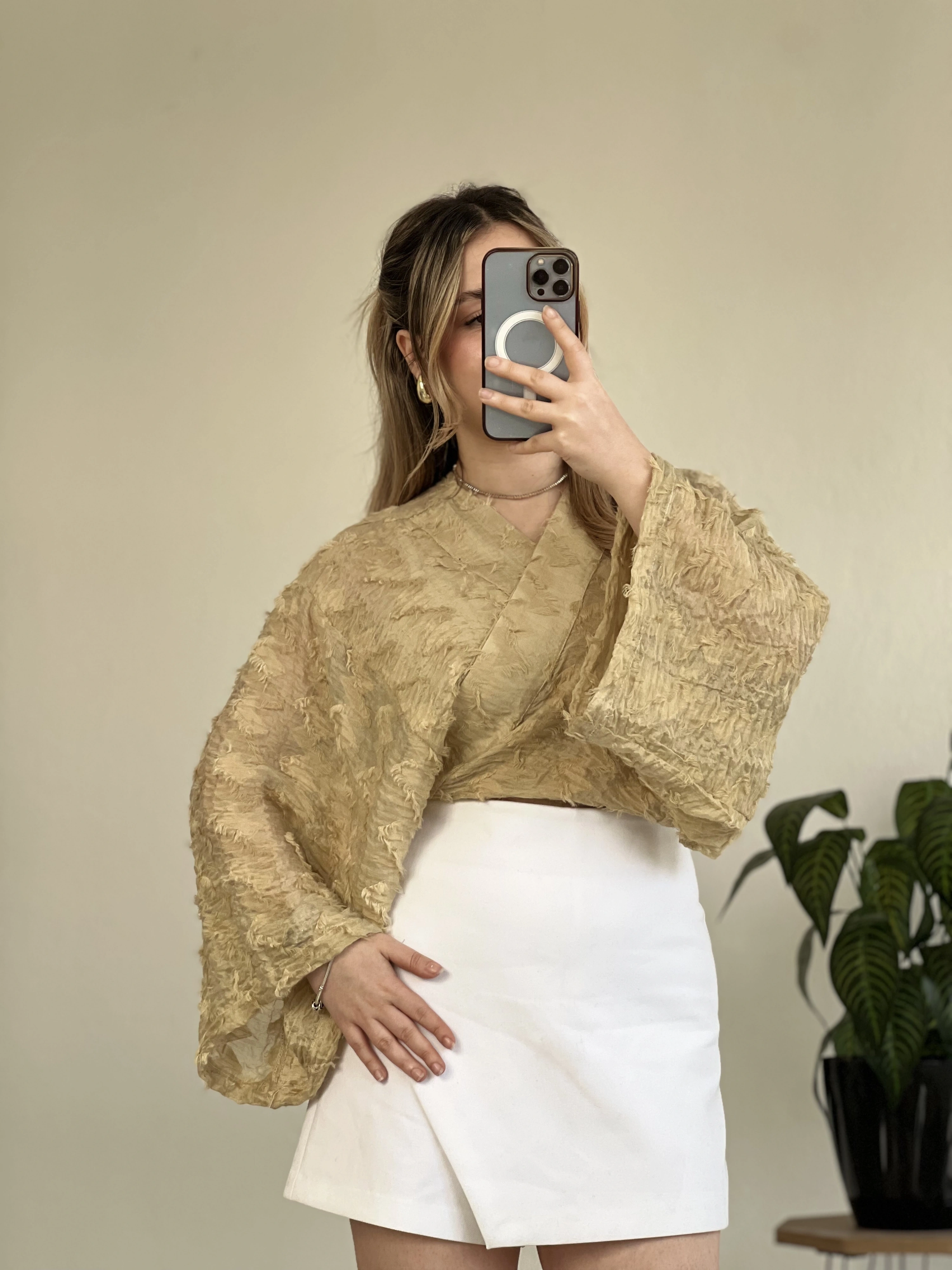 BELDEN BAĞLAMALI KUMAŞI KENDİNDEN DESENLİ KİMONO