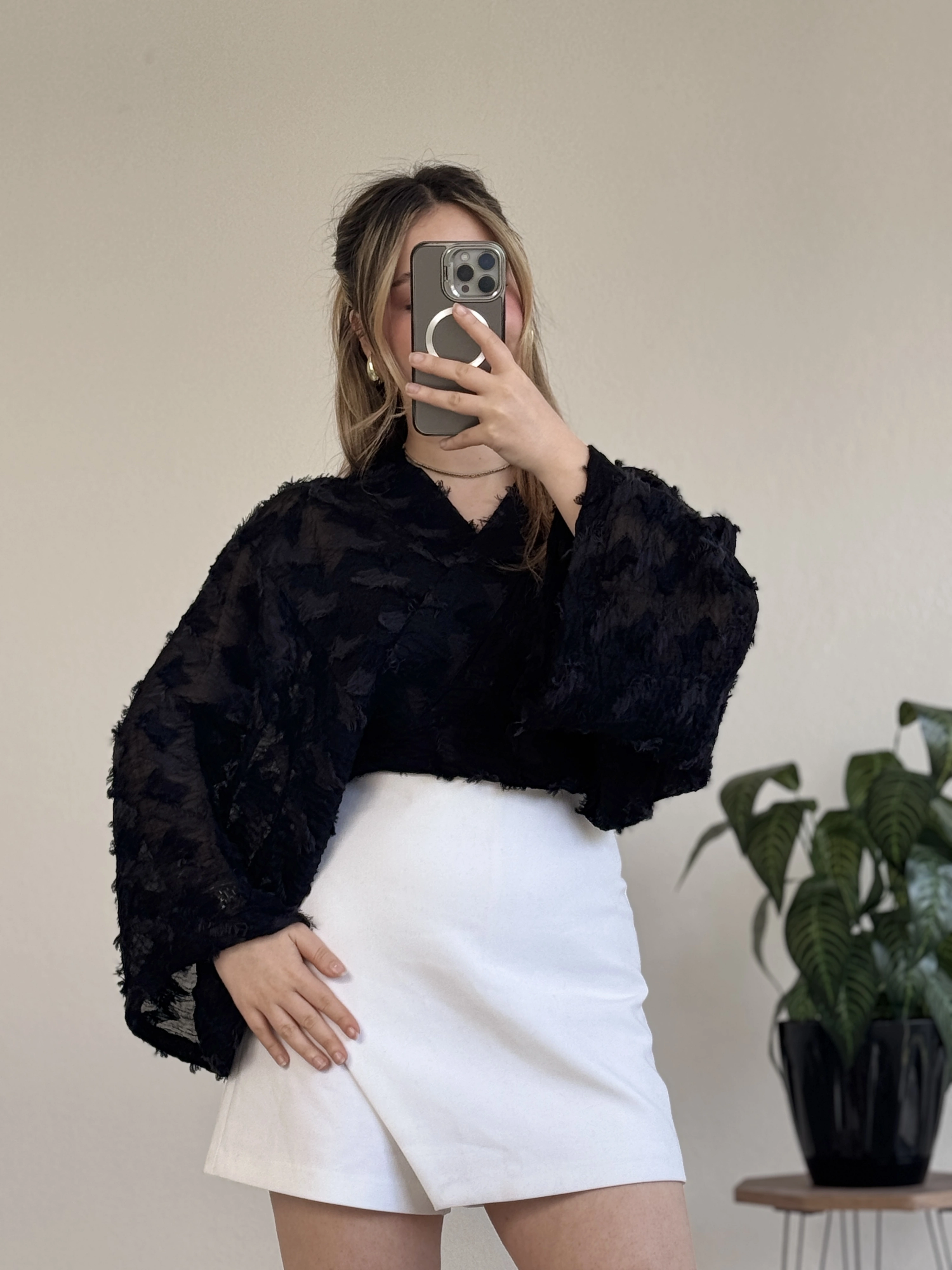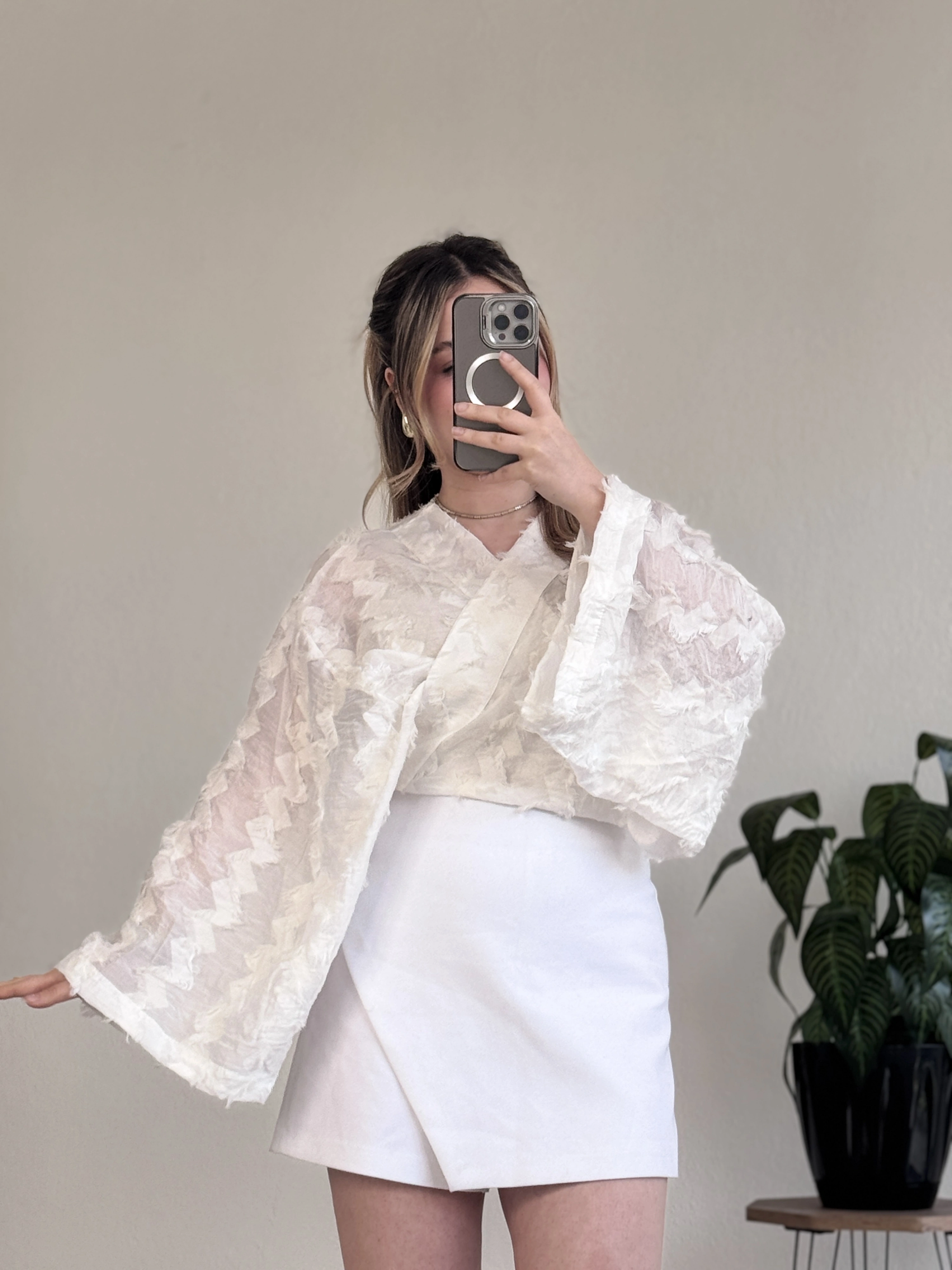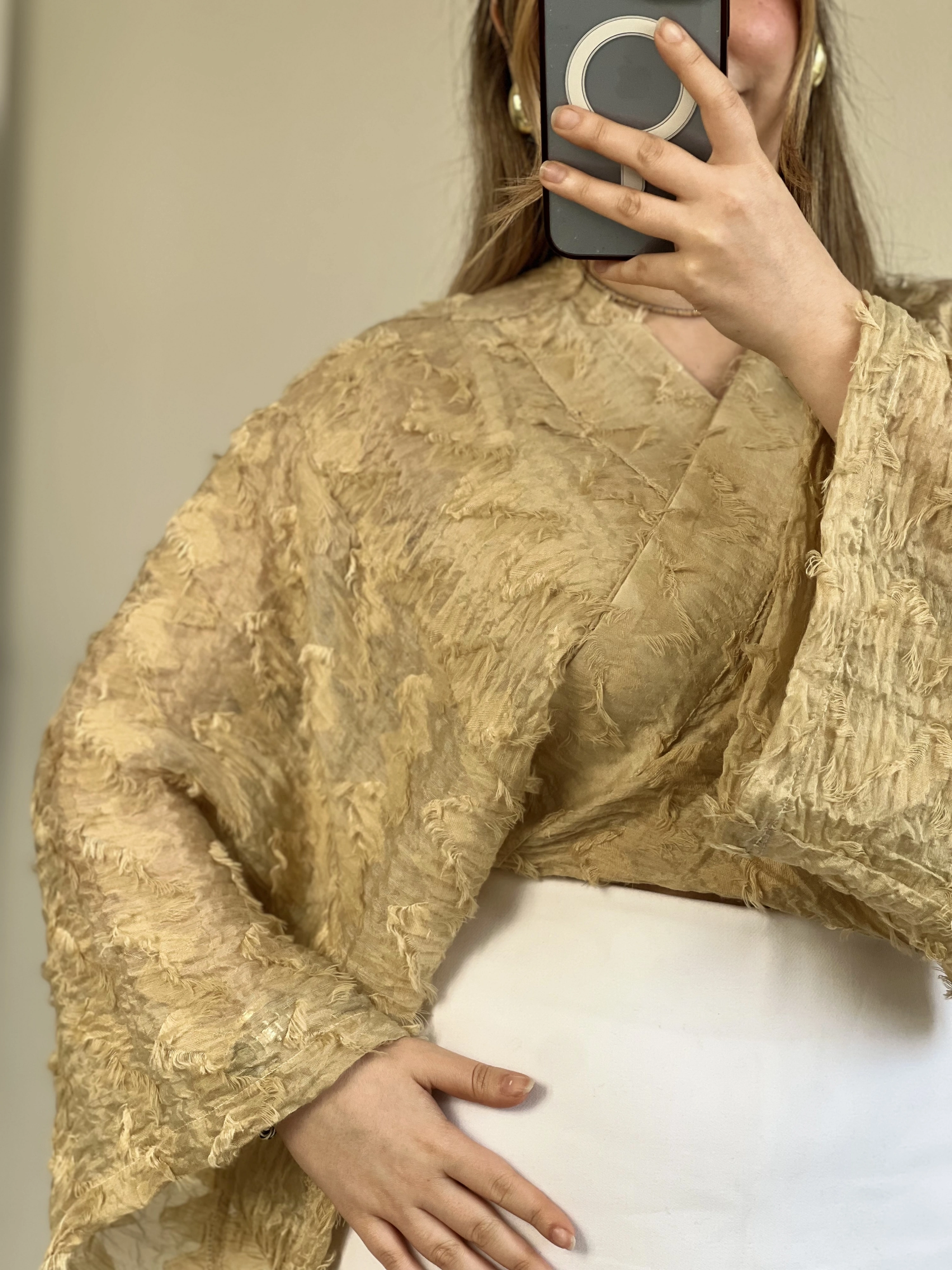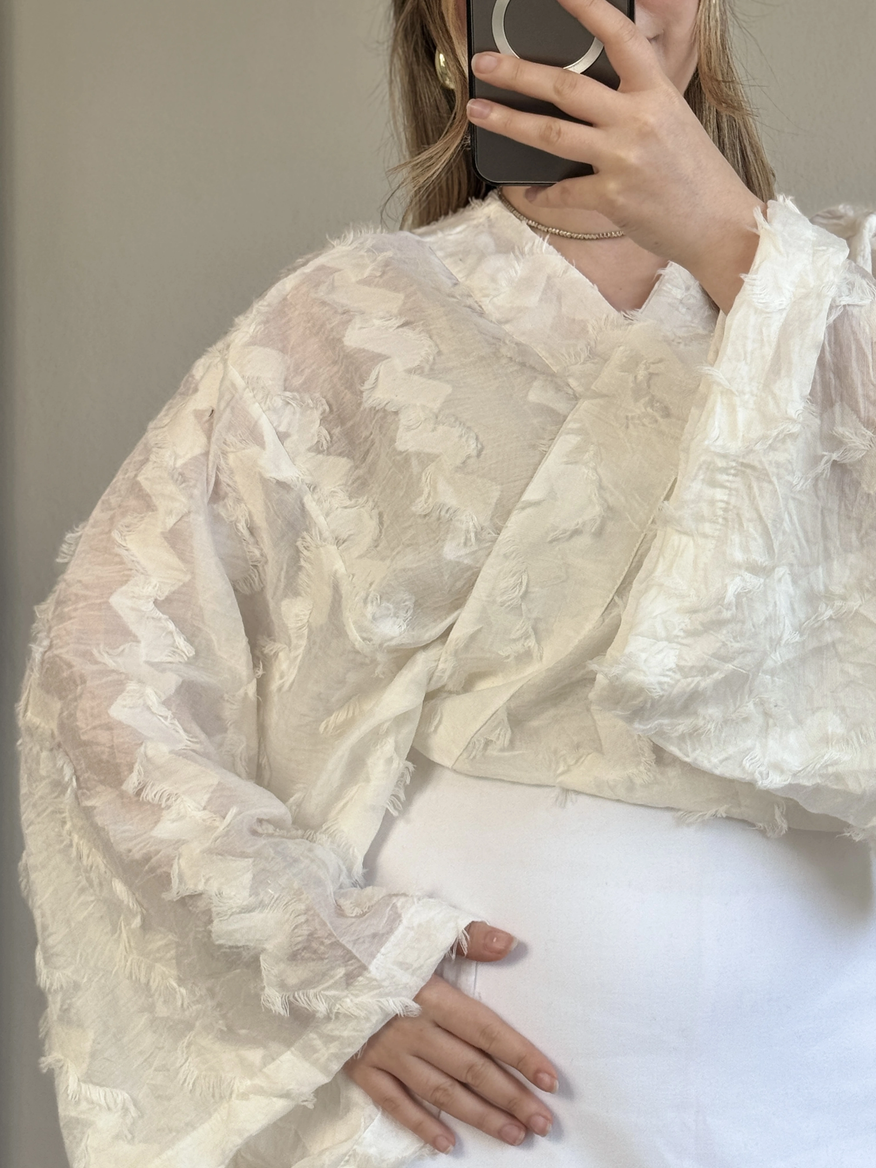 BELDEN BAĞLAMALI KUMAŞI KENDİNDEN DESENLİ KİMONO