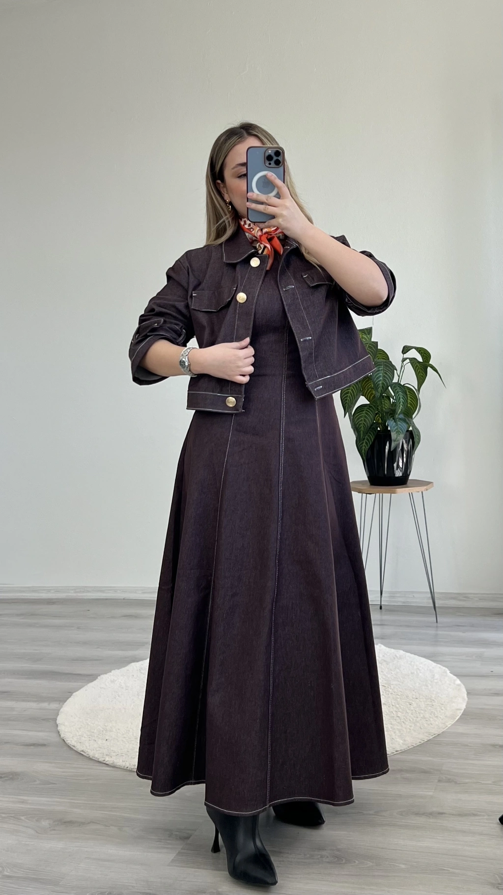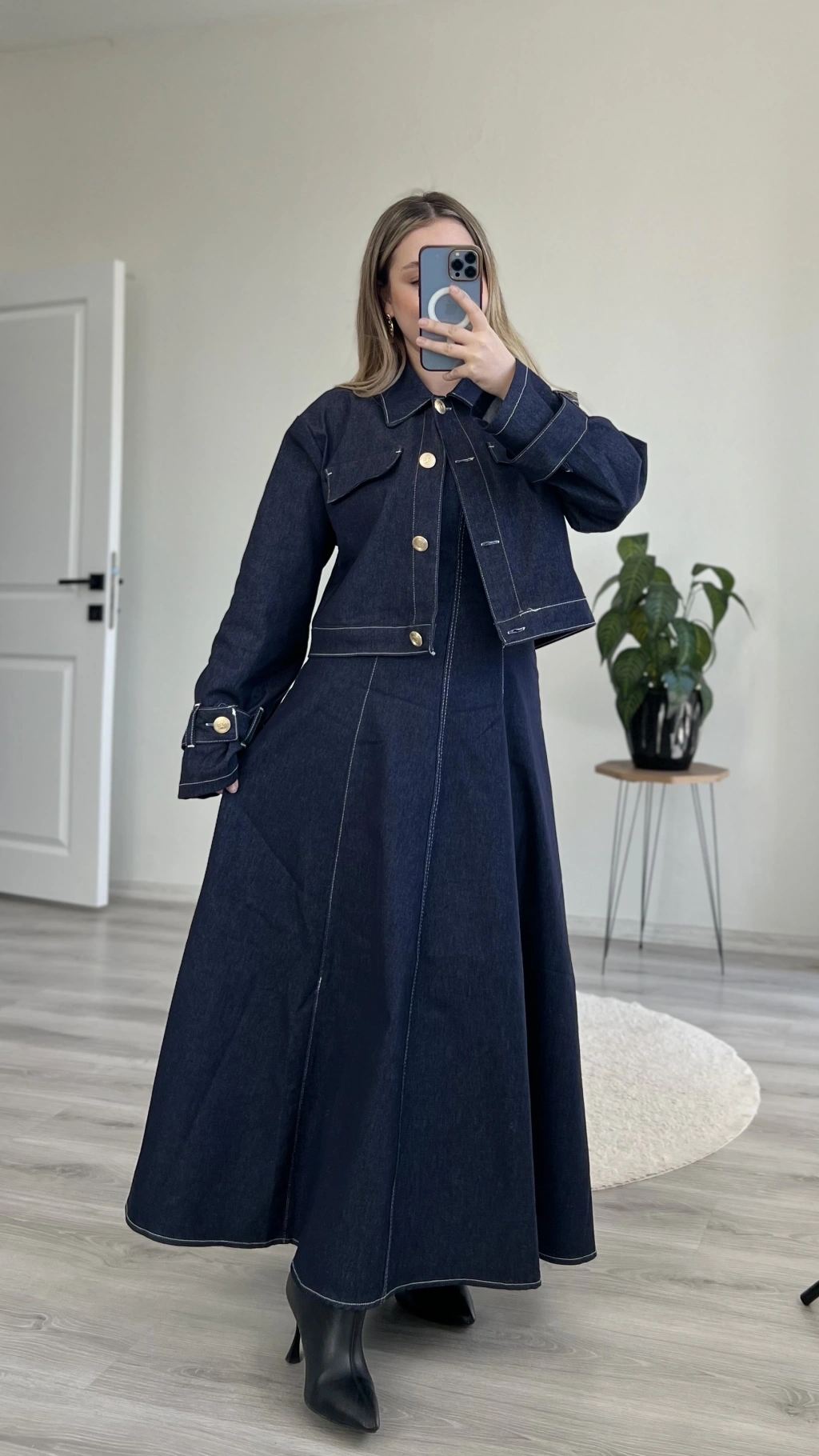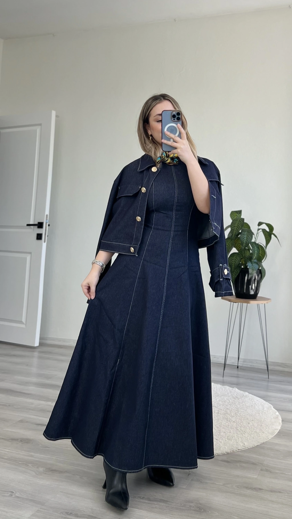 GOLD DÜĞME DETAYLI KOT ELBİSE-CEKET TAKIM
