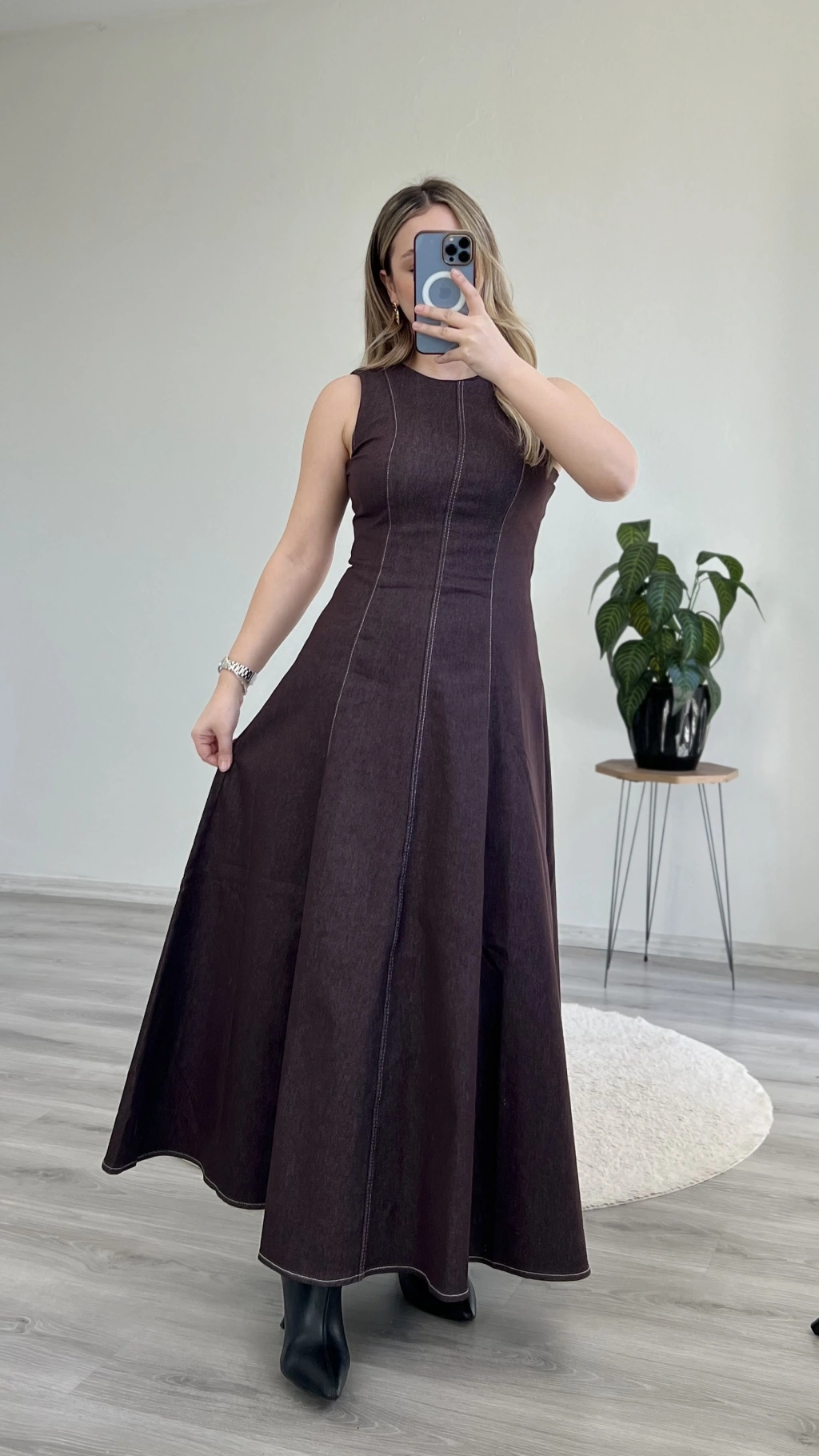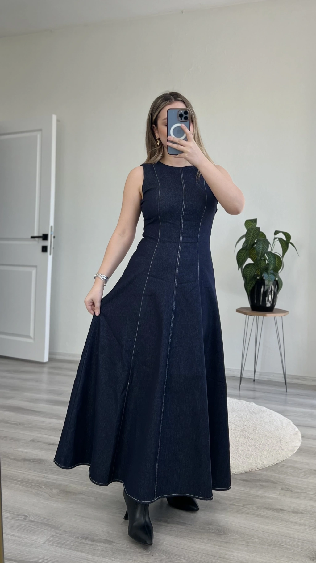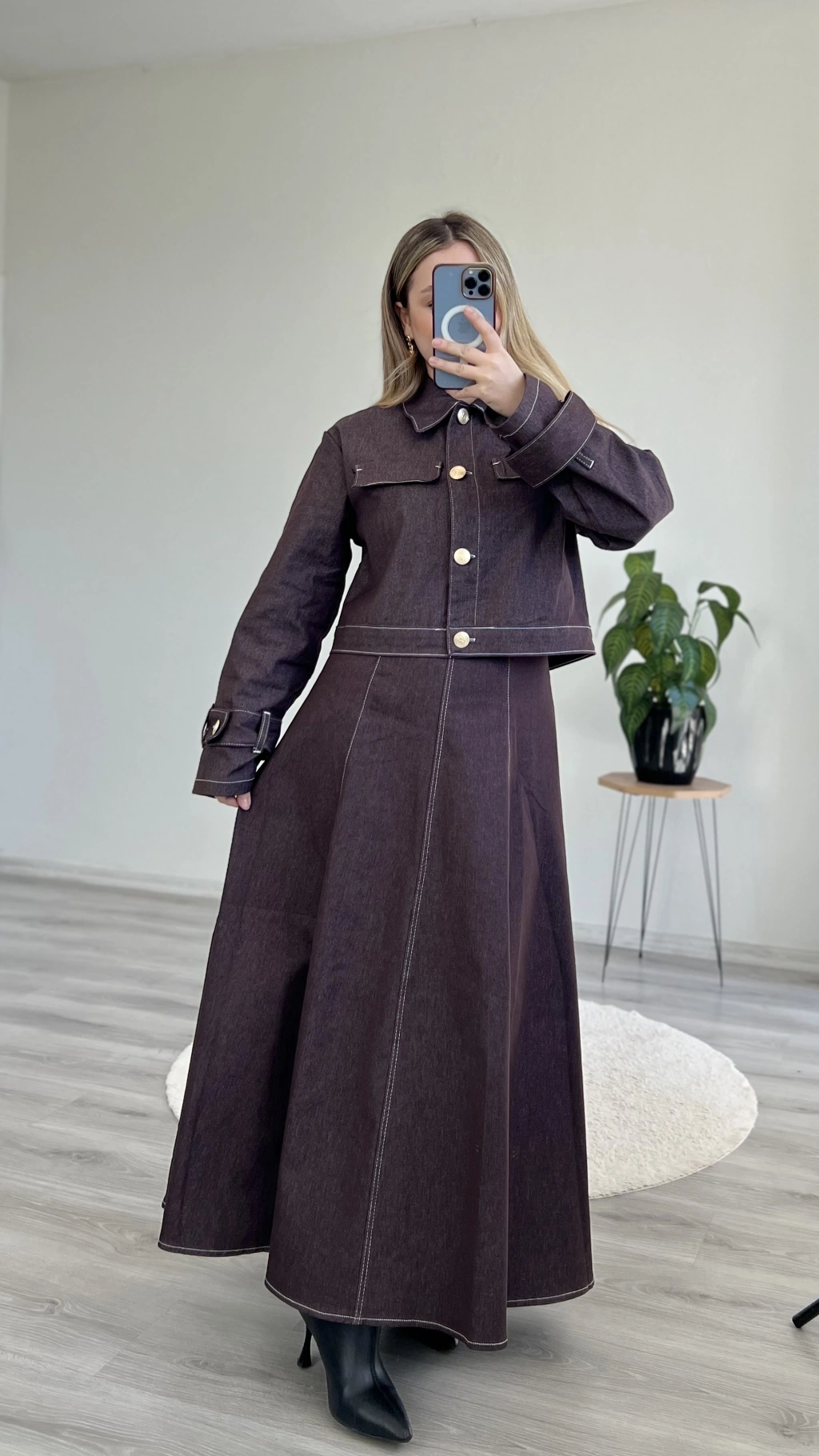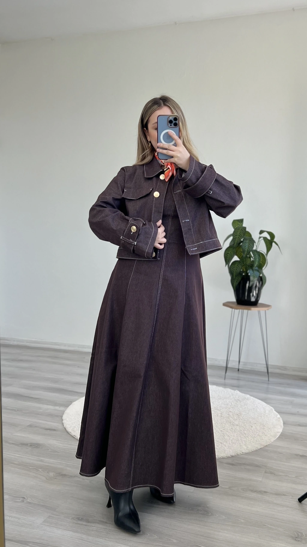 GOLD DÜĞME DETAYLI KOT ELBİSE-CEKET TAKIM