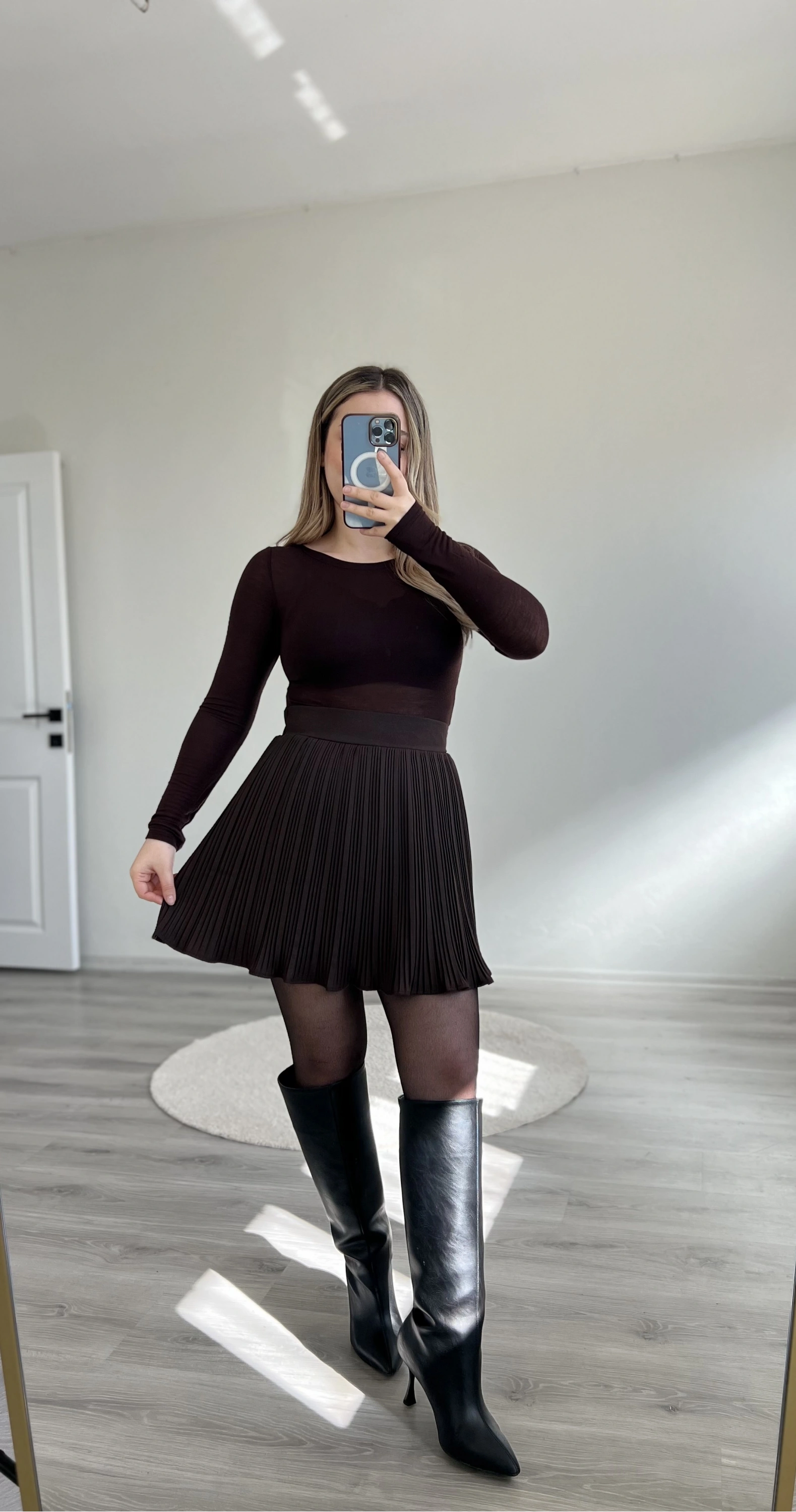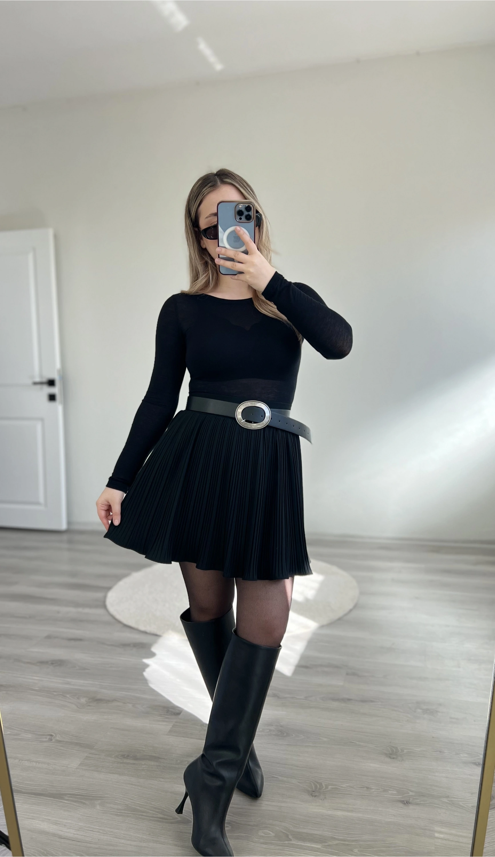 • PİLİSELİ İÇİ ŞORTLU ARKA BEL LASTİKLİ ETEK