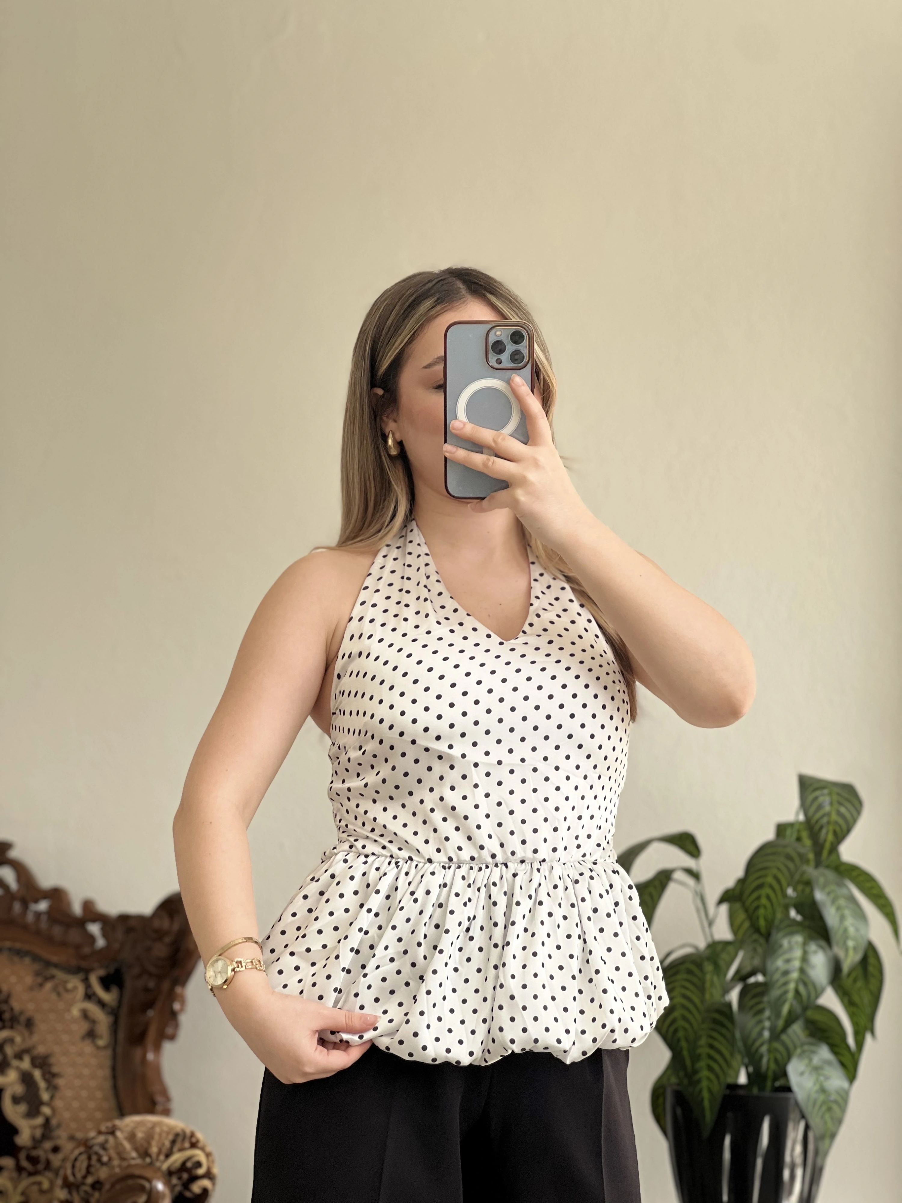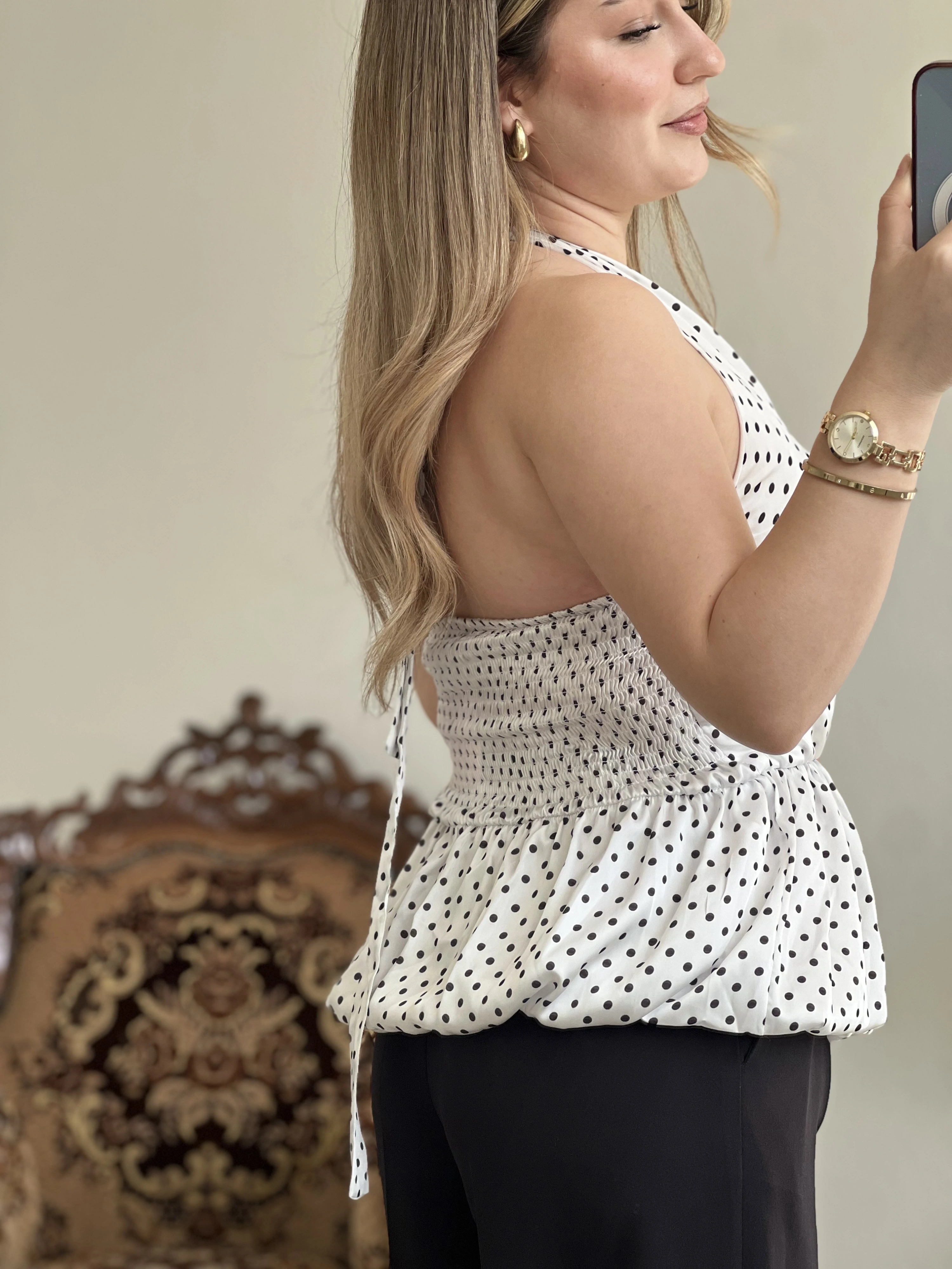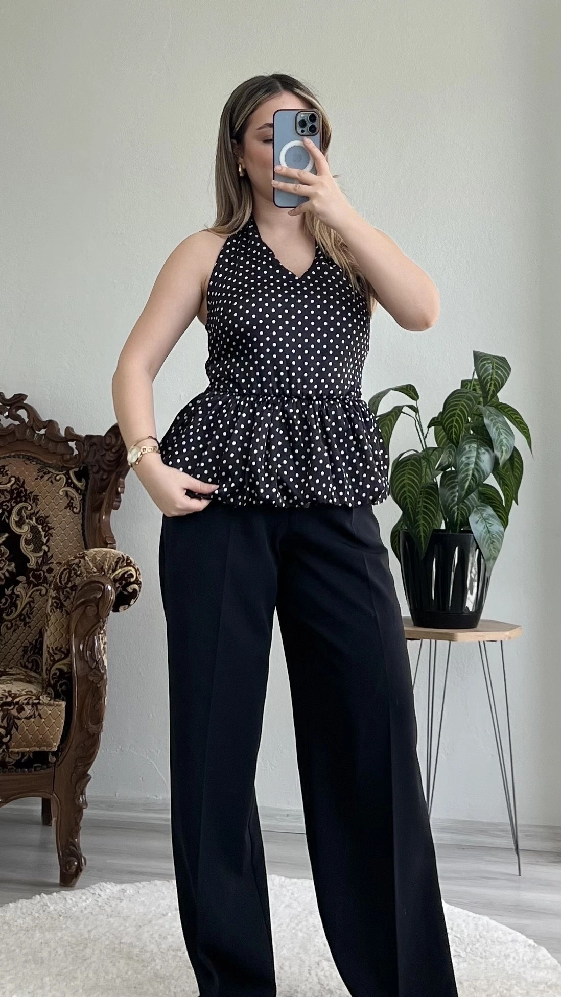 PUANTİYELİ OMUZDAN BAĞLAMALI BLUZ