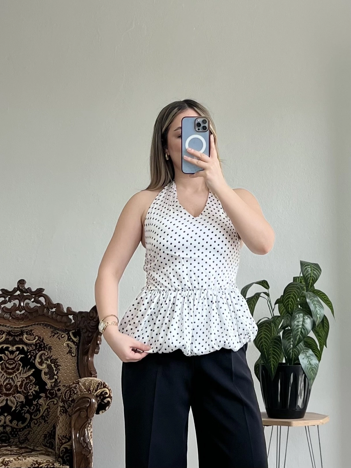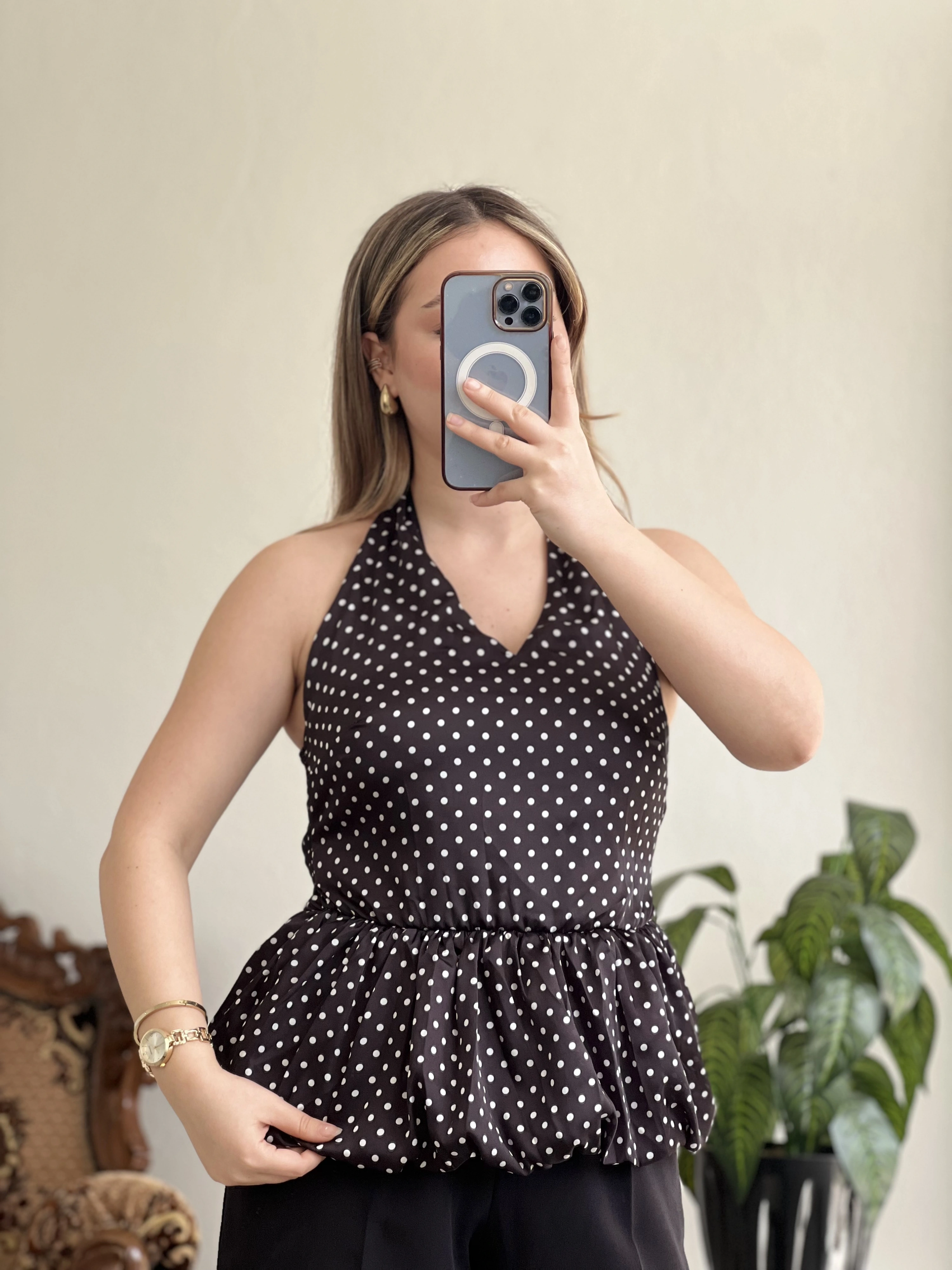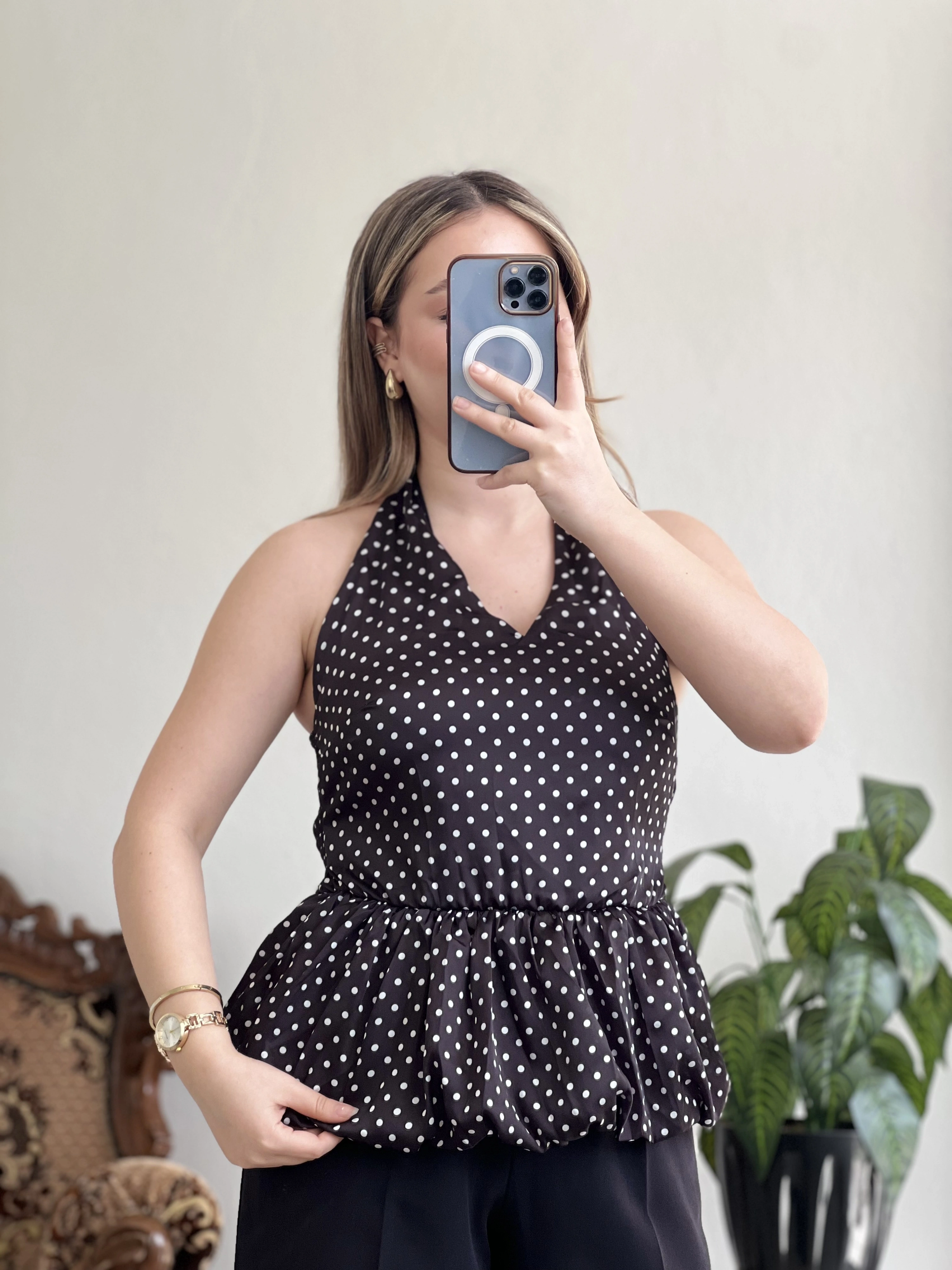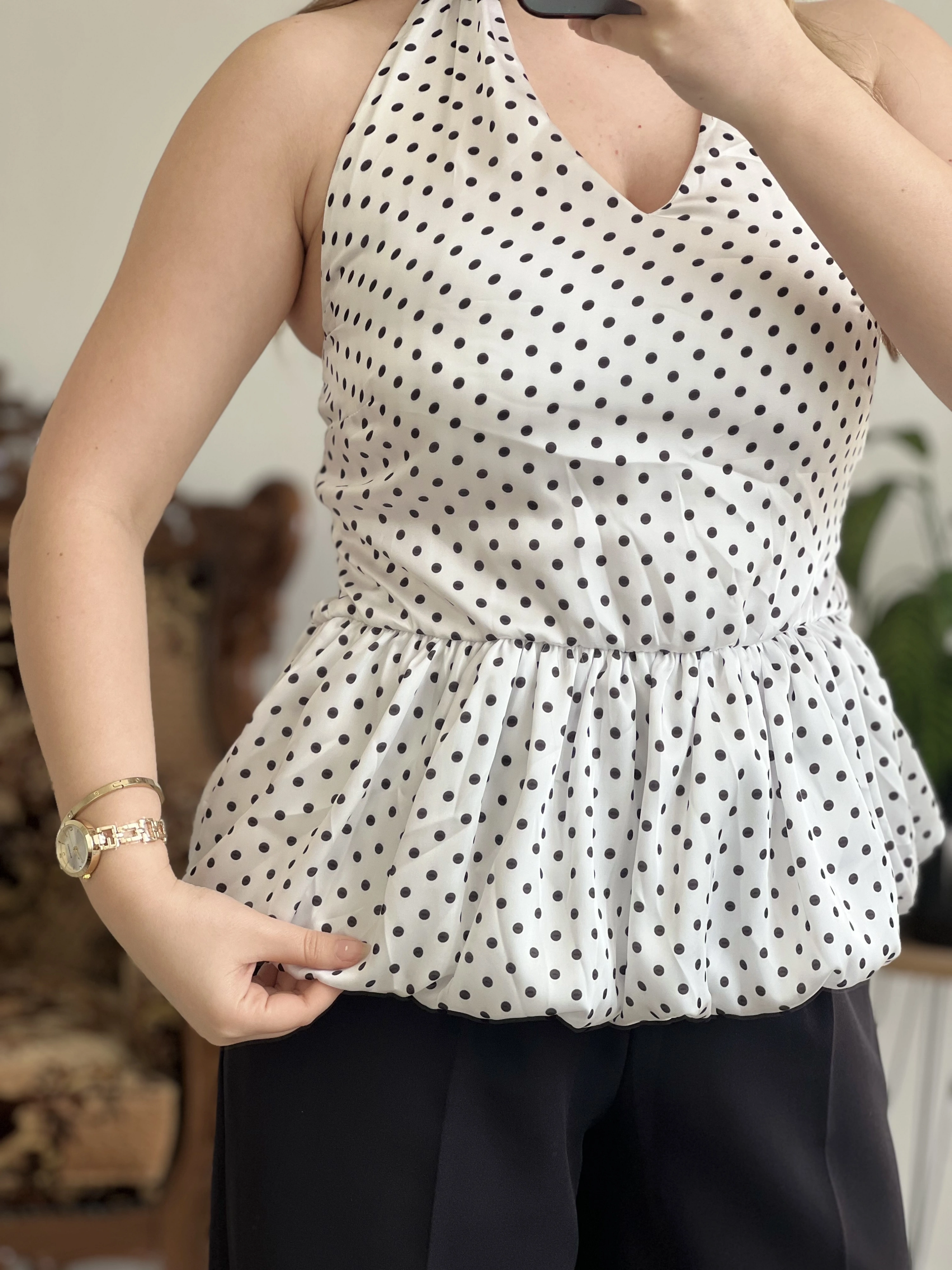 PUANTİYELİ OMUZDAN BAĞLAMALI BLUZ