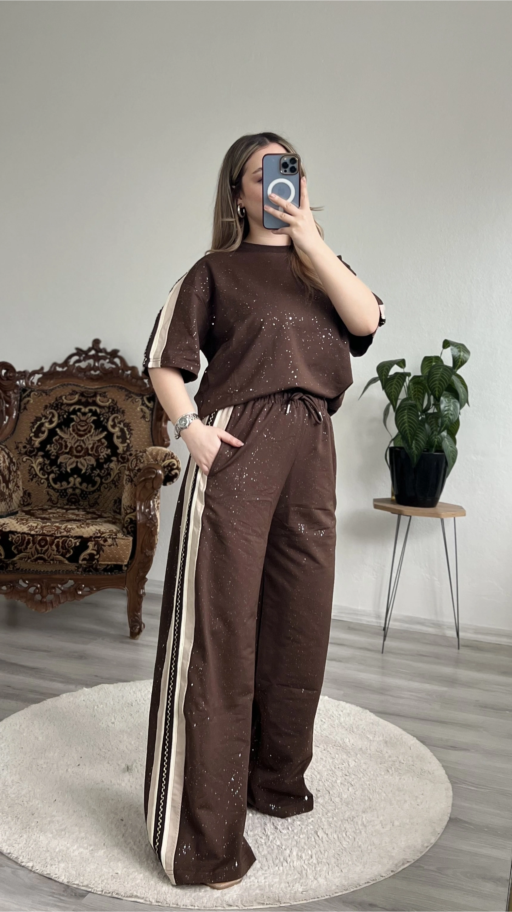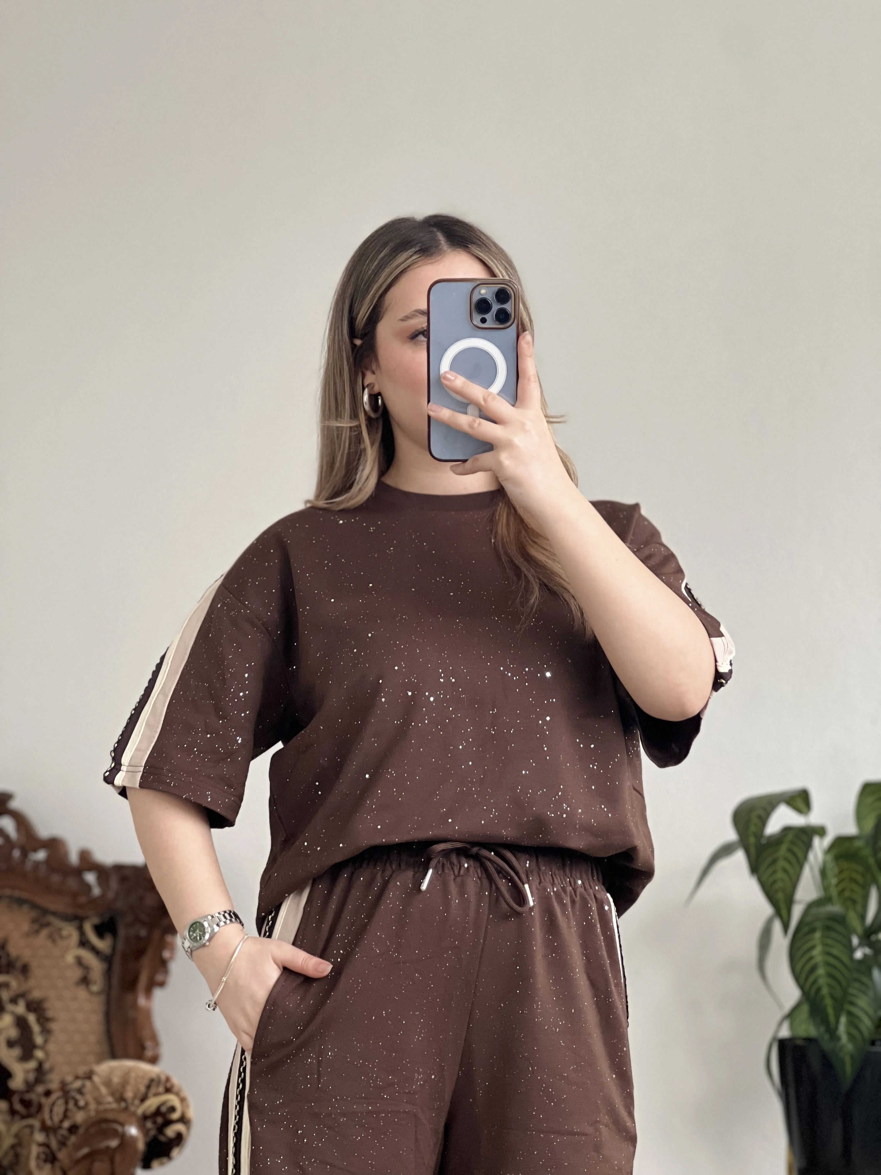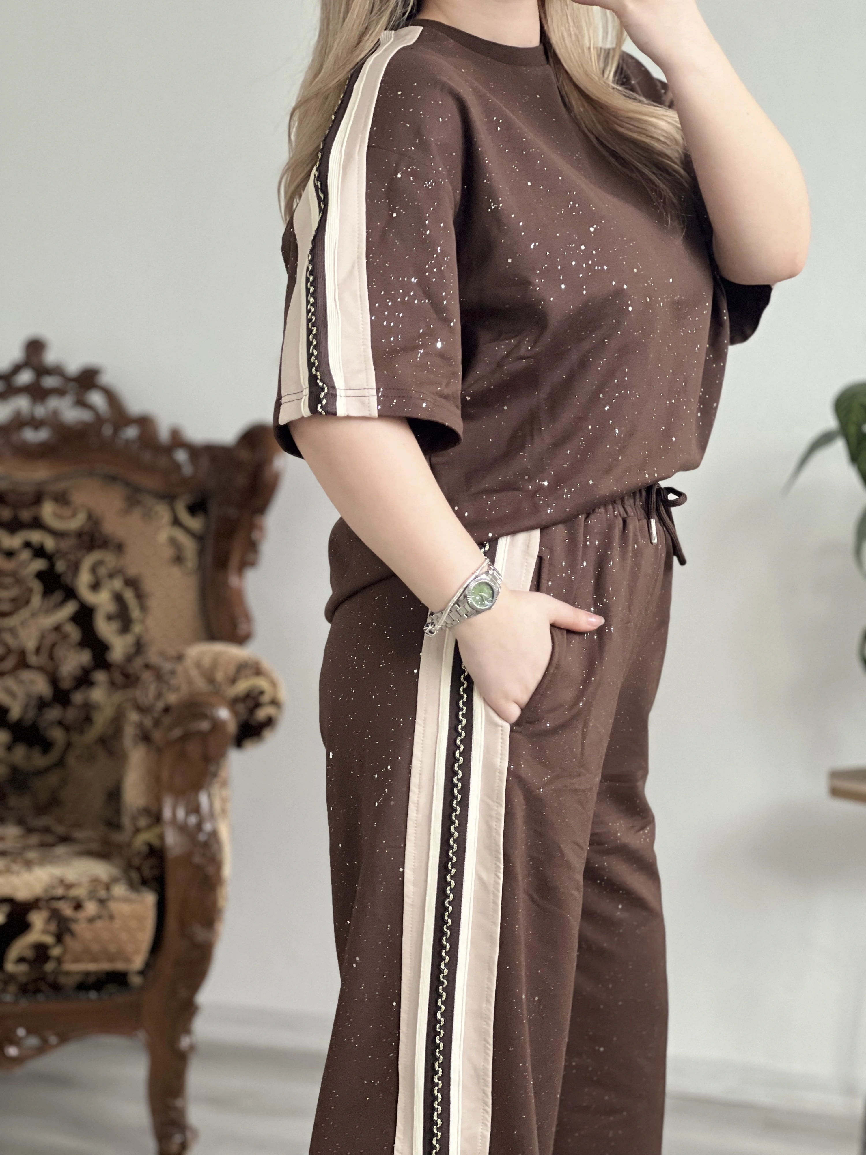 KAHVE ŞERİT DETAYLI TAKIM – RAHAT & ŞIK