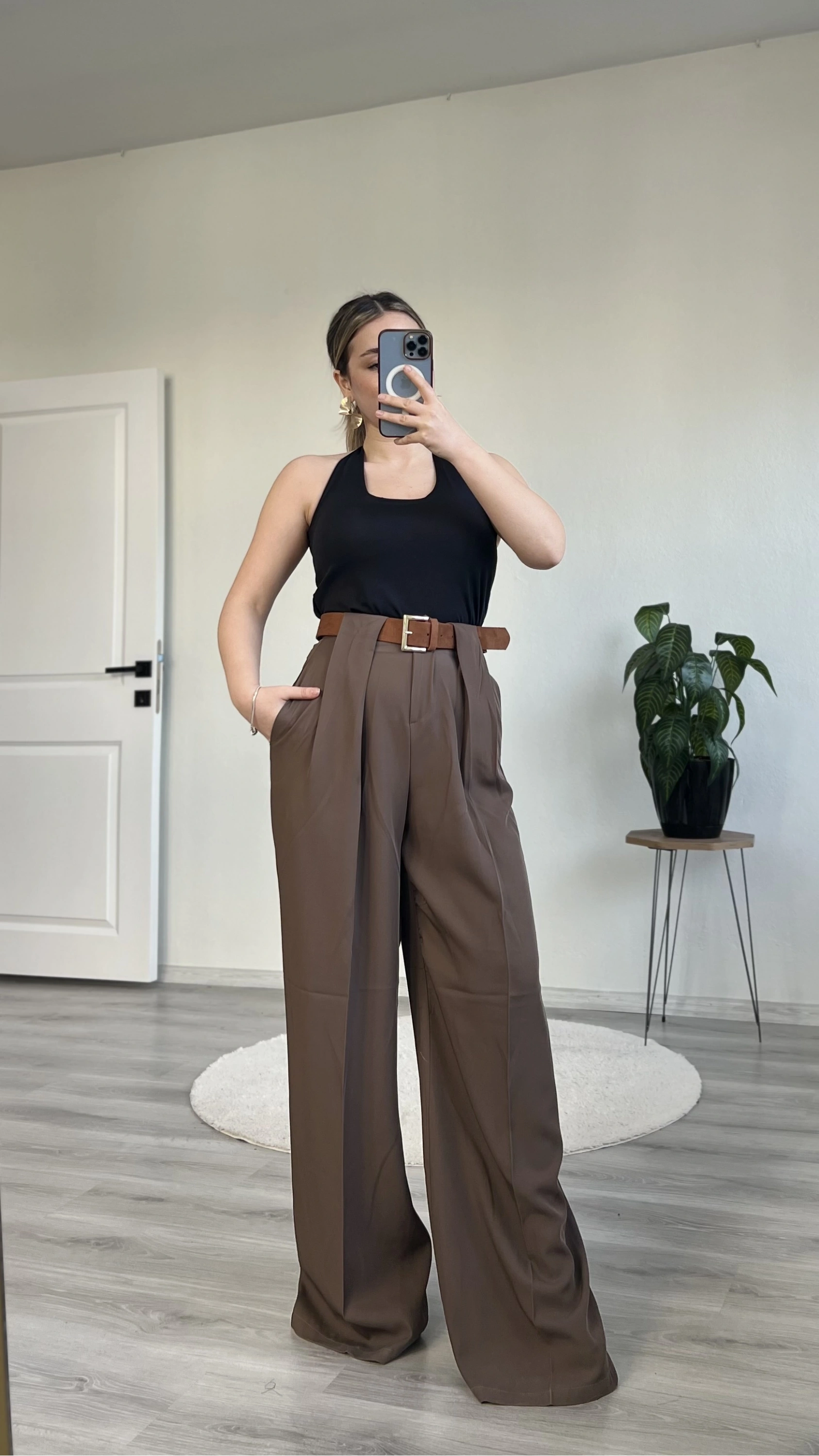 SÜET KEMERLİ TASARIM PANTOLON