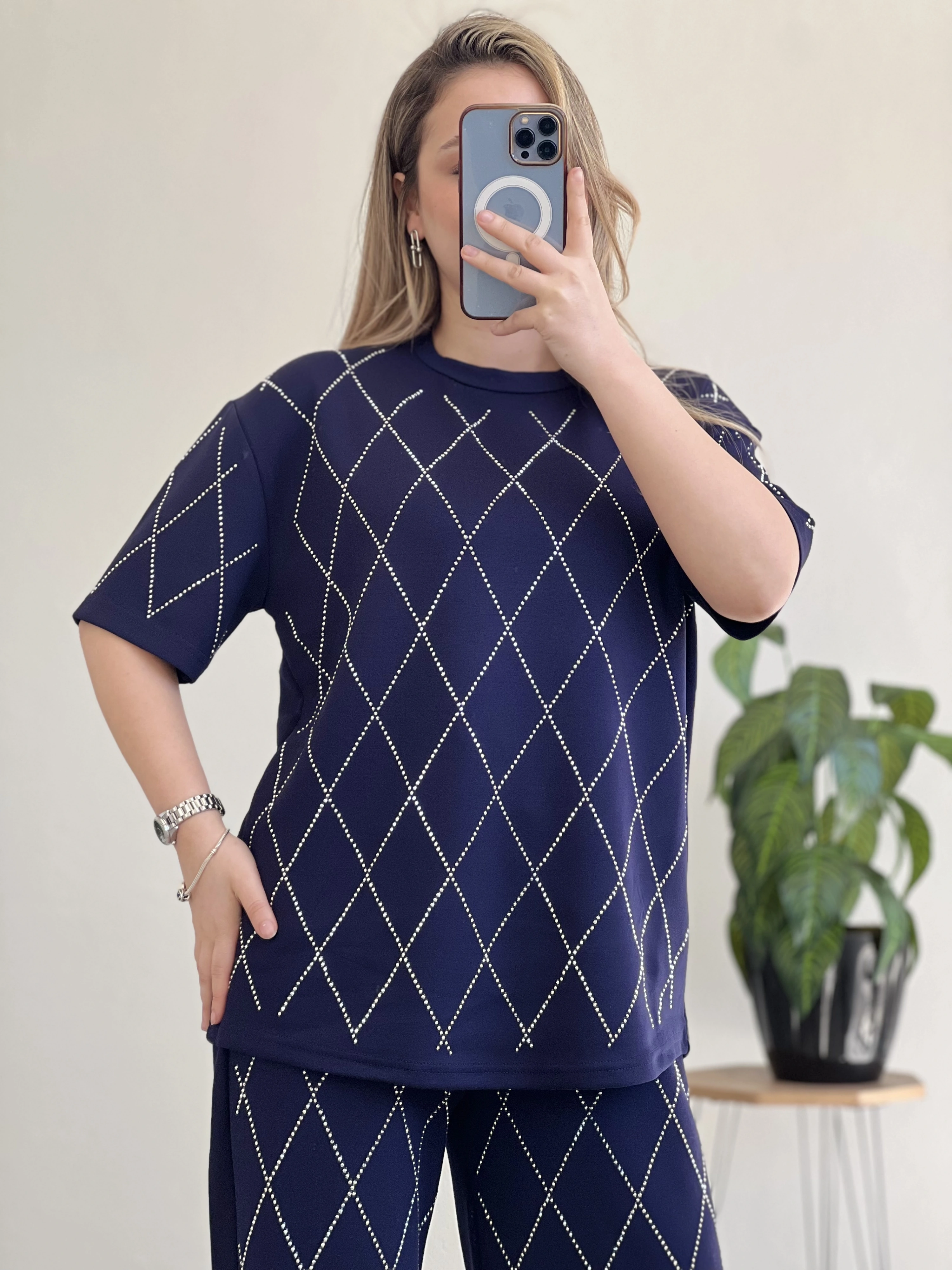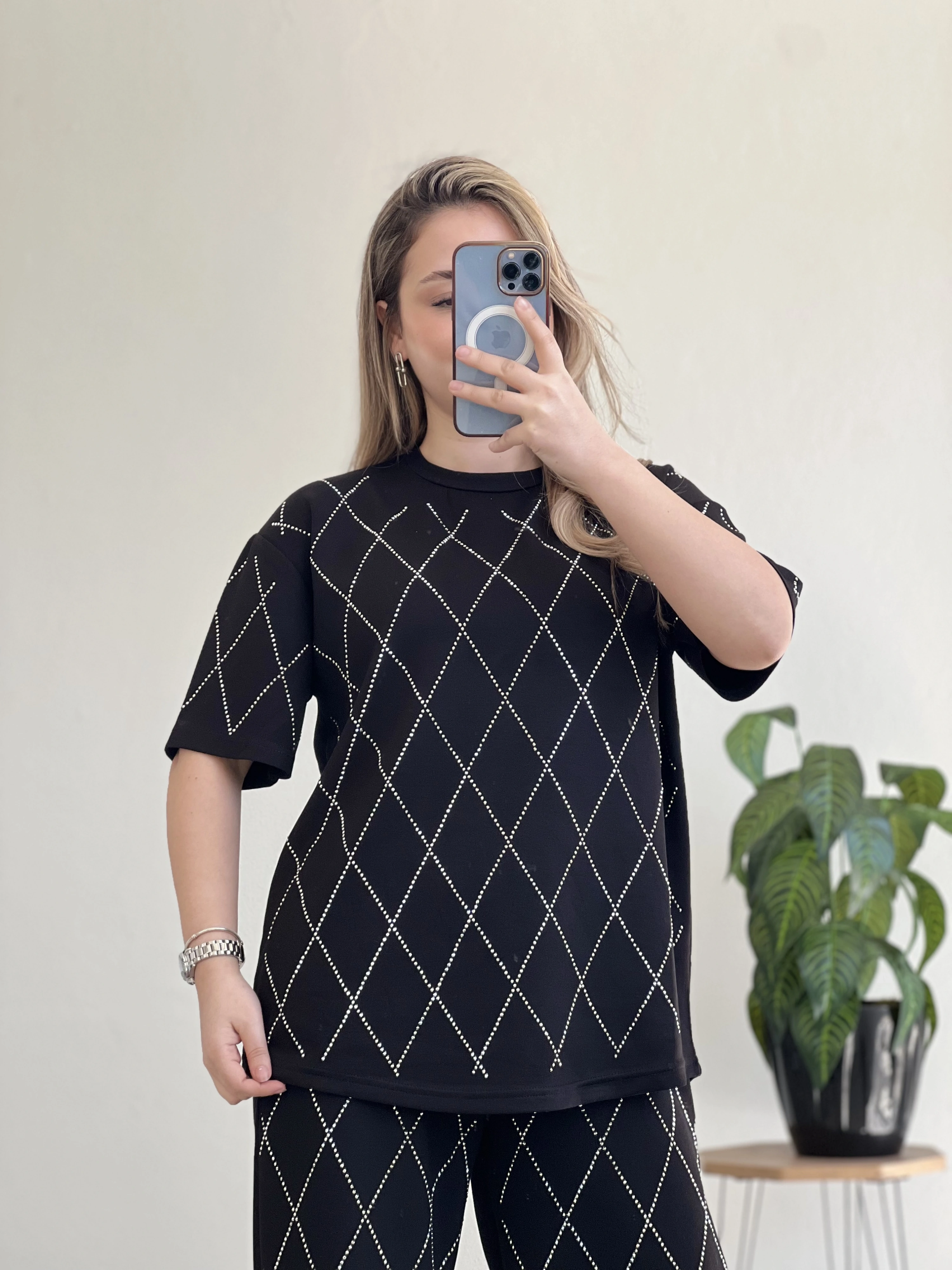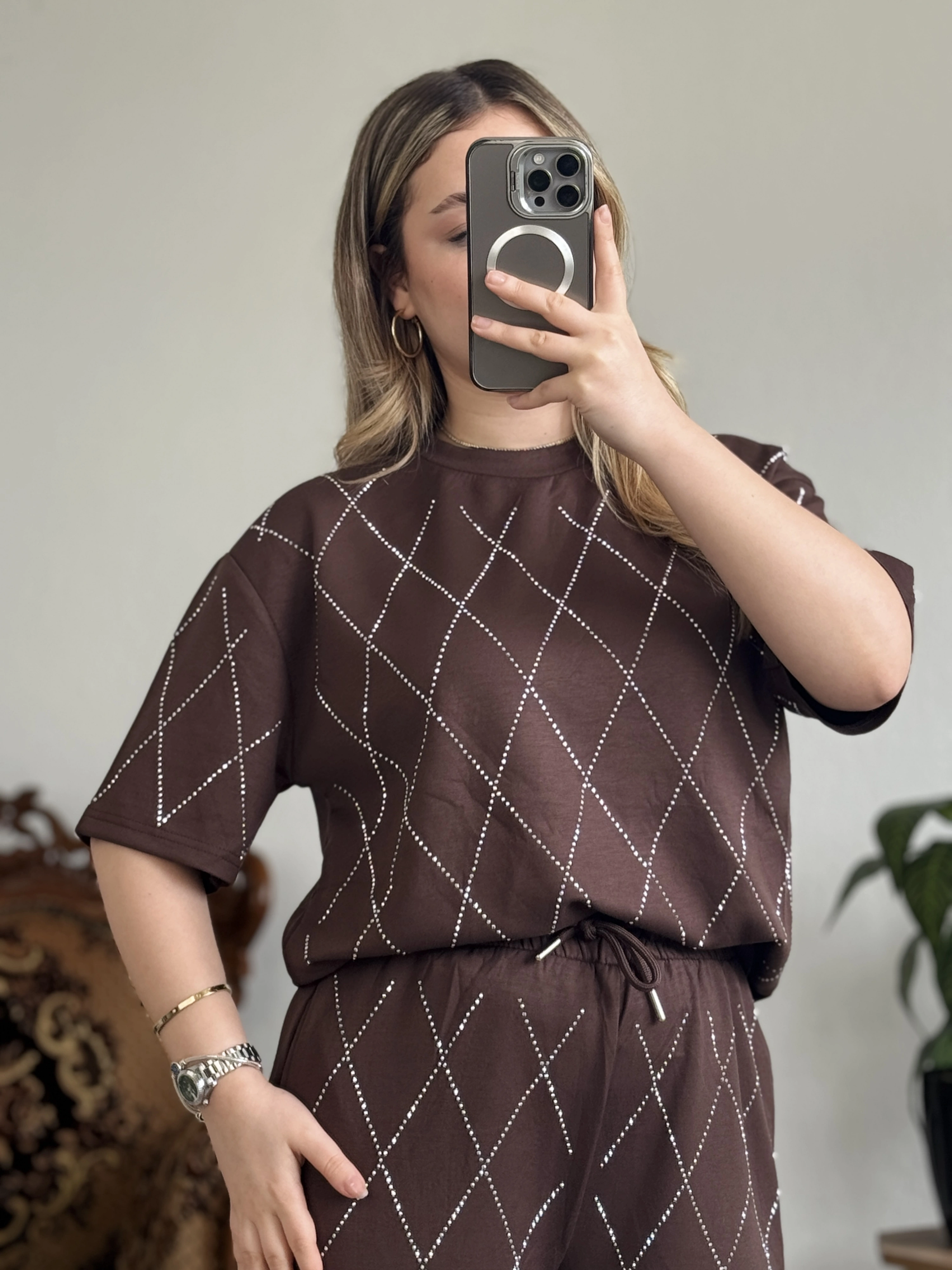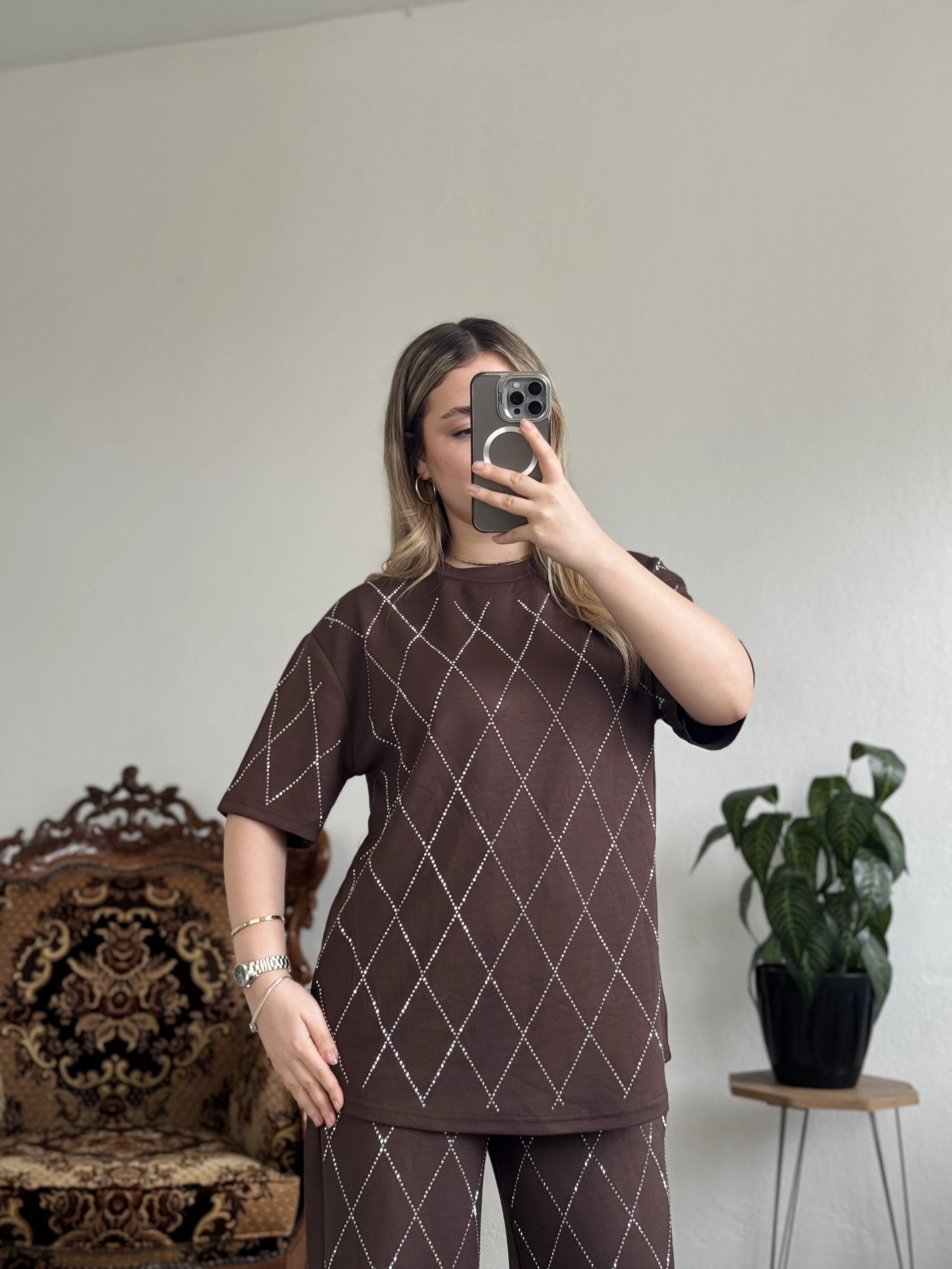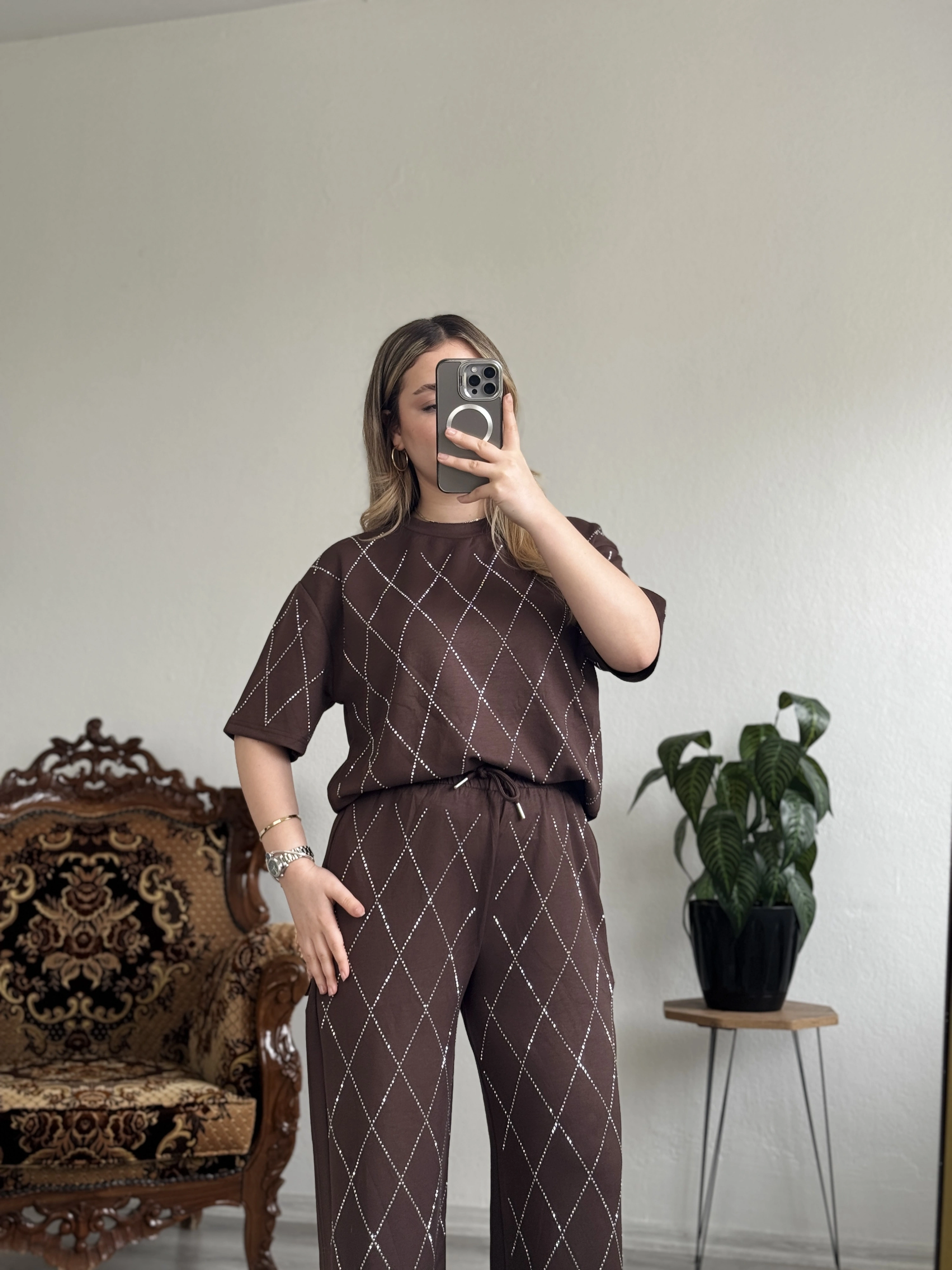 Baklava desenli, full taş detaylı modal takım ✨