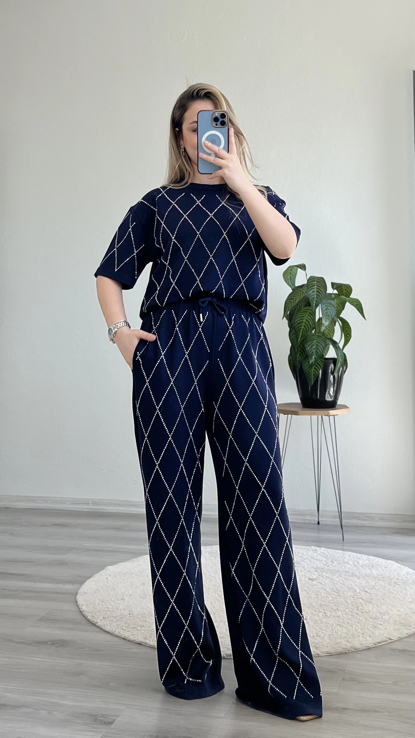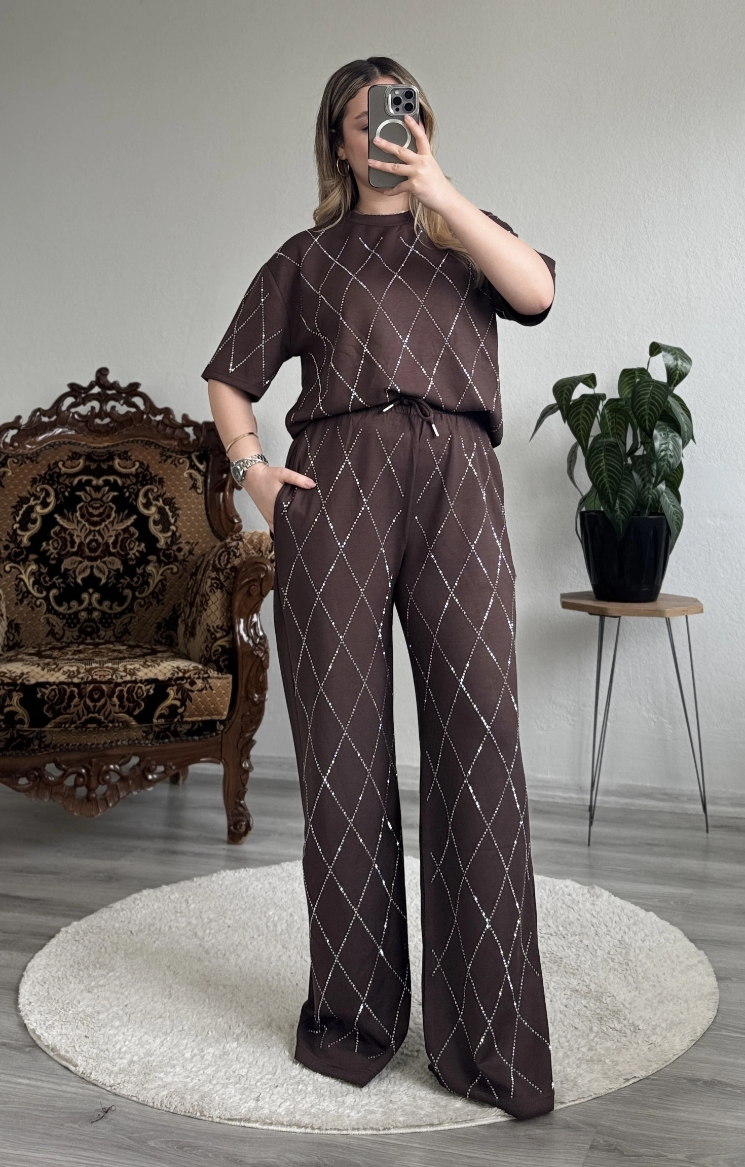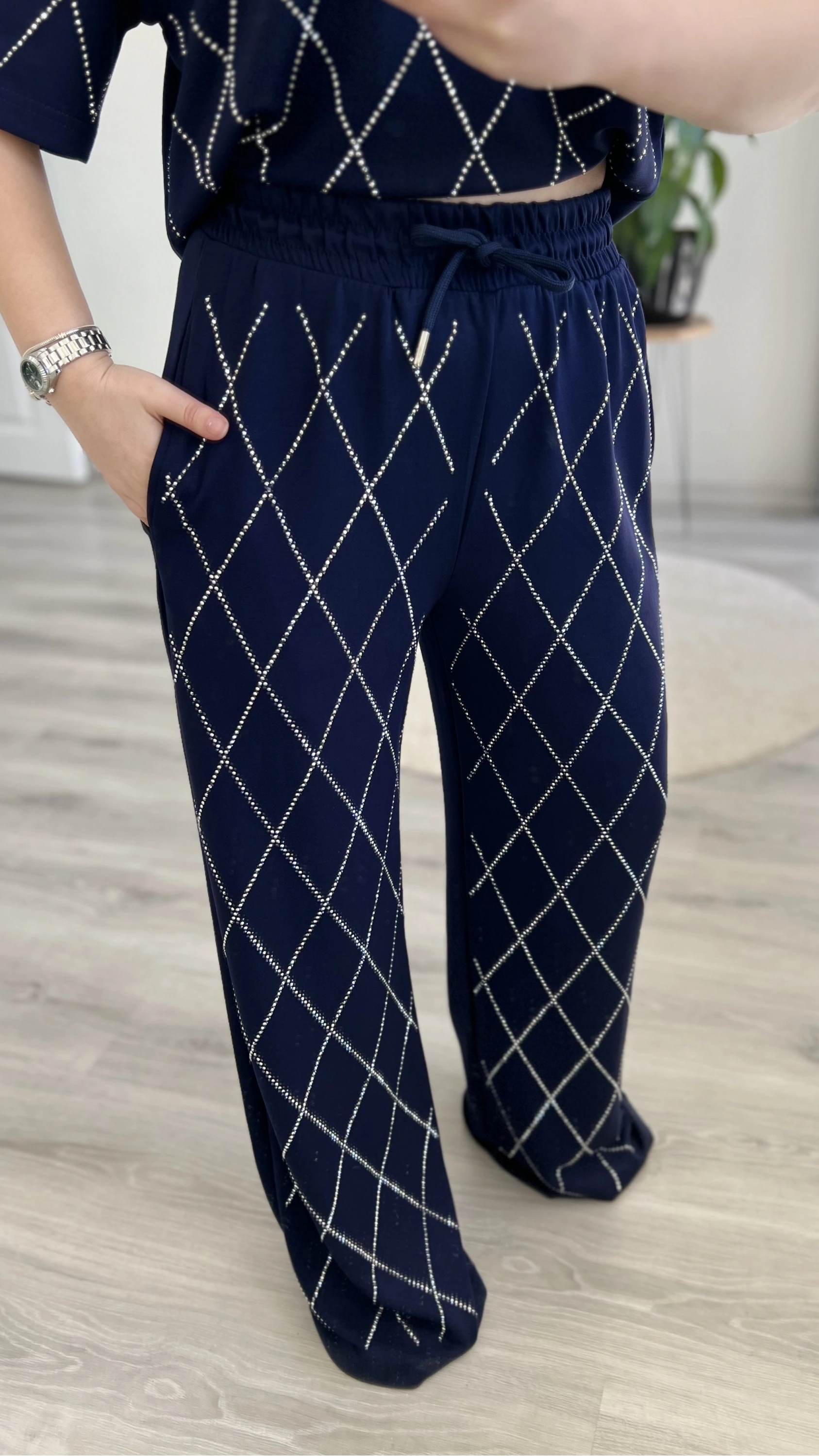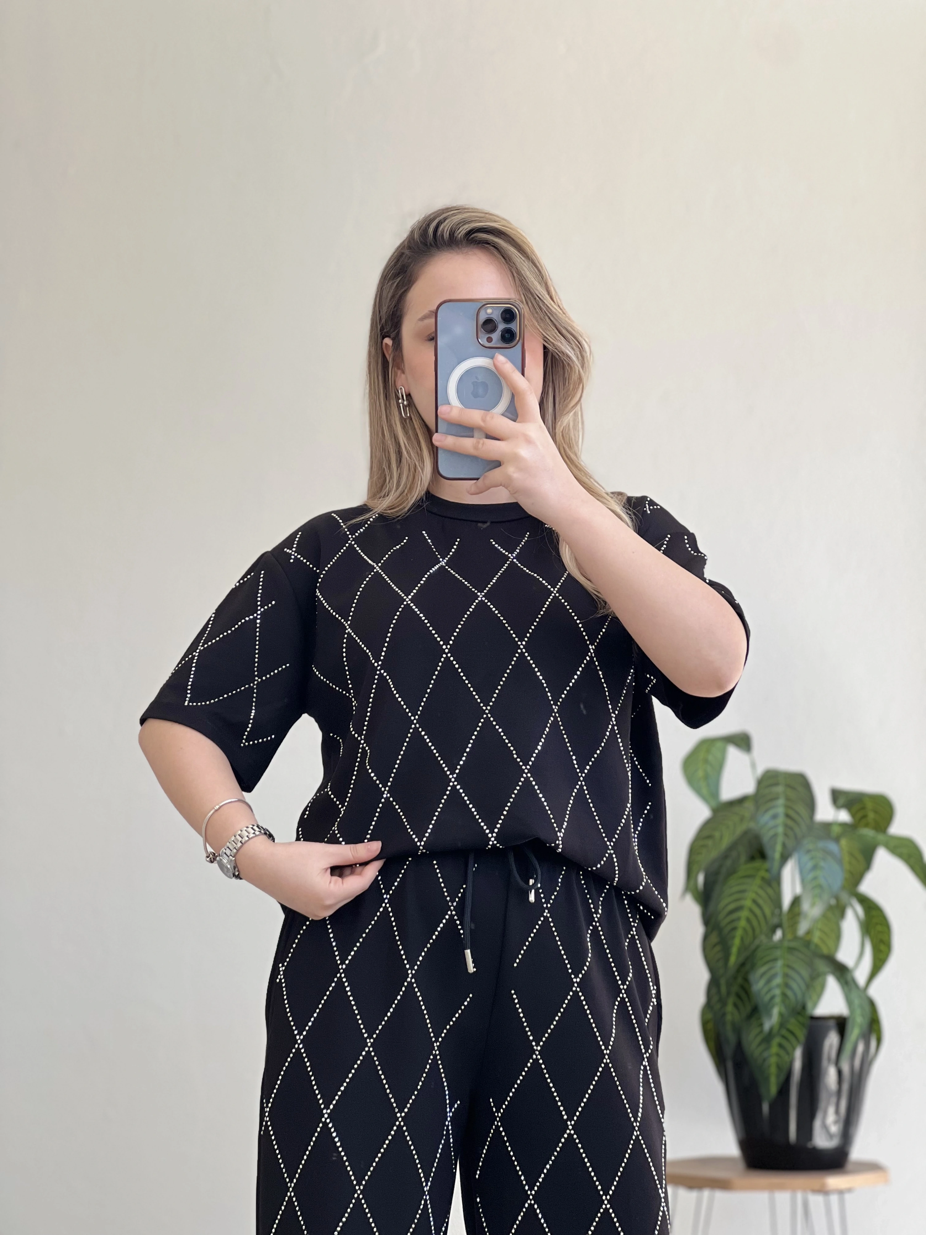Baklava desenli, full taş detaylı modal takım ✨