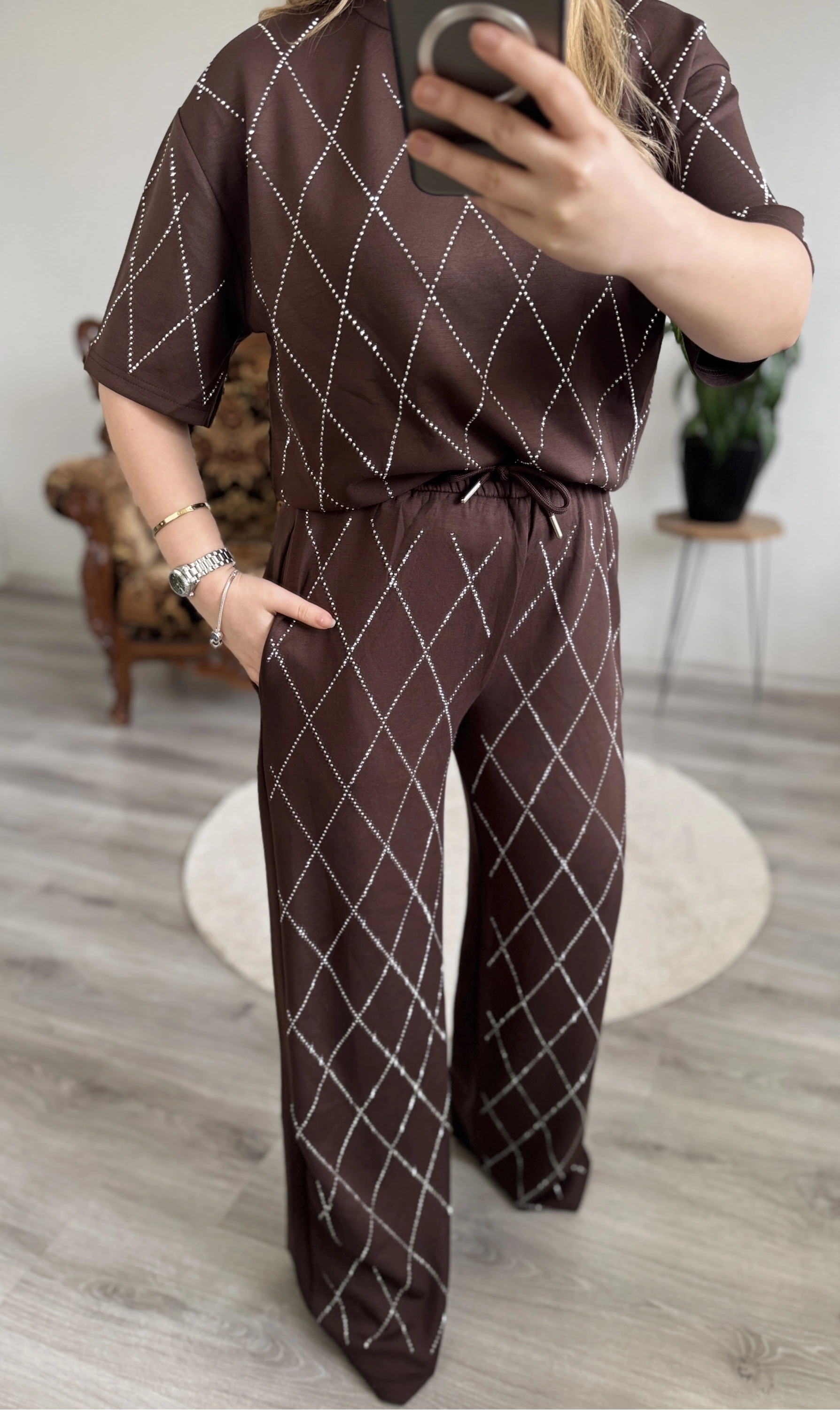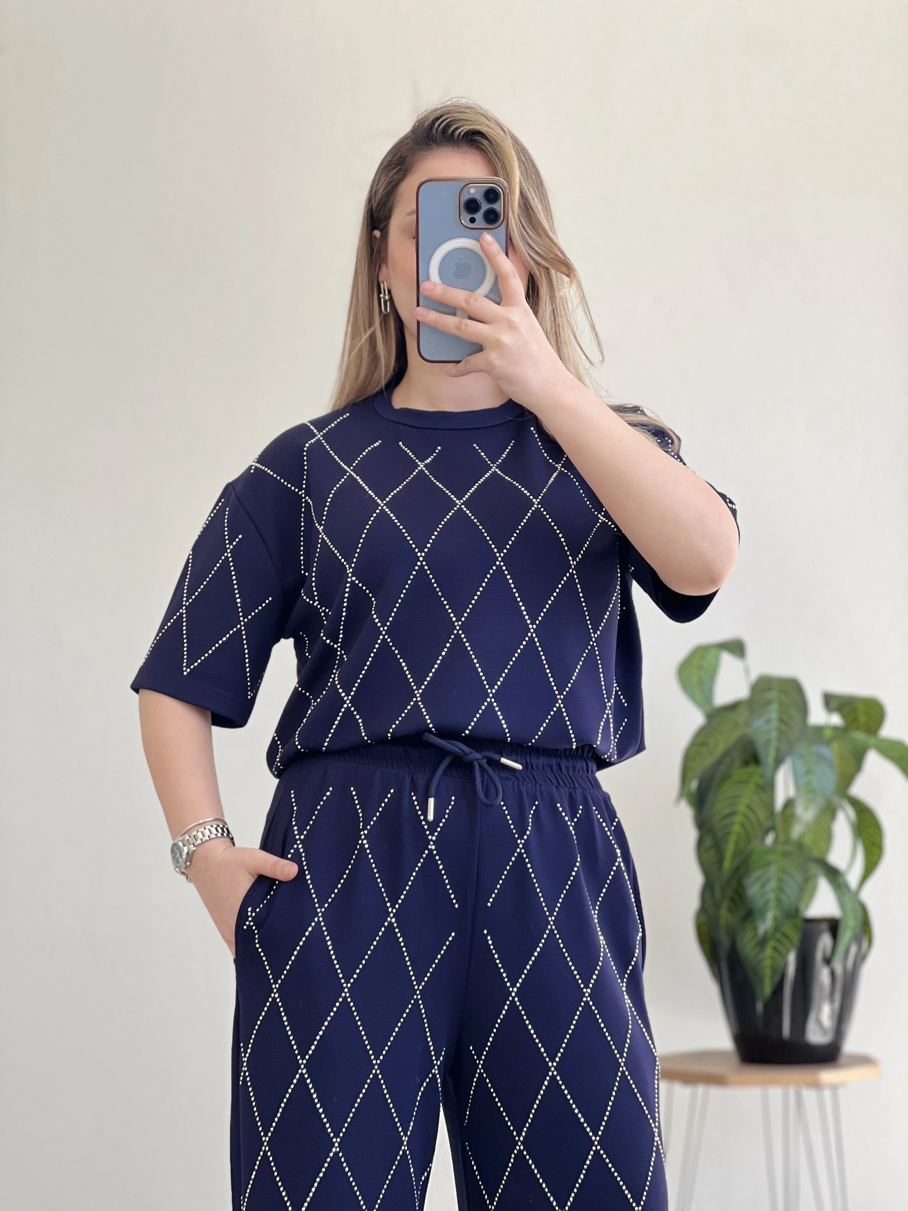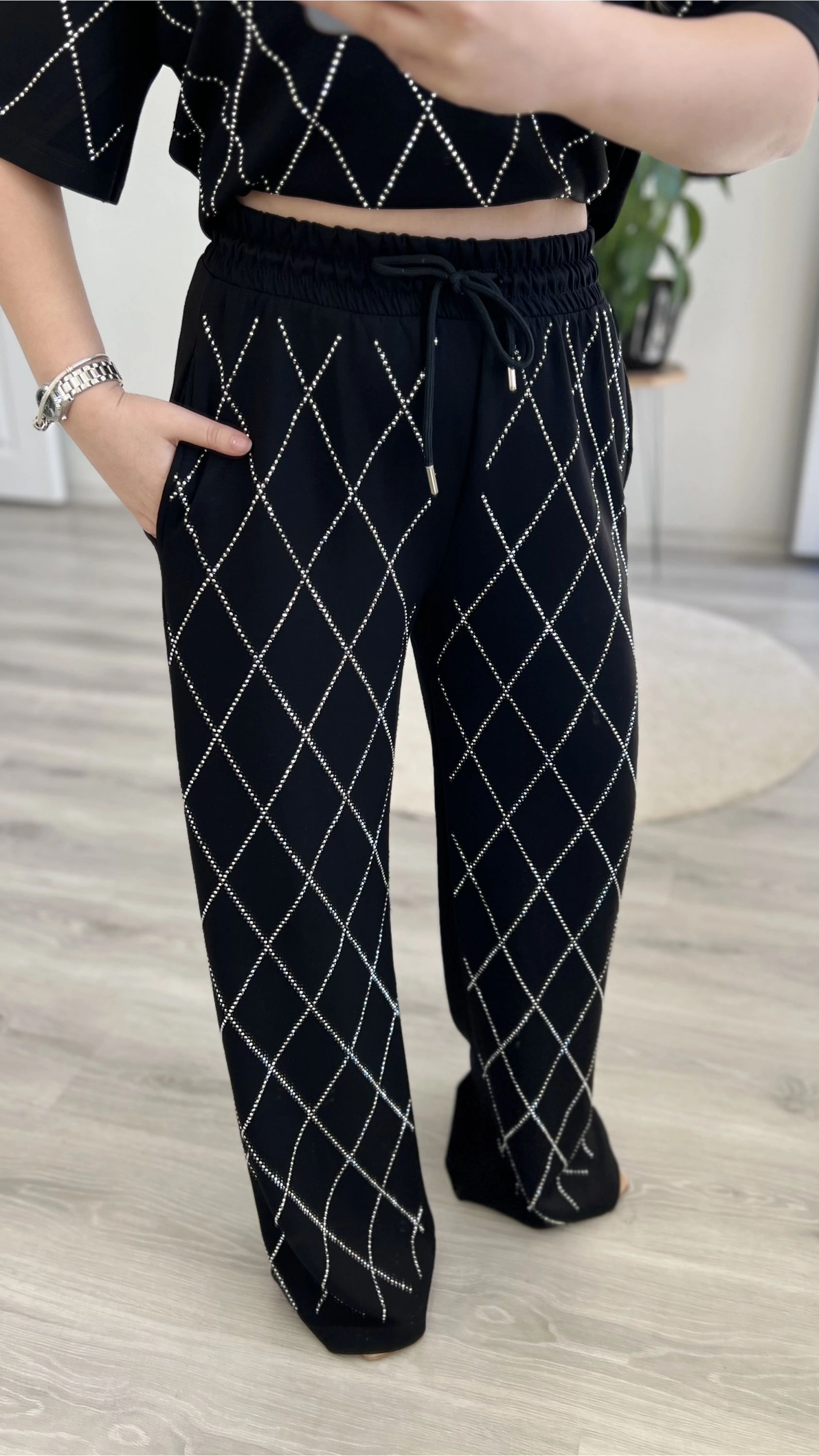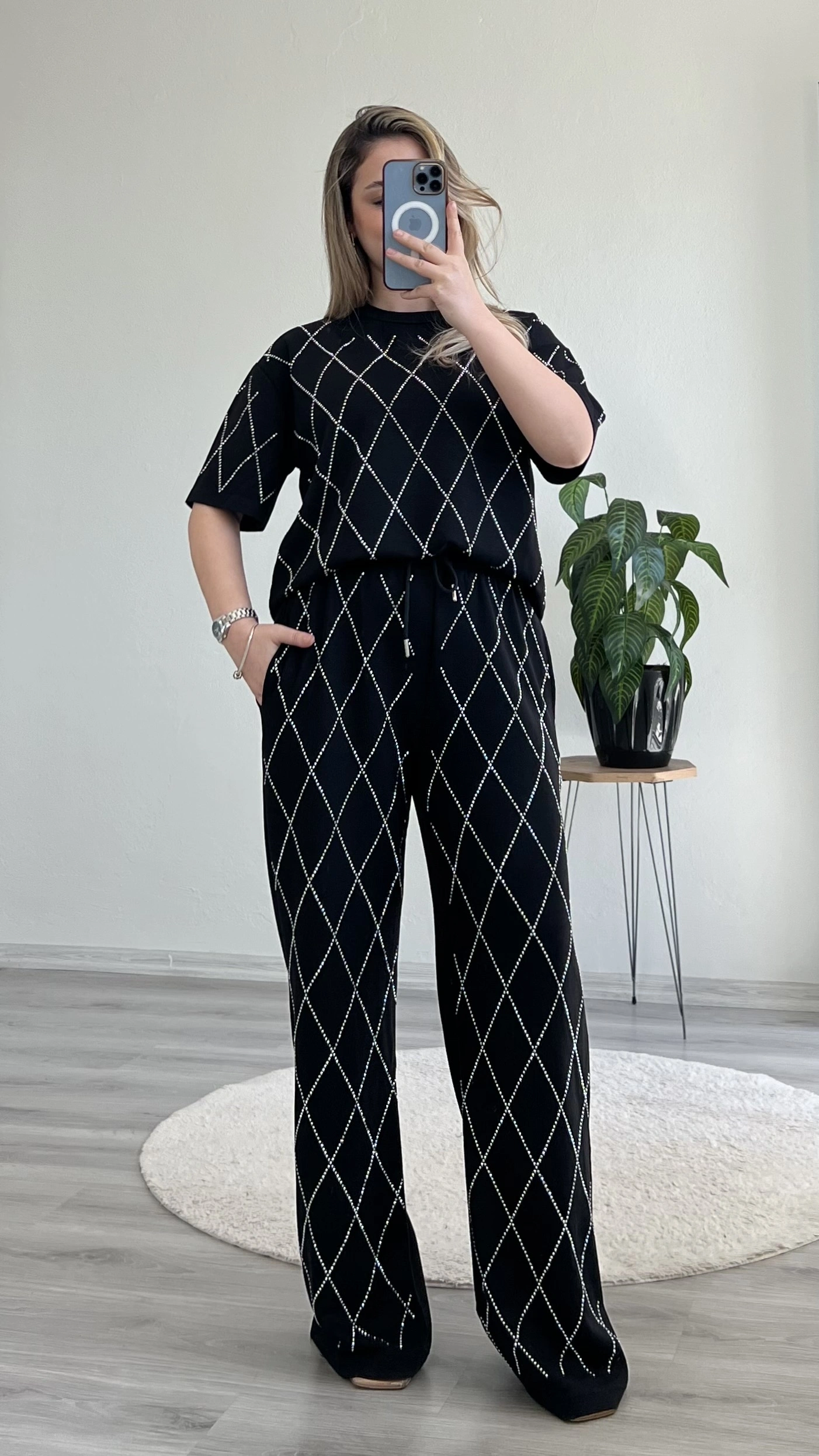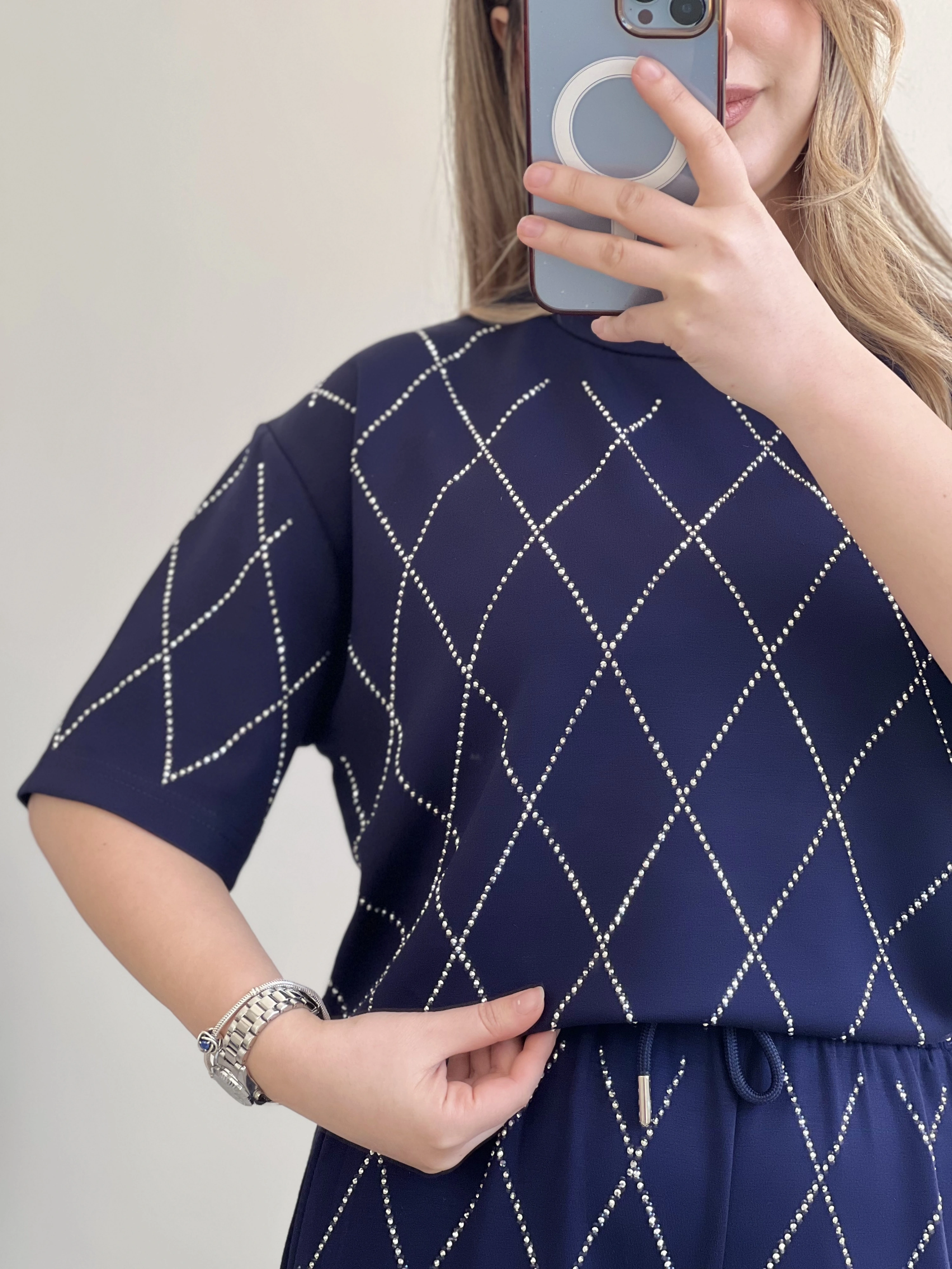 Baklava desenli, full taş detaylı modal takım ✨