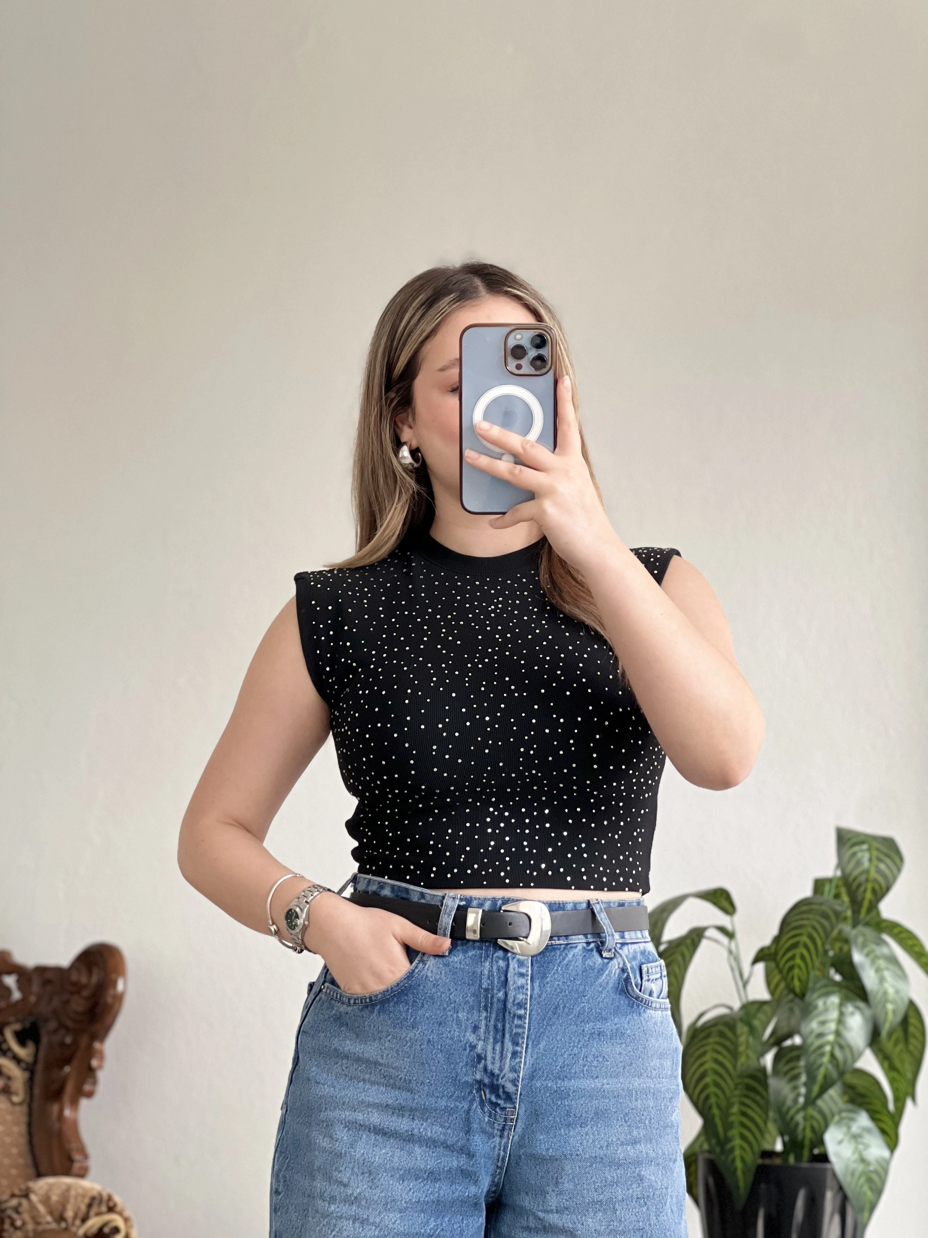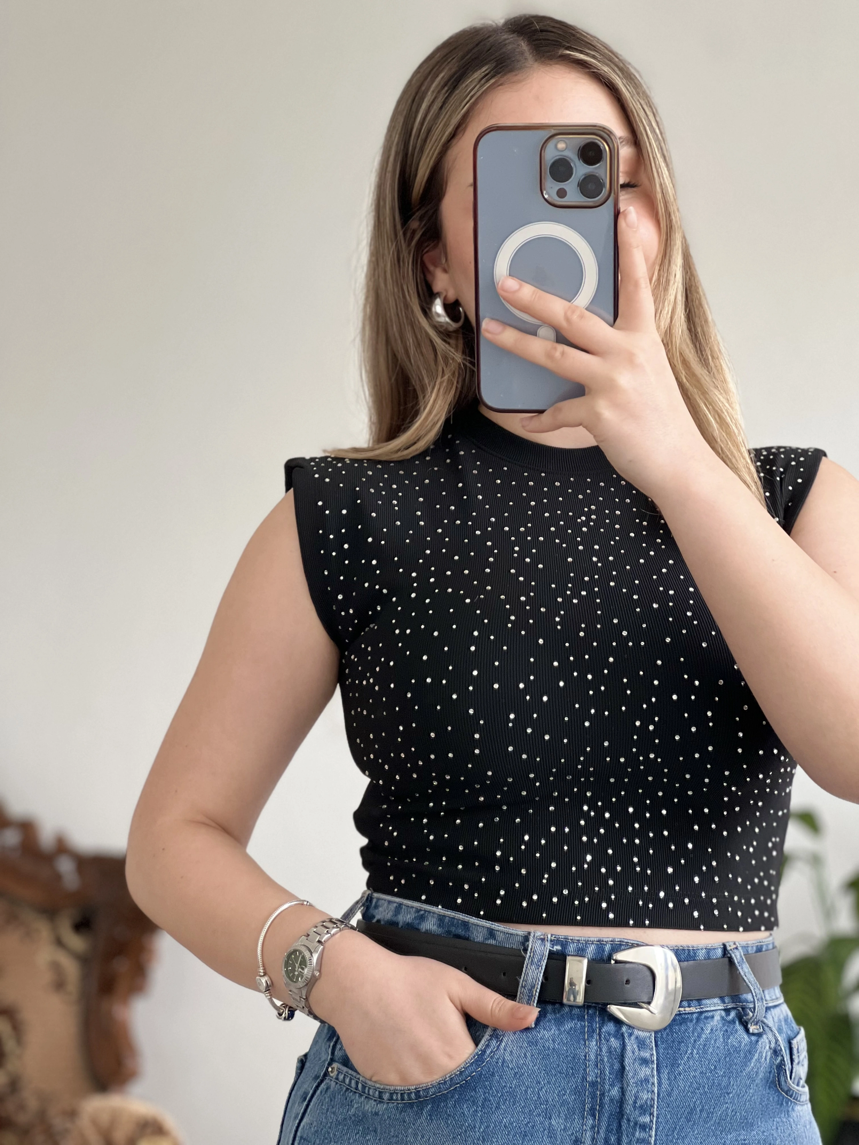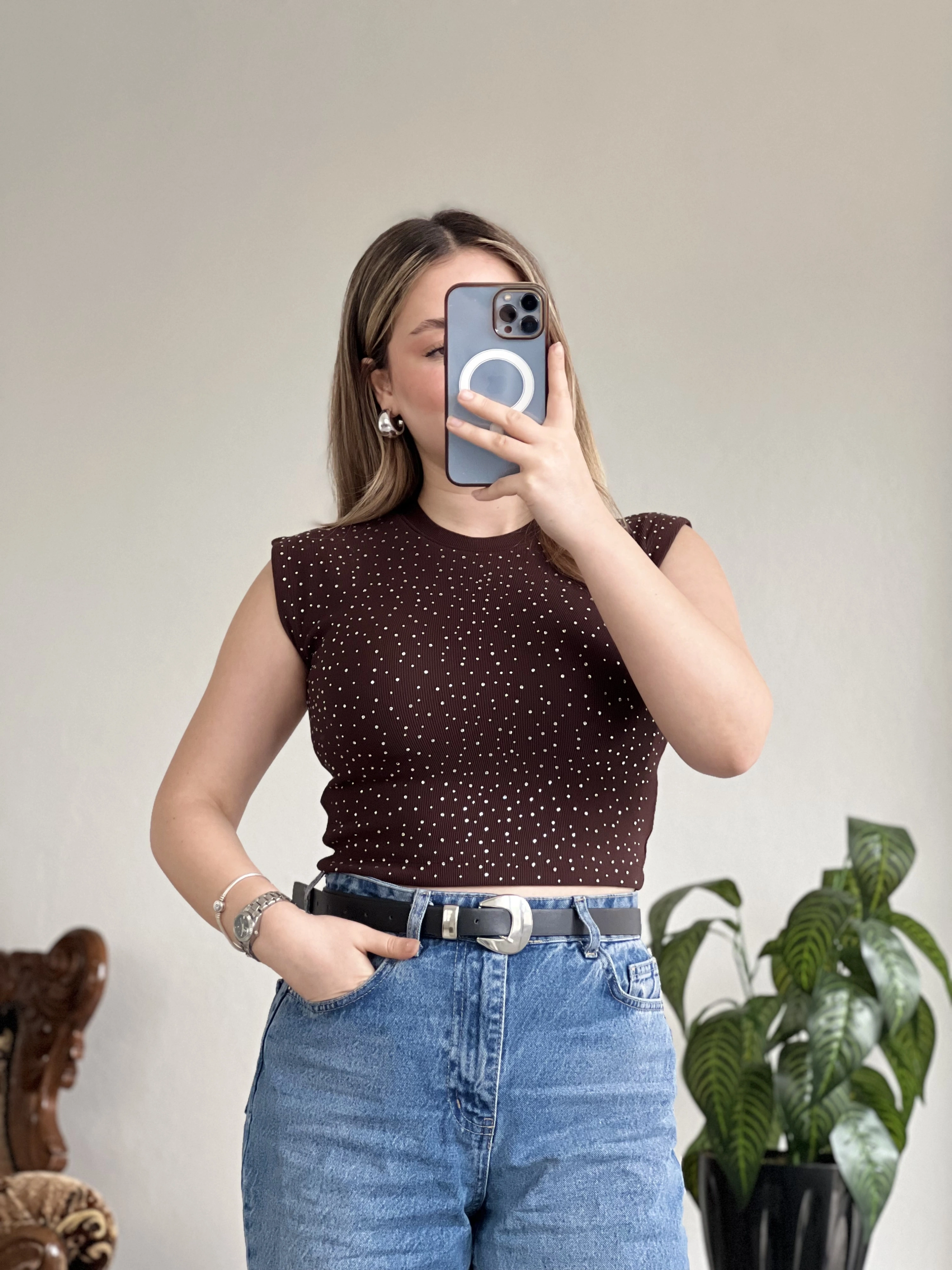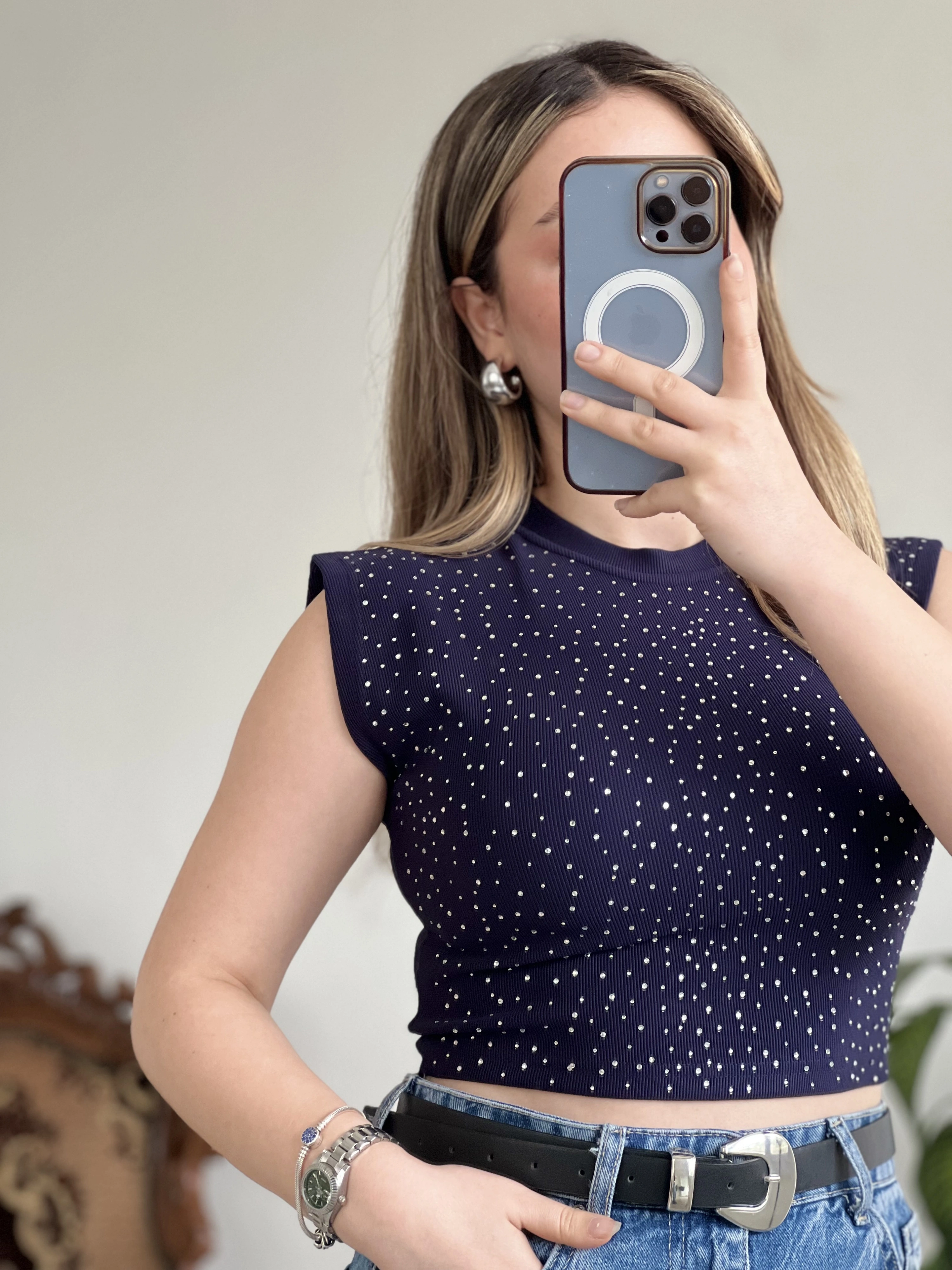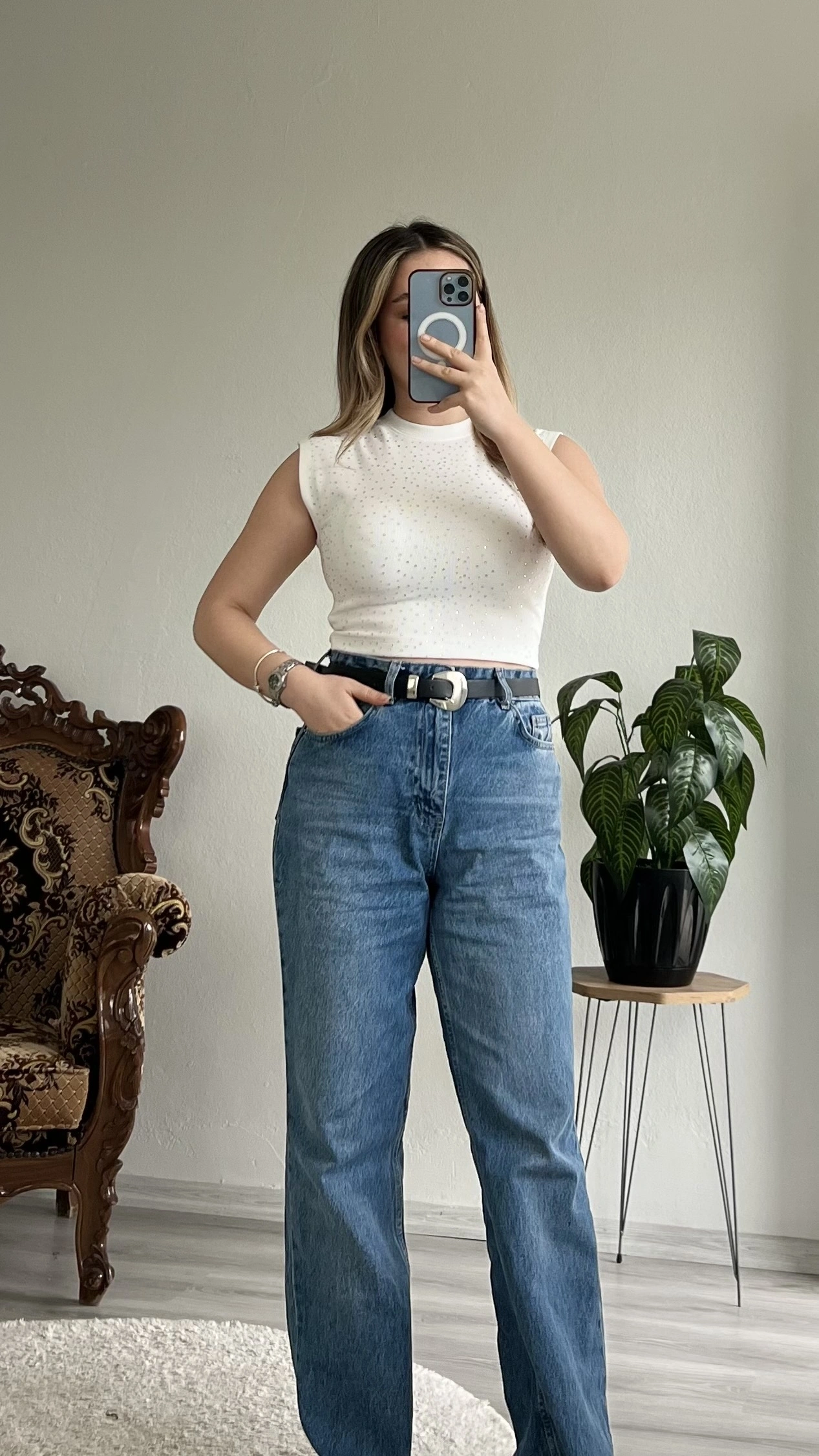 OTTOMAN KUMAŞ FULL TAŞLI CROP ESNEK YAPI TAM KALIP