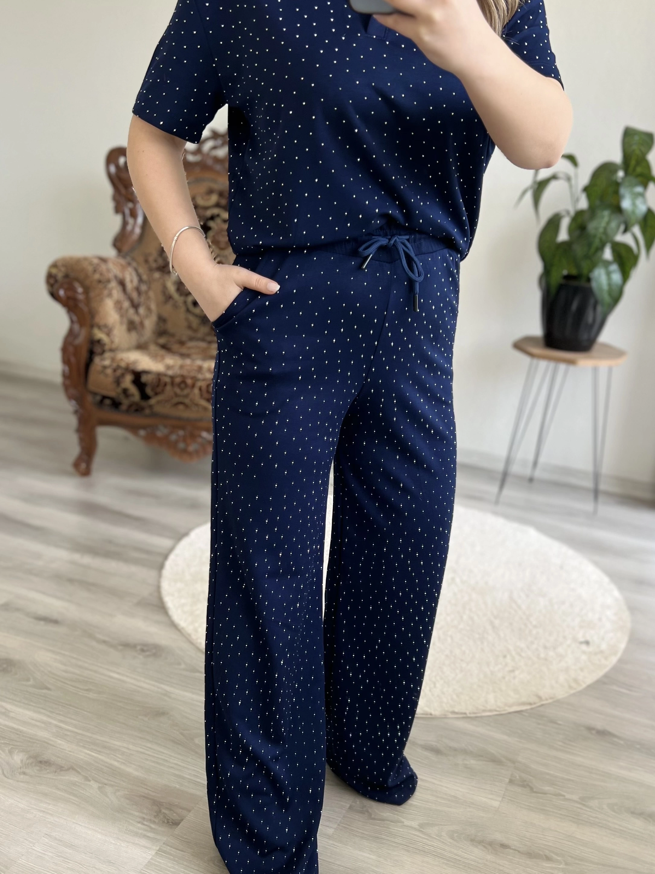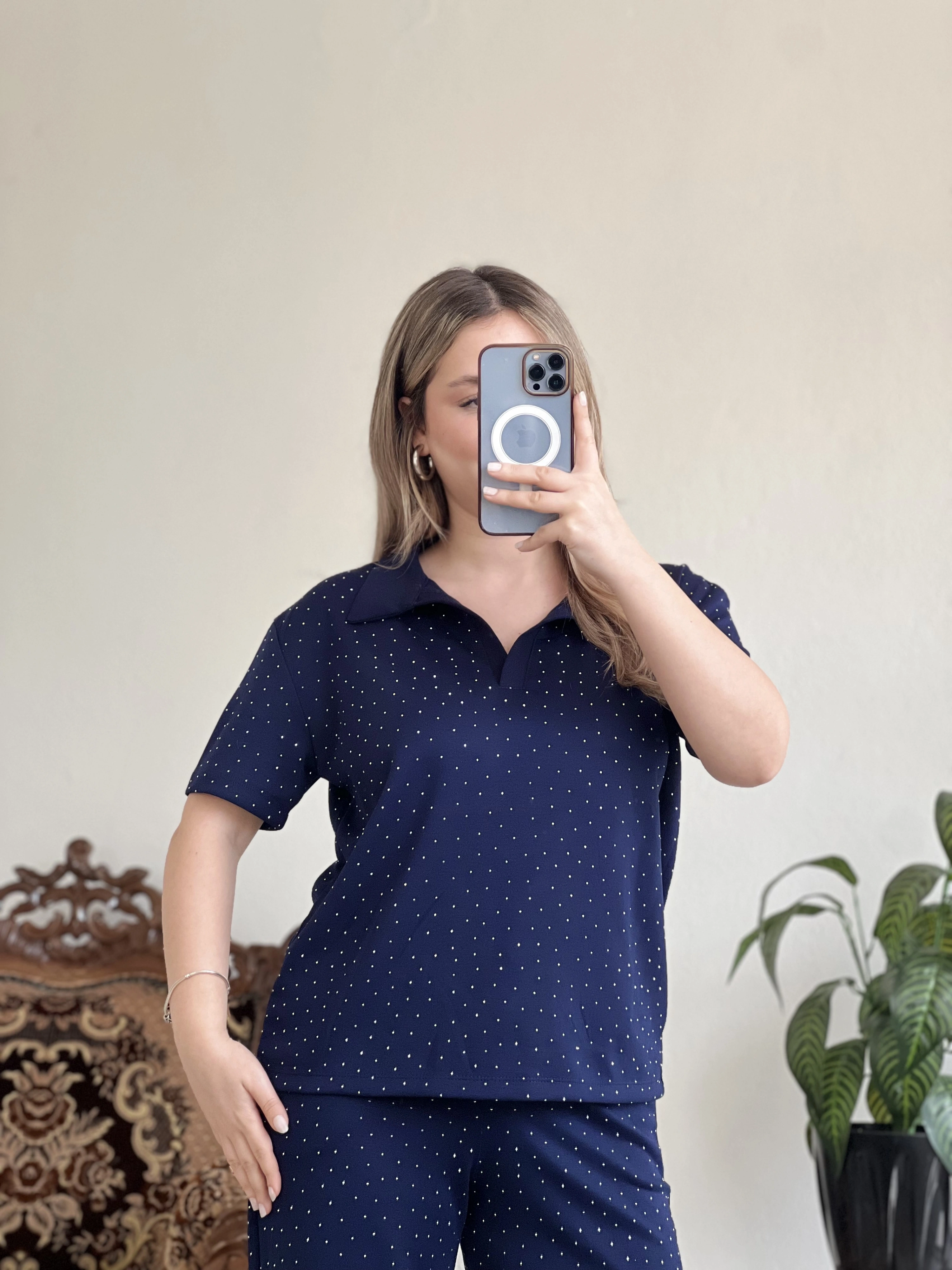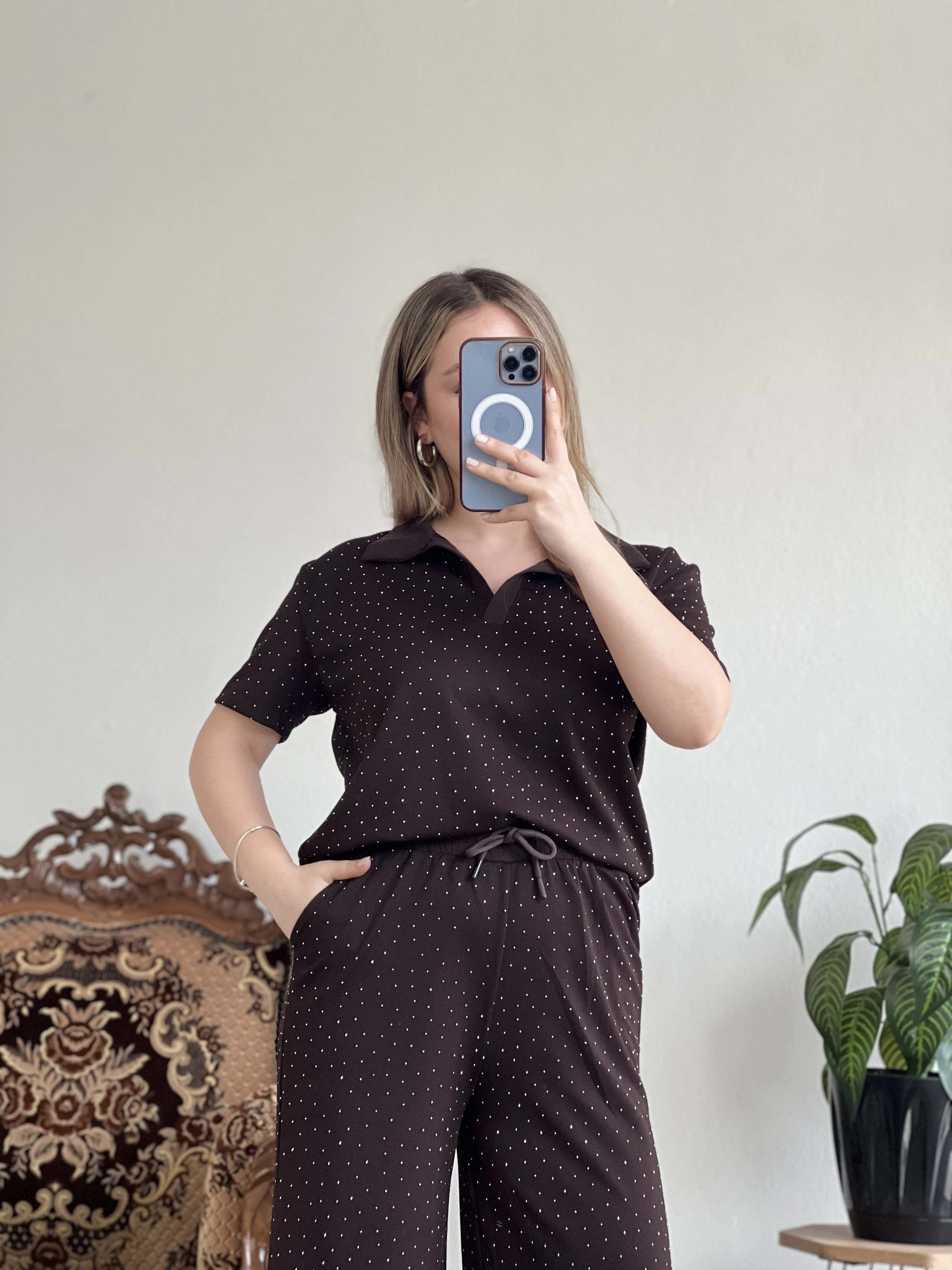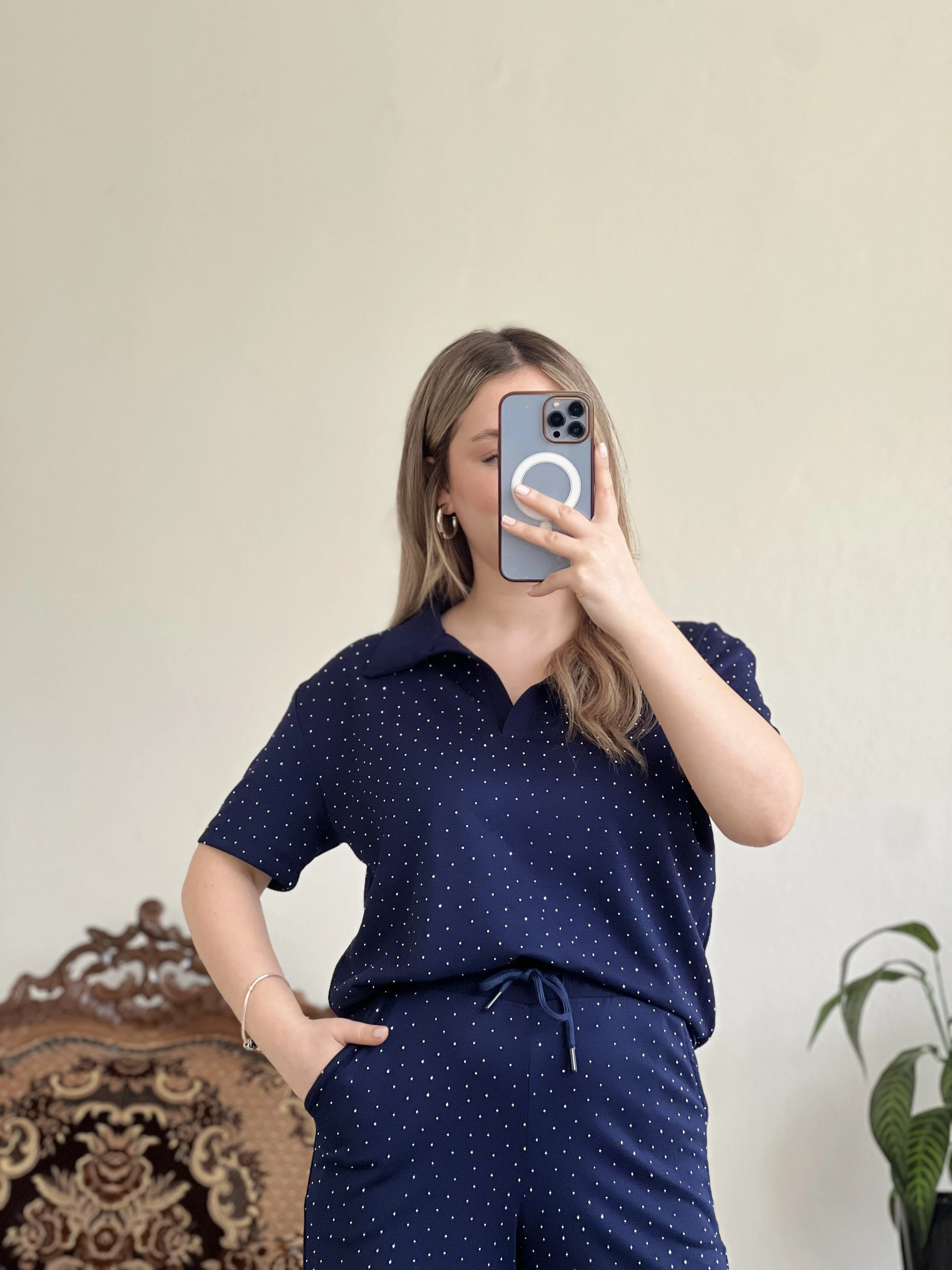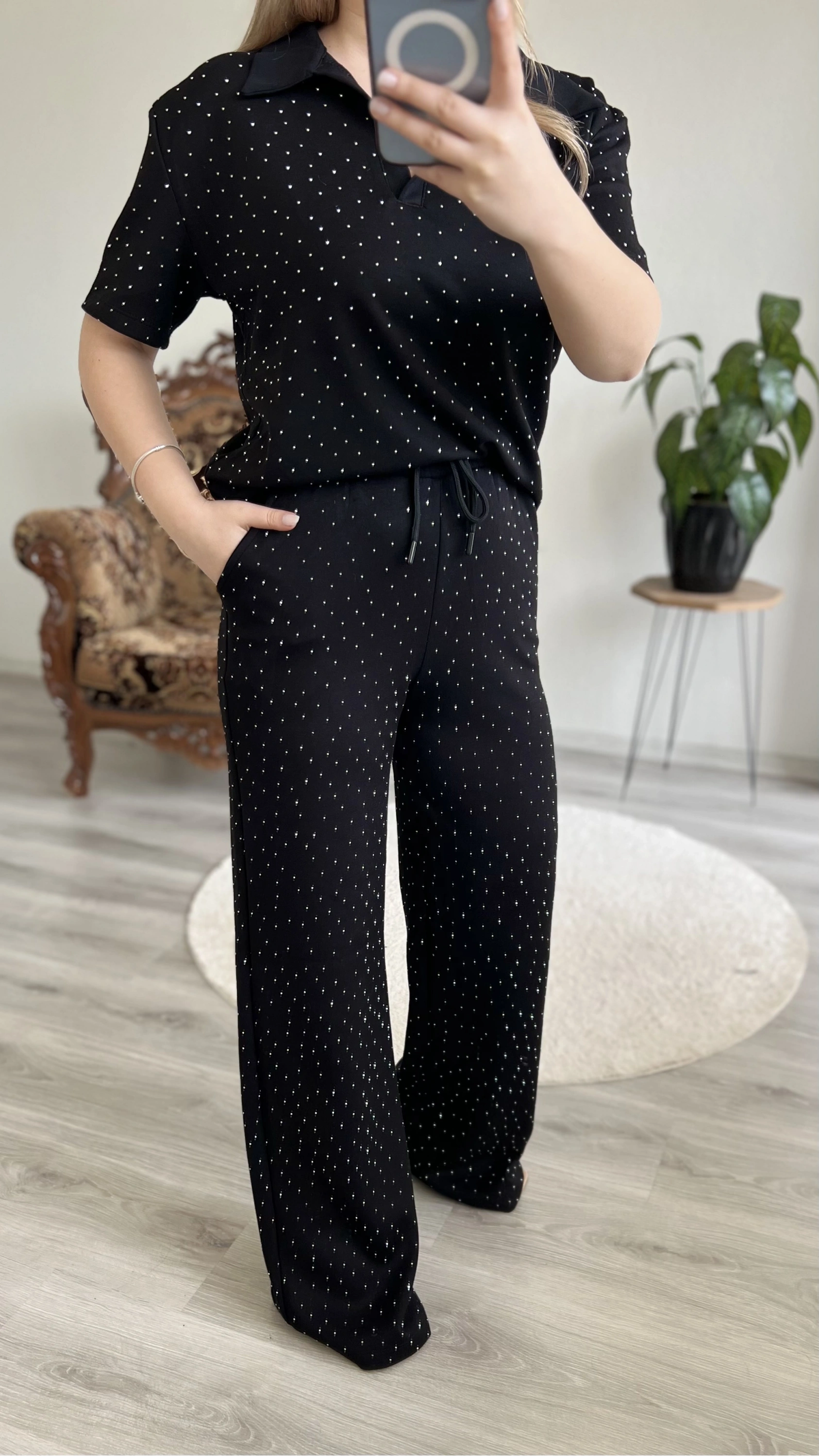 MODAL YUMUŞAK KUMAŞLI TAŞLI POLO YAKA TAKIM GENİŞ KALIP
