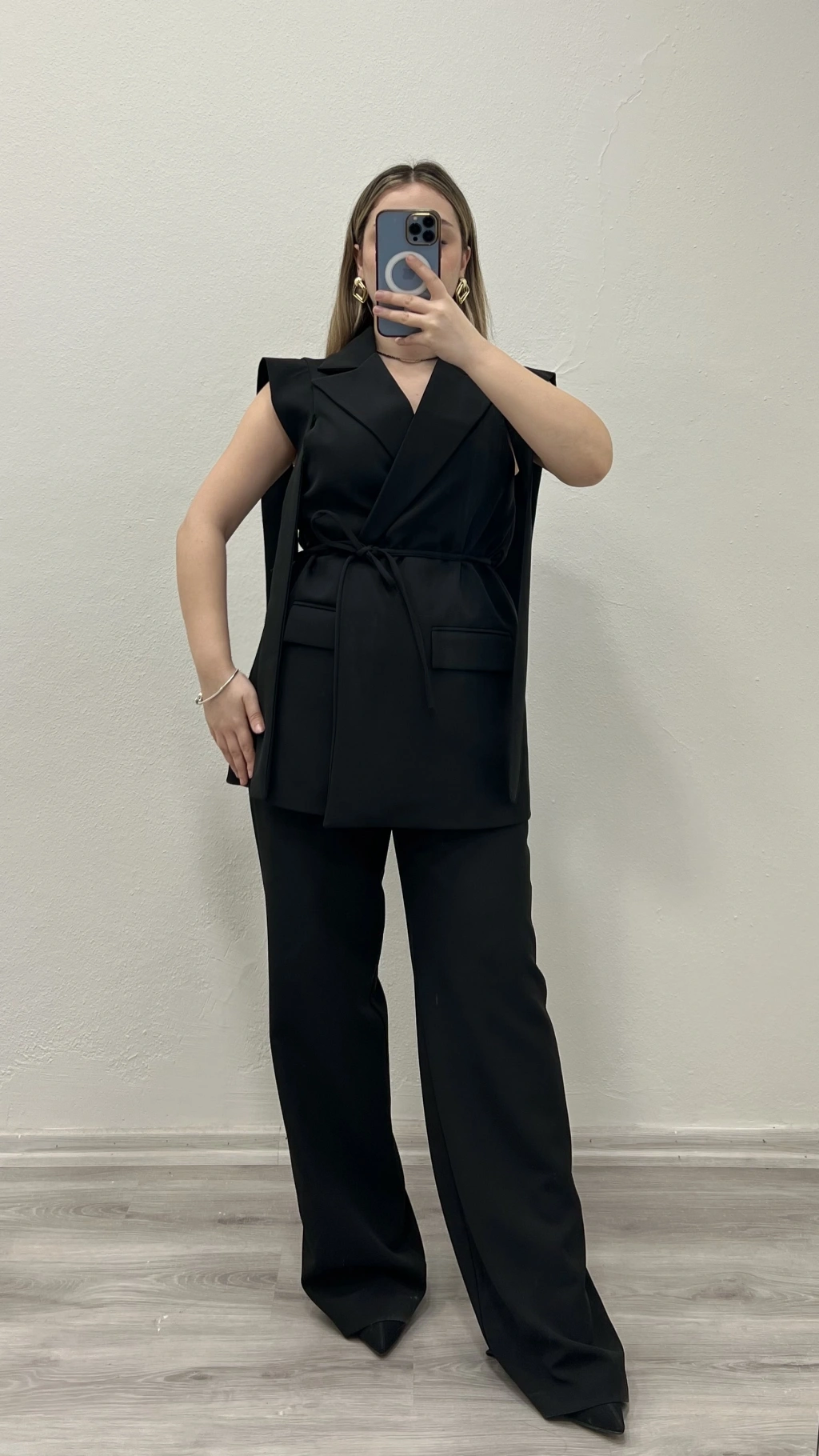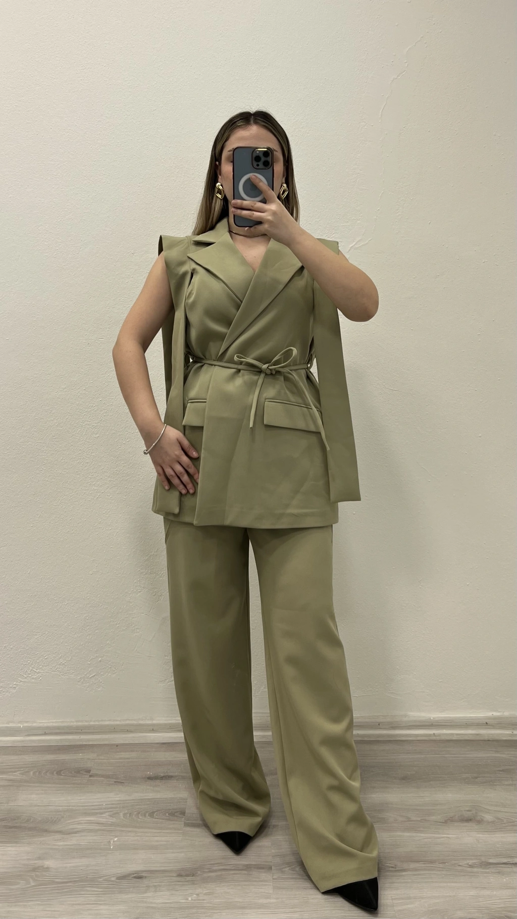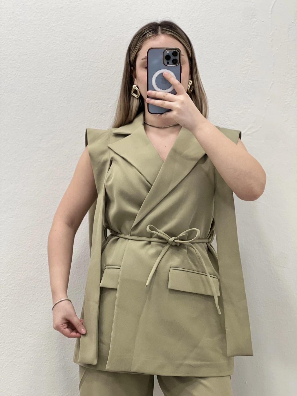 ÖNÜ BAĞLAMALI İÇ ASTARLI YELEKLİ TAKIM